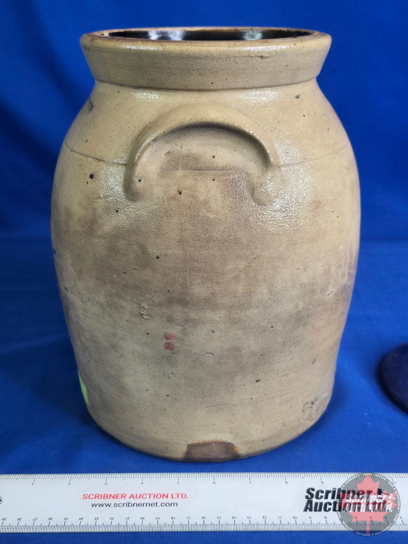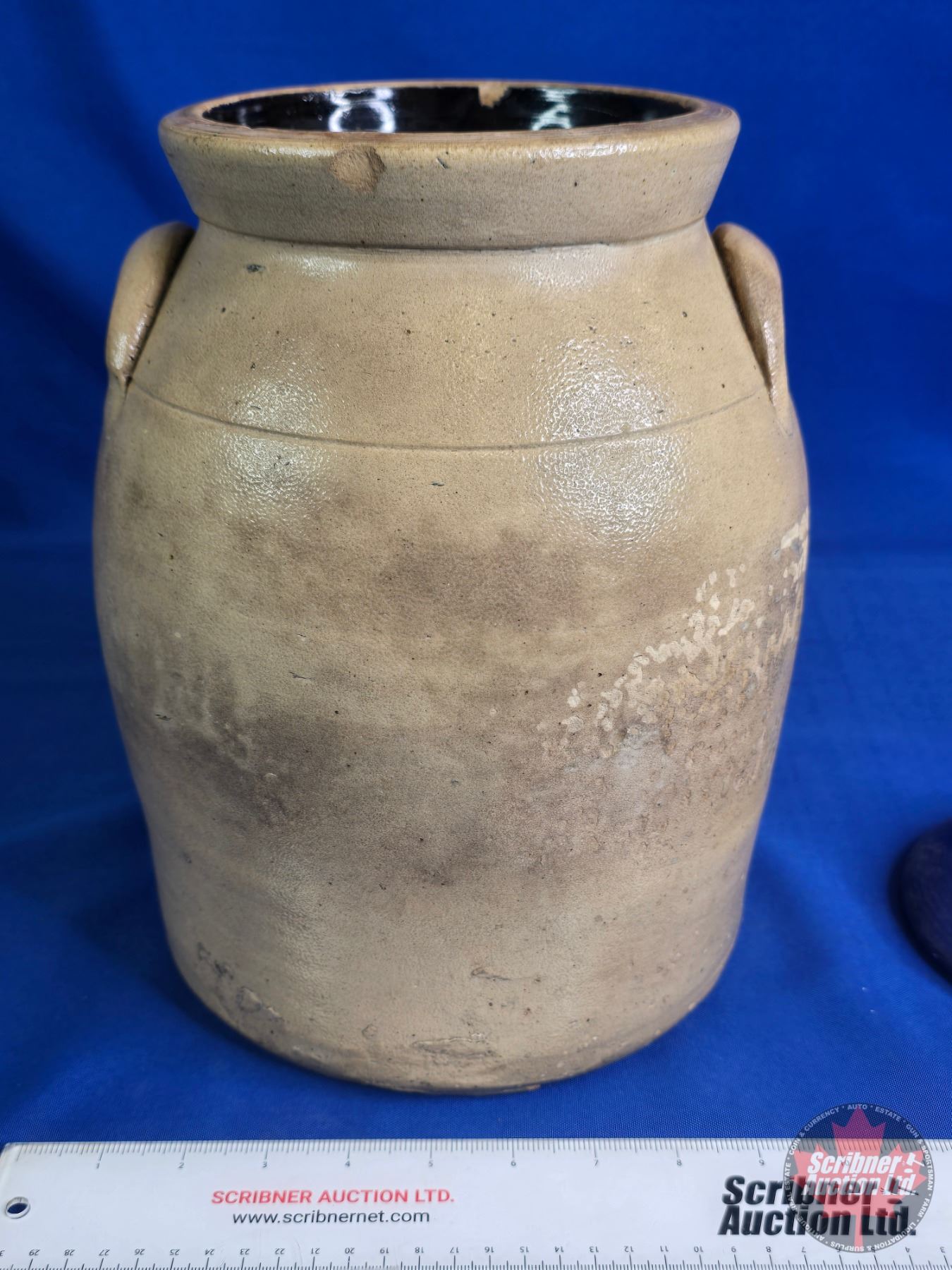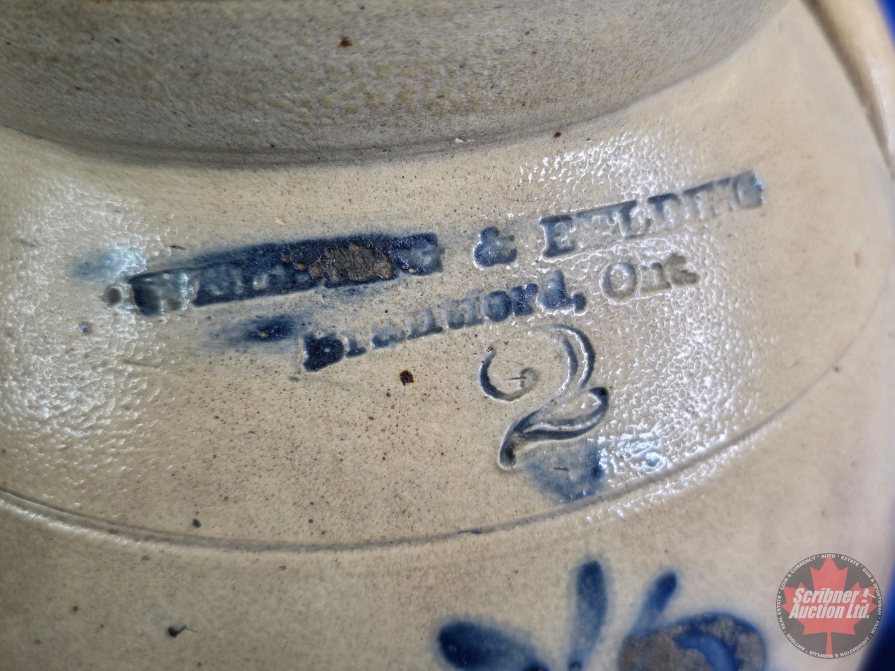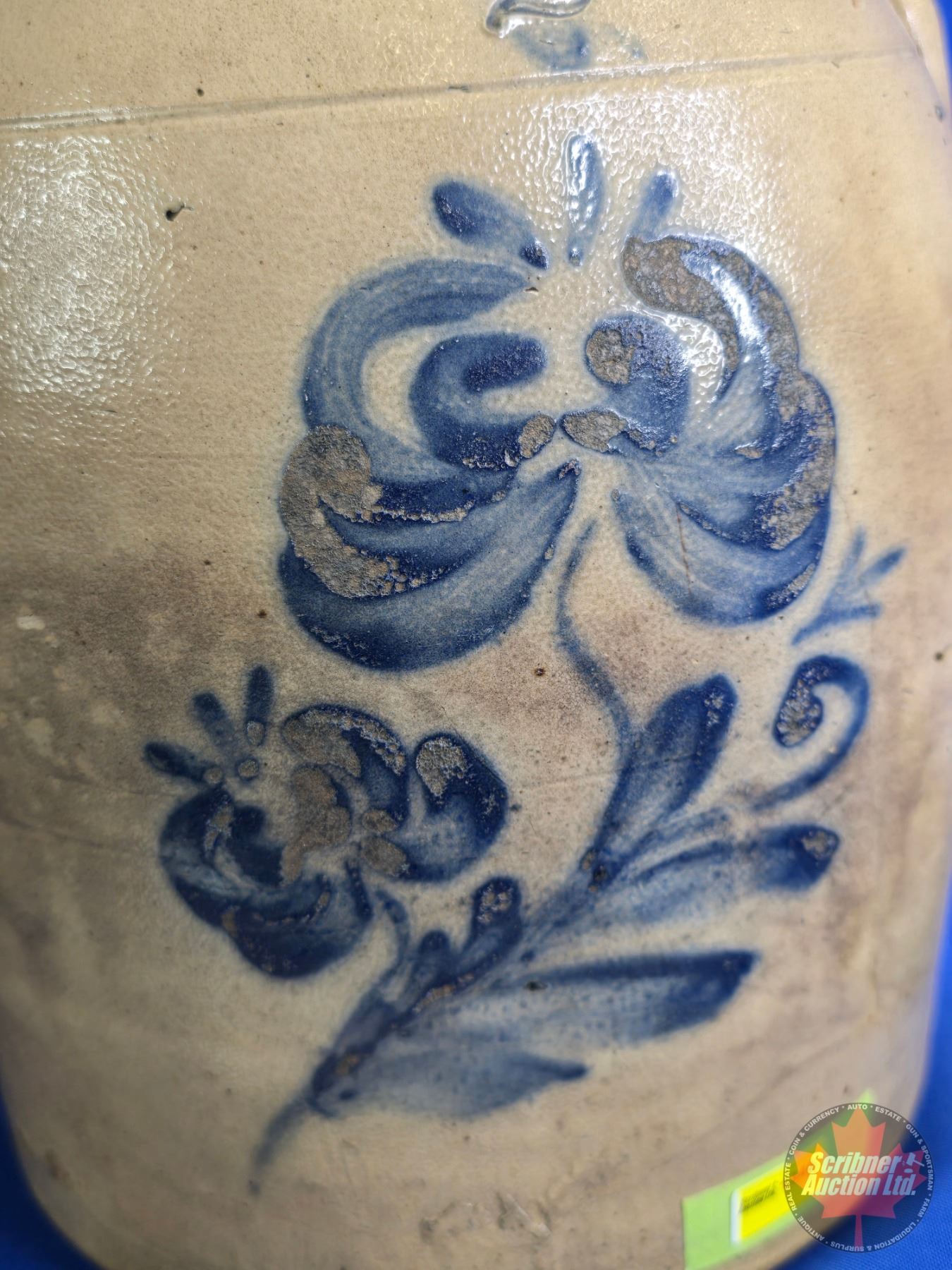 Stoneware Salt Glaze Crock / Jar with Lid : Brantford, Ont. : Blue Foral