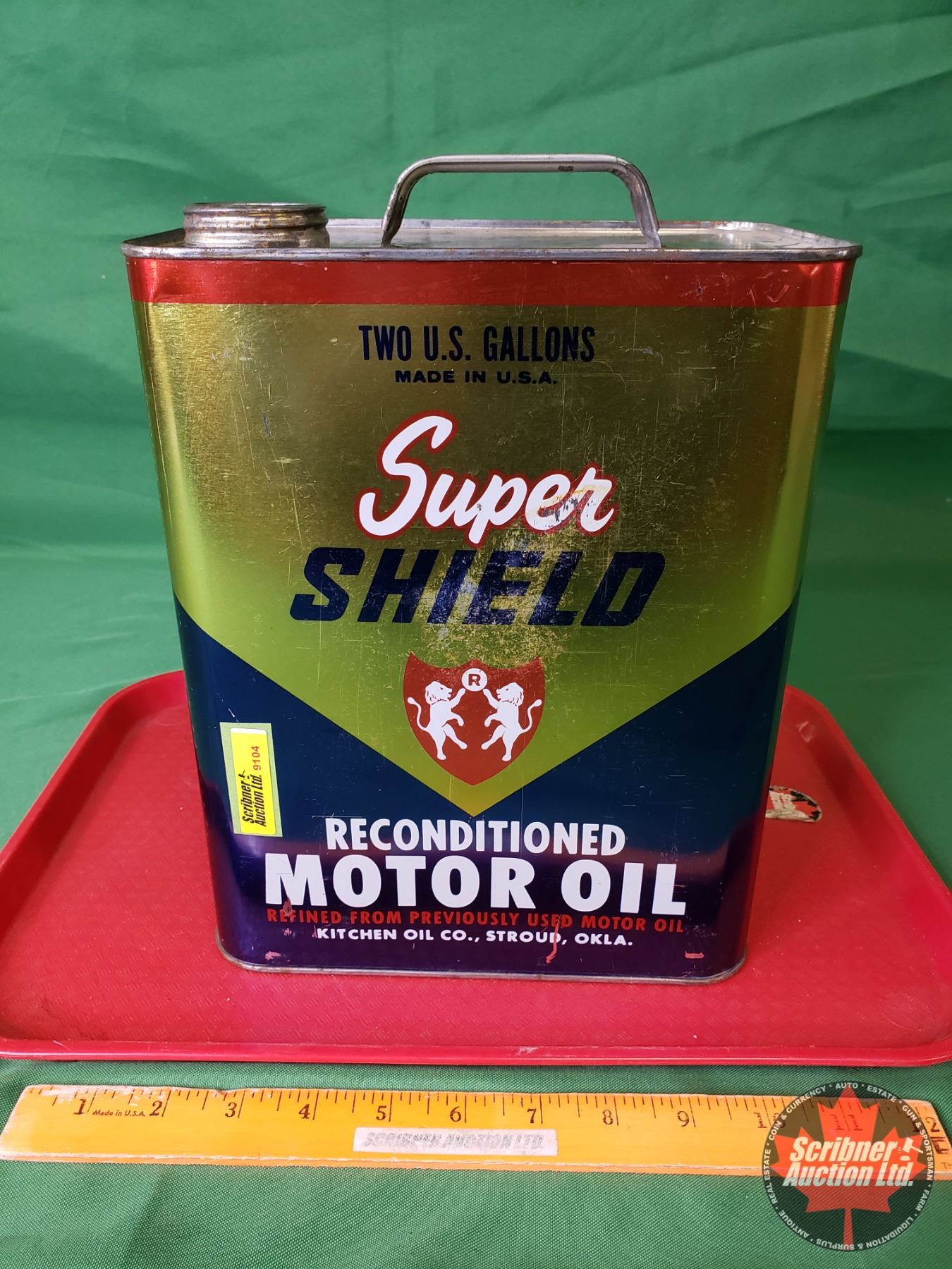 LOT #9104 "Super Shield" Motor Oil 2 Gal Tin (11-1/2"H x 8-1/2"W x 5-1/2"D) (SEE PICS!)