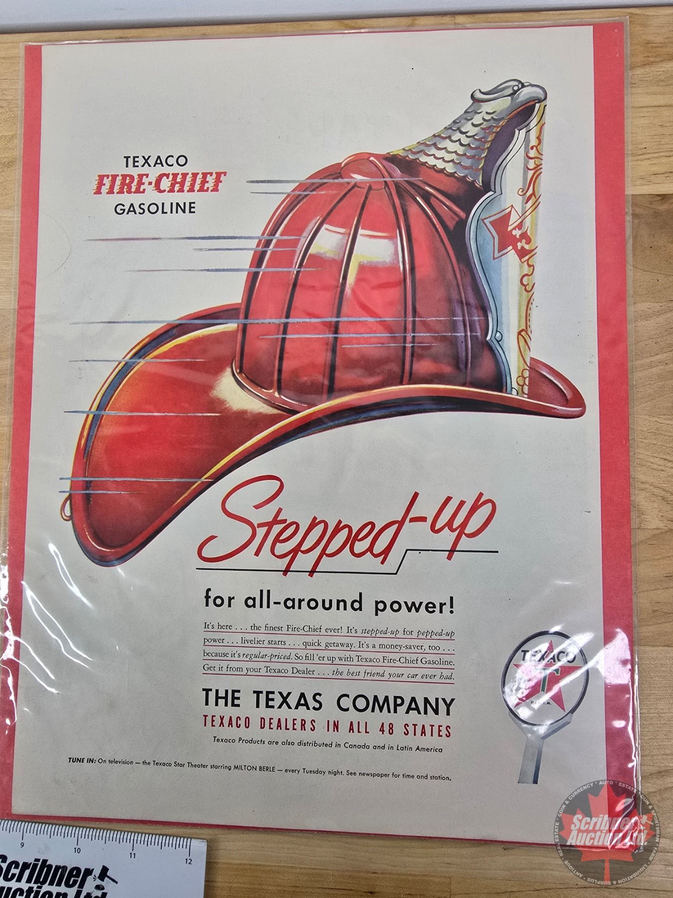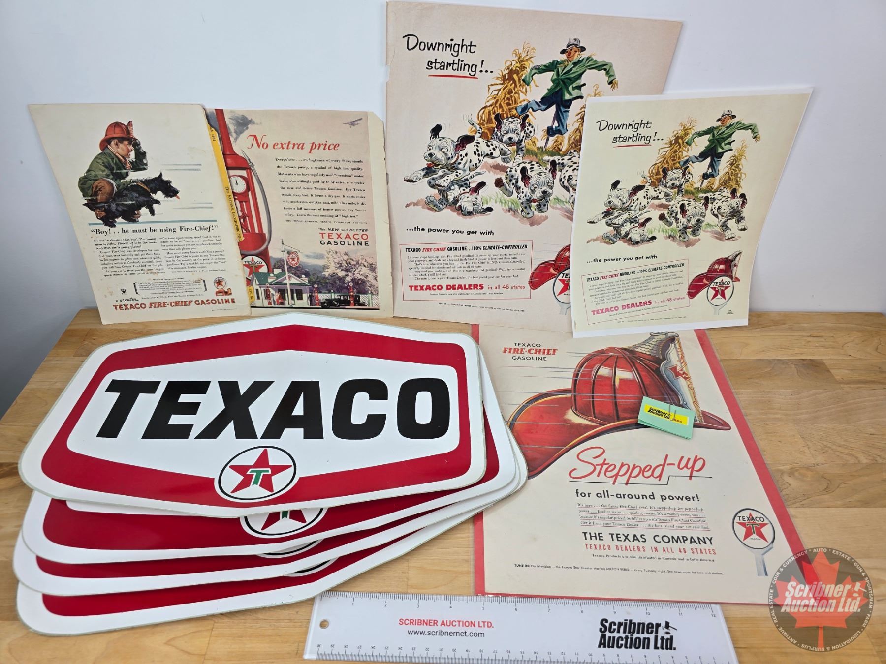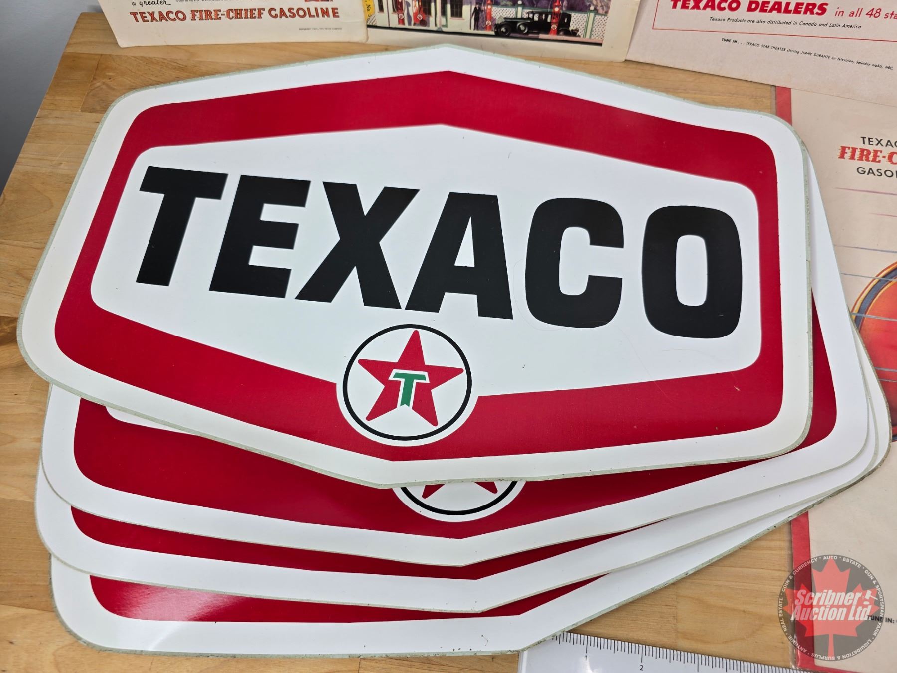 TEXACO Collector Combo: (4) Original Gas Pump Decals (Unused) & Variety Texaco Ephemera