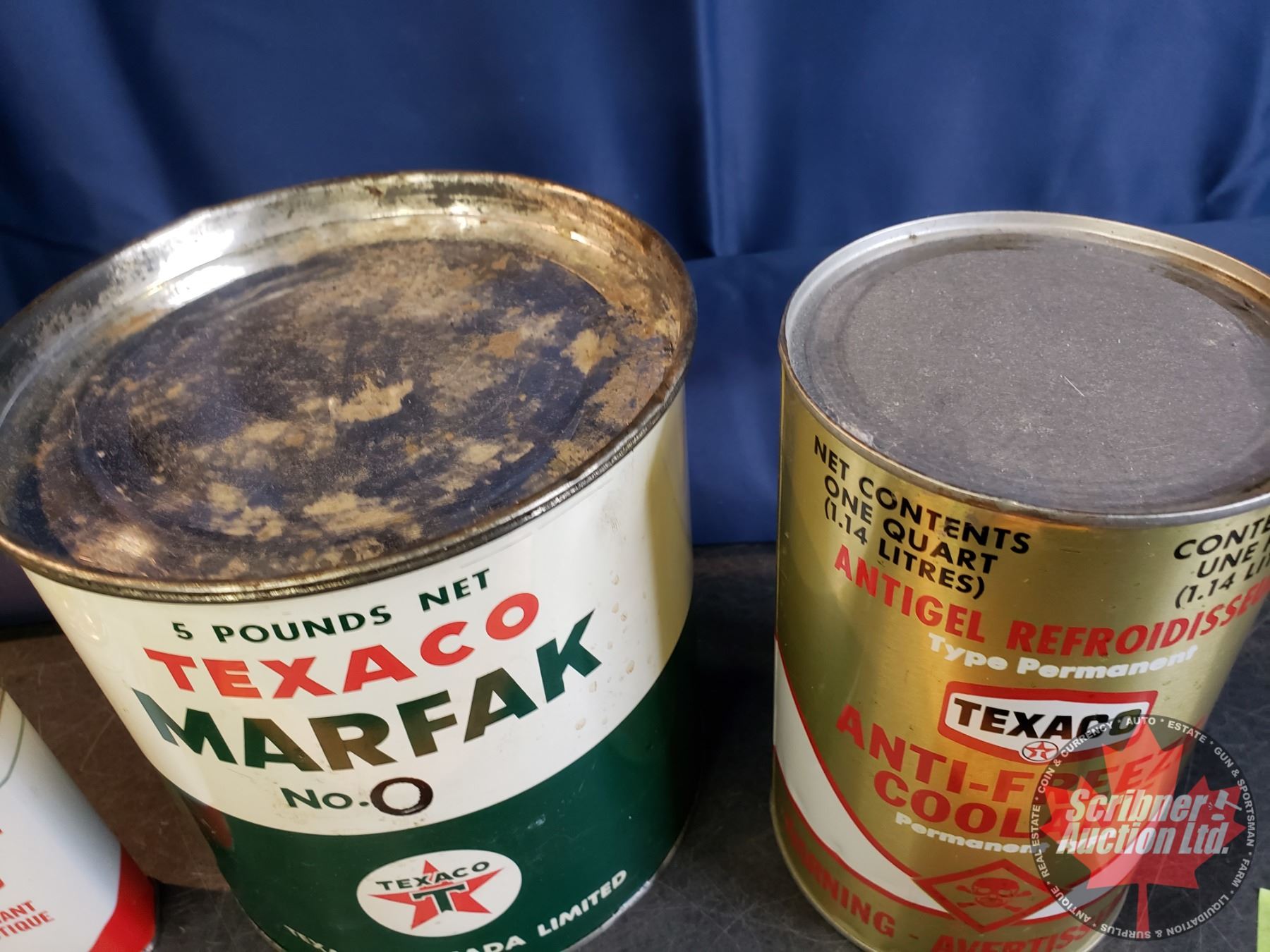 TEXACO Combo : 5 Pound Grease Tin, Home Lubricant Tin, Anti-Freeze Coolant, Chrome Polish (All Partial/Full Contents) (See Pics!)