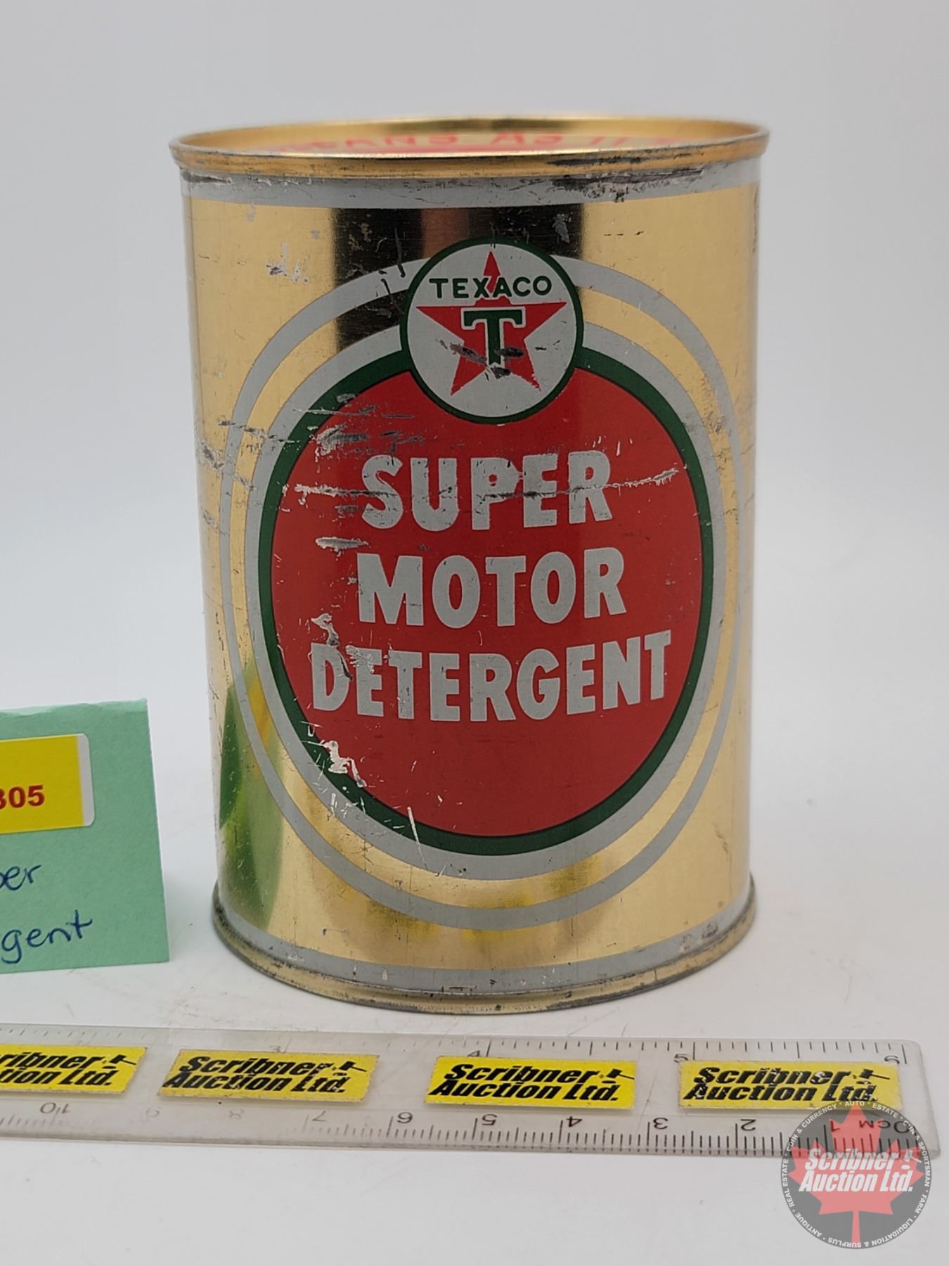 TEXACO Super Motor Detergent : 15 U.S. Fl. Oz. Can (FULL!) (4-1/4"H x 3"Dia) (SEE PICS!) (Listing &