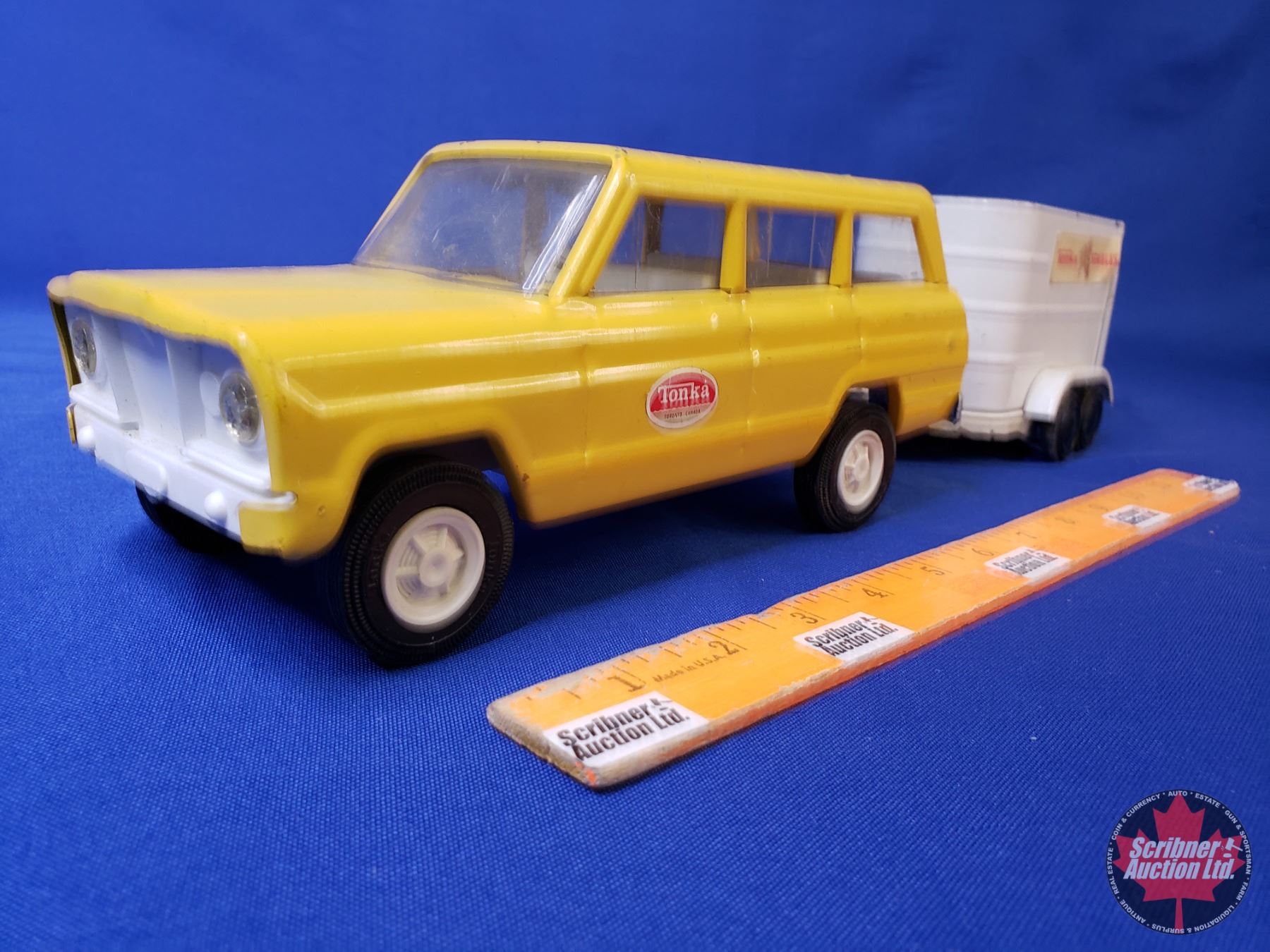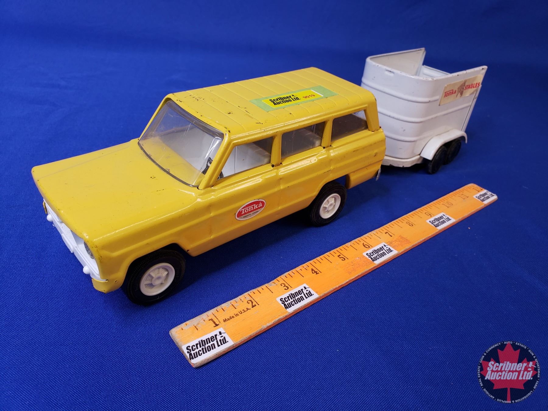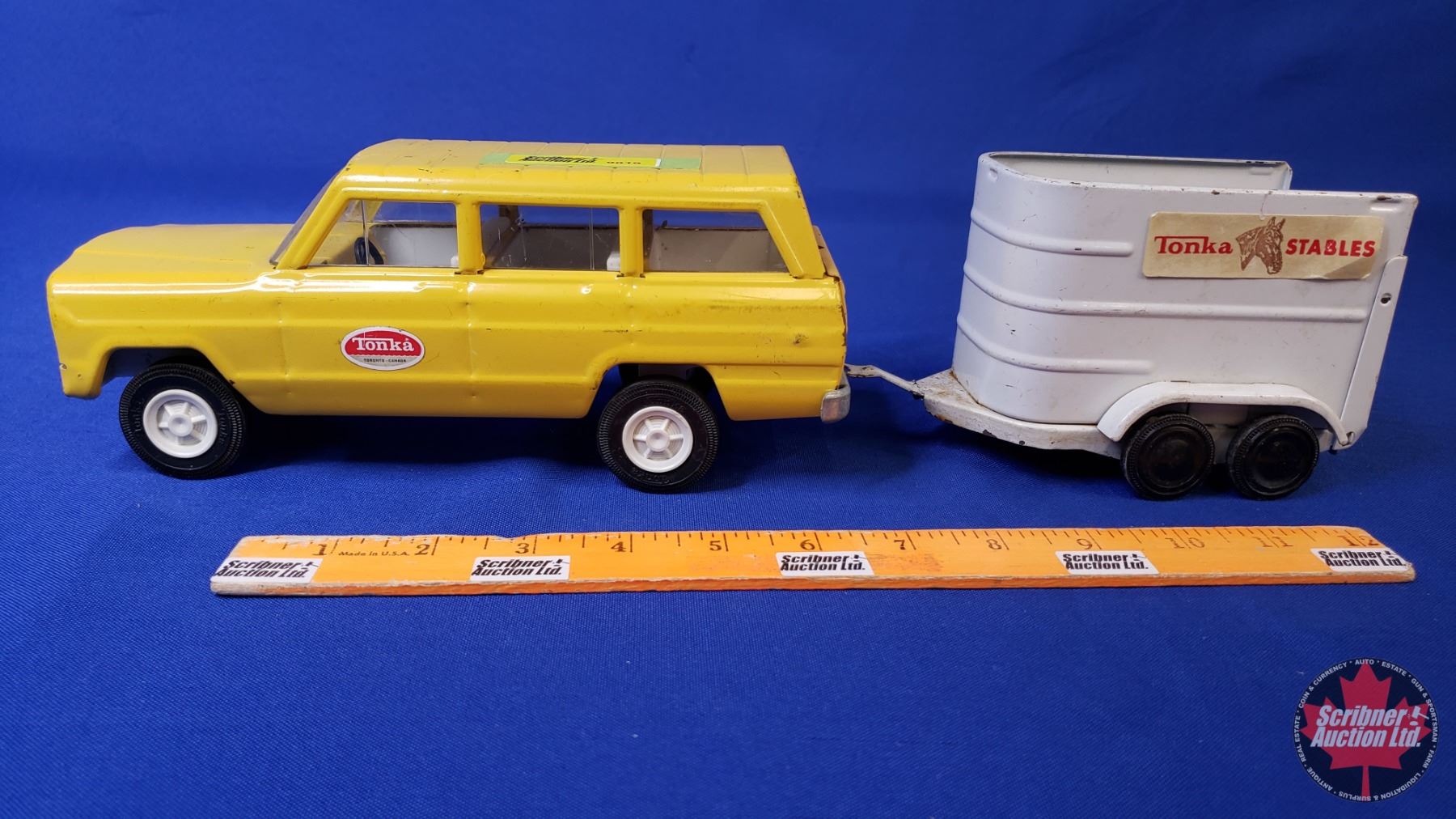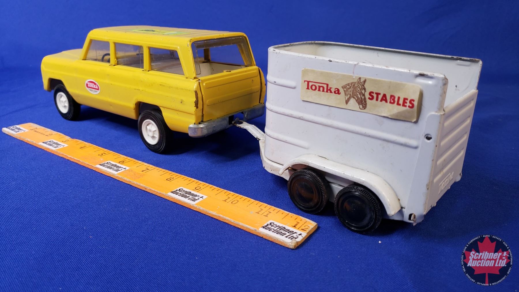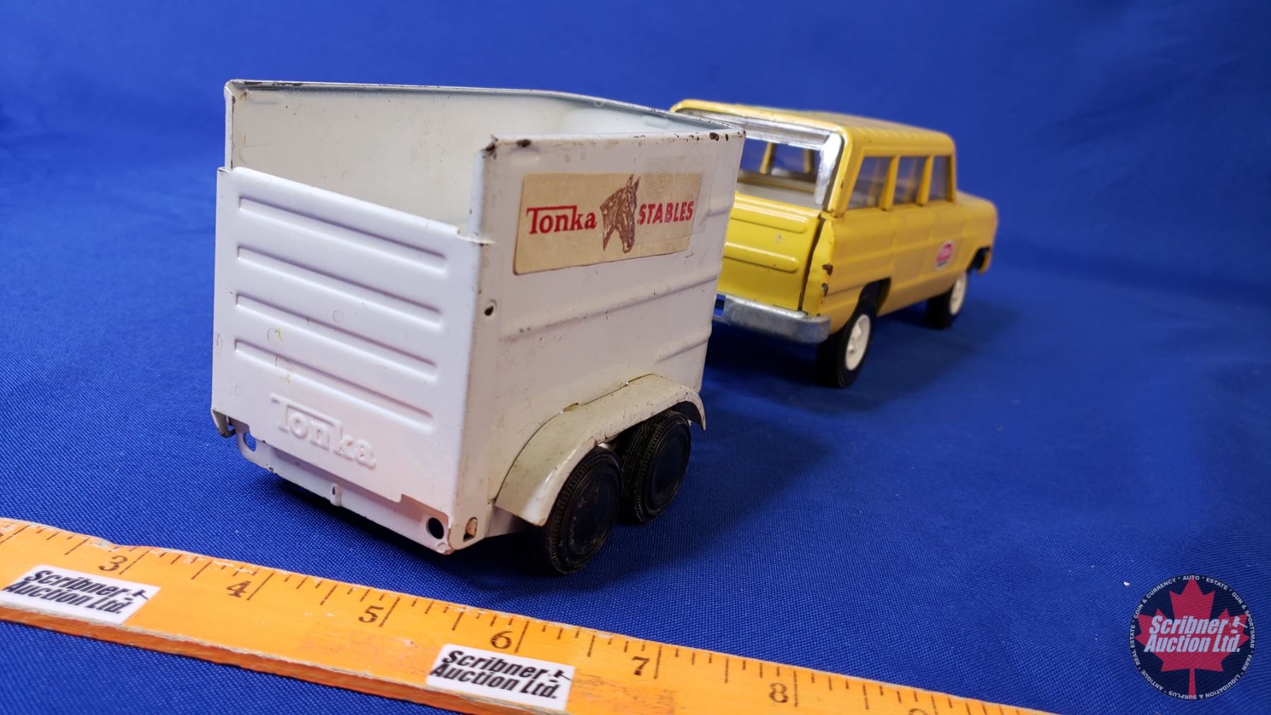 TONKA Jeep Wagoneer & Single Horse Trailer "Tonka Stables" (Total Measures : 3-3/4"H x 3-1/2'W x 15-1/2"D) (SEE PICS!)