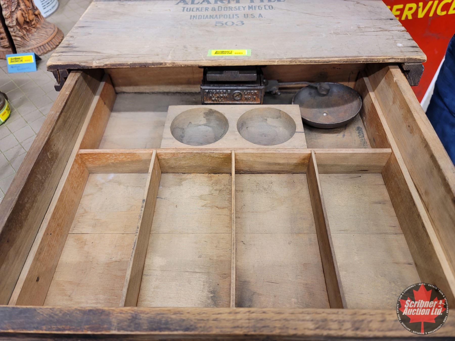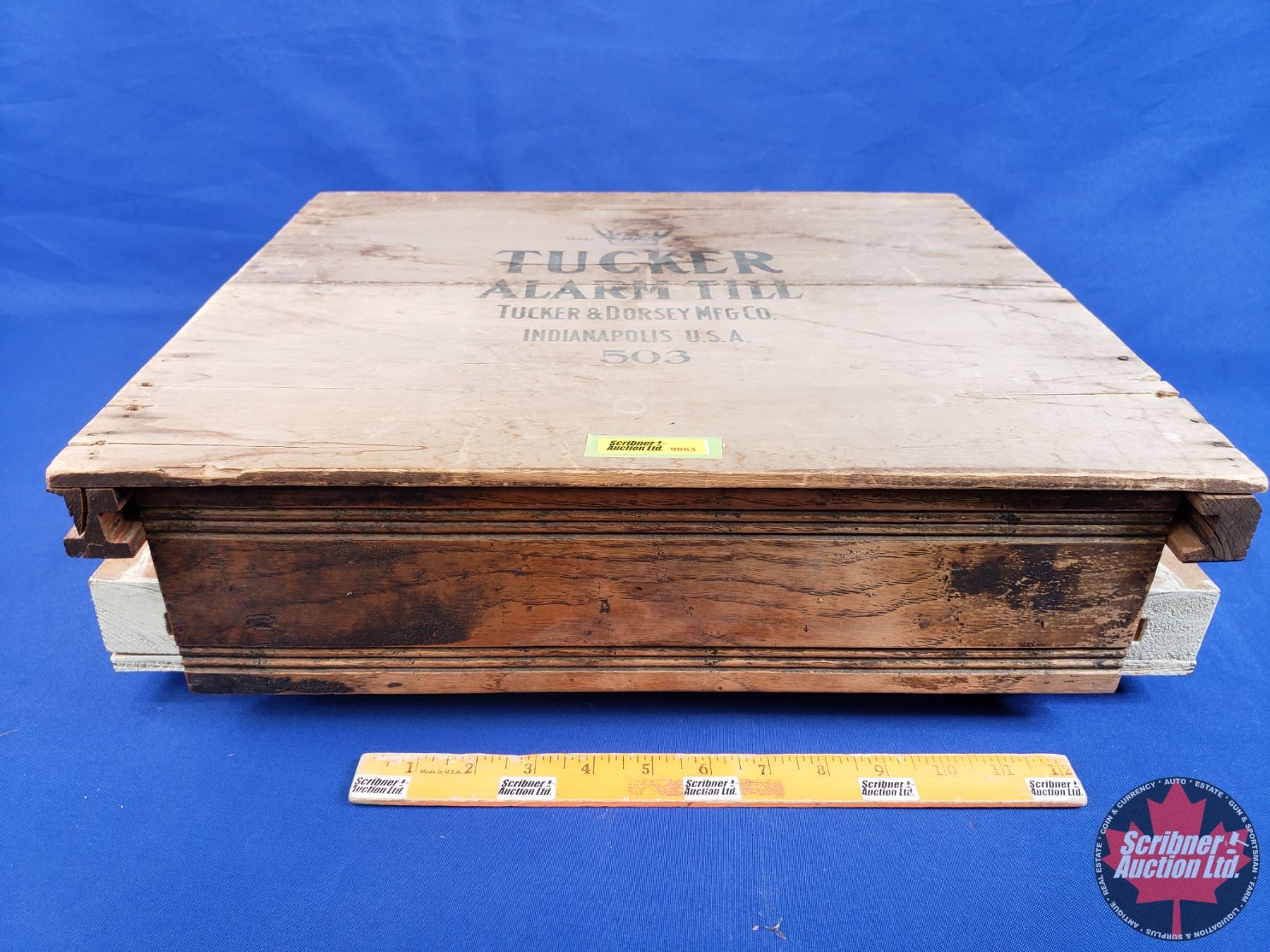 TUCKER ALARM TILL (Tucker & Dorsey Mfg. Co. Indianapolis U.S.A. 503) (5"H x 20"W x 18"D) (SEE PICS!)