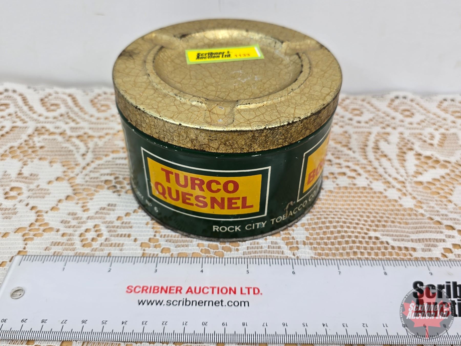 TURCO QUESNEL Tobacco Tin w/Lid "Rock City Tobacco Co" (3-1/4"H x 5-1/4"Dia) (SEE PICS!)