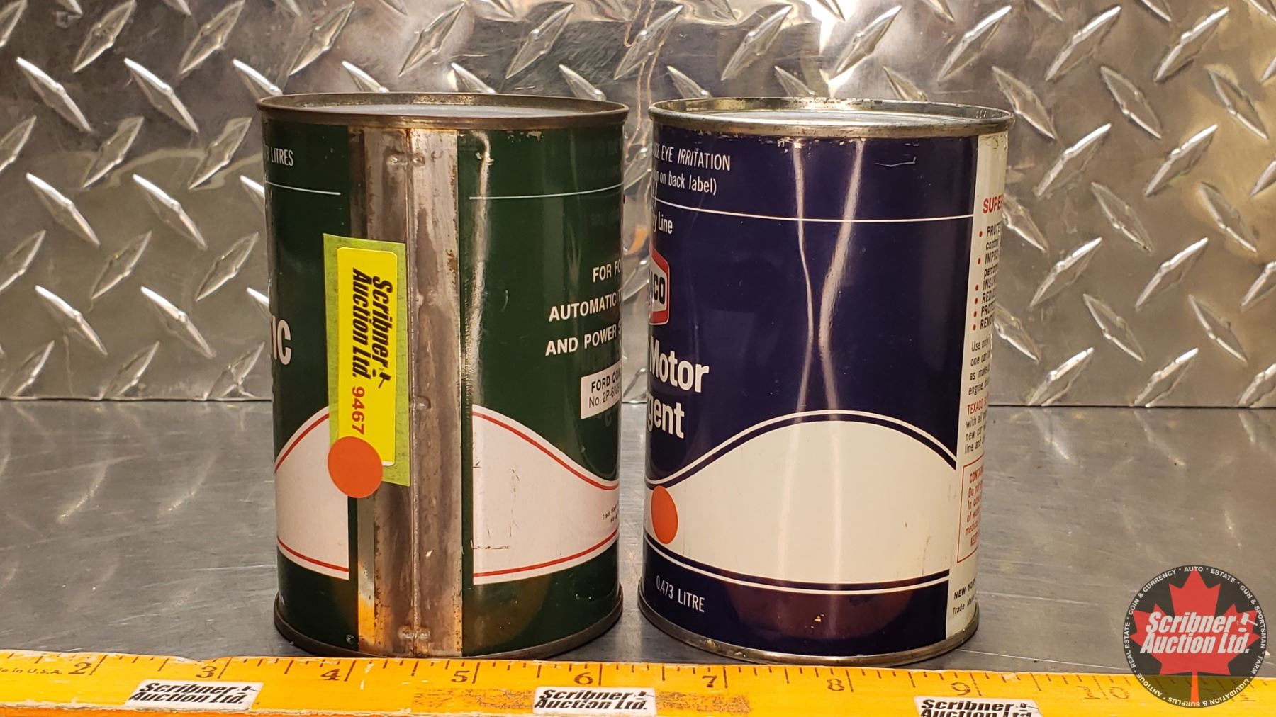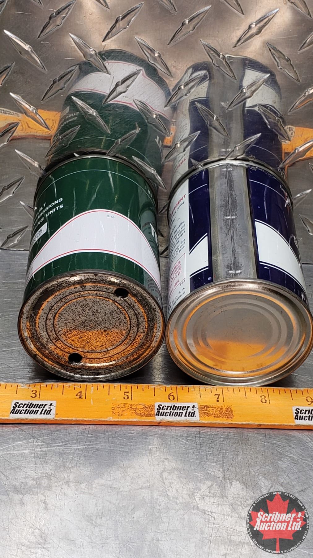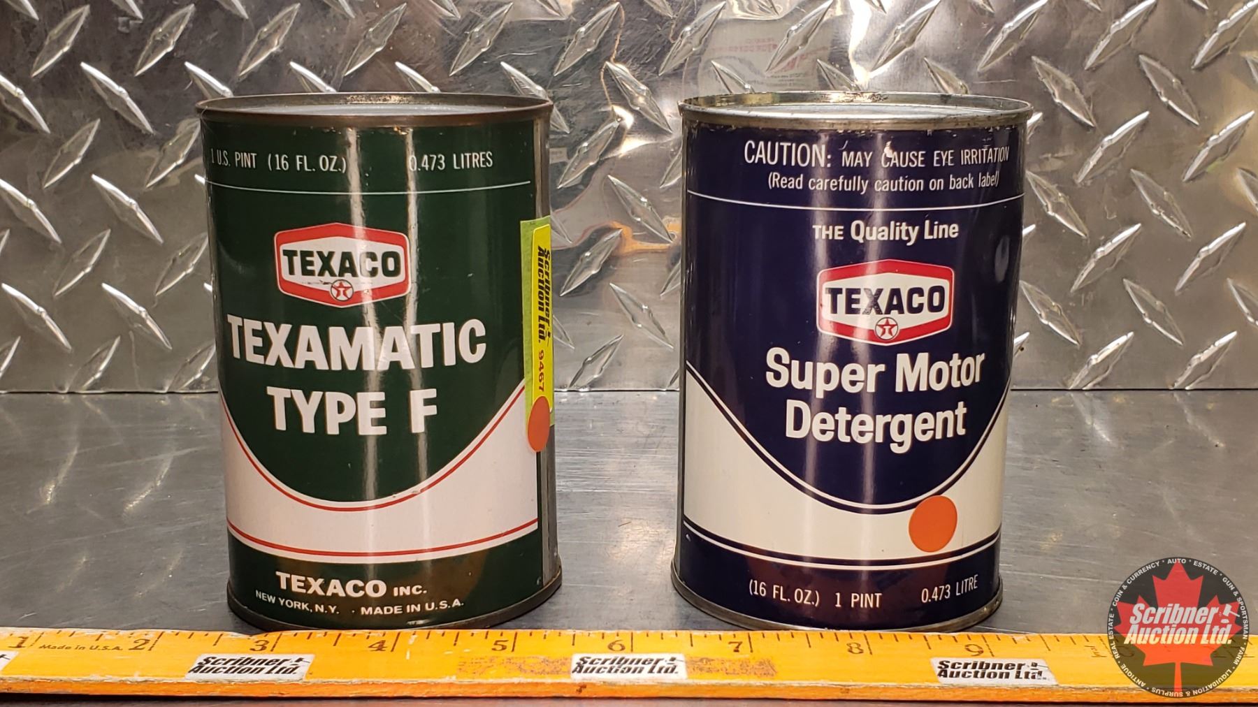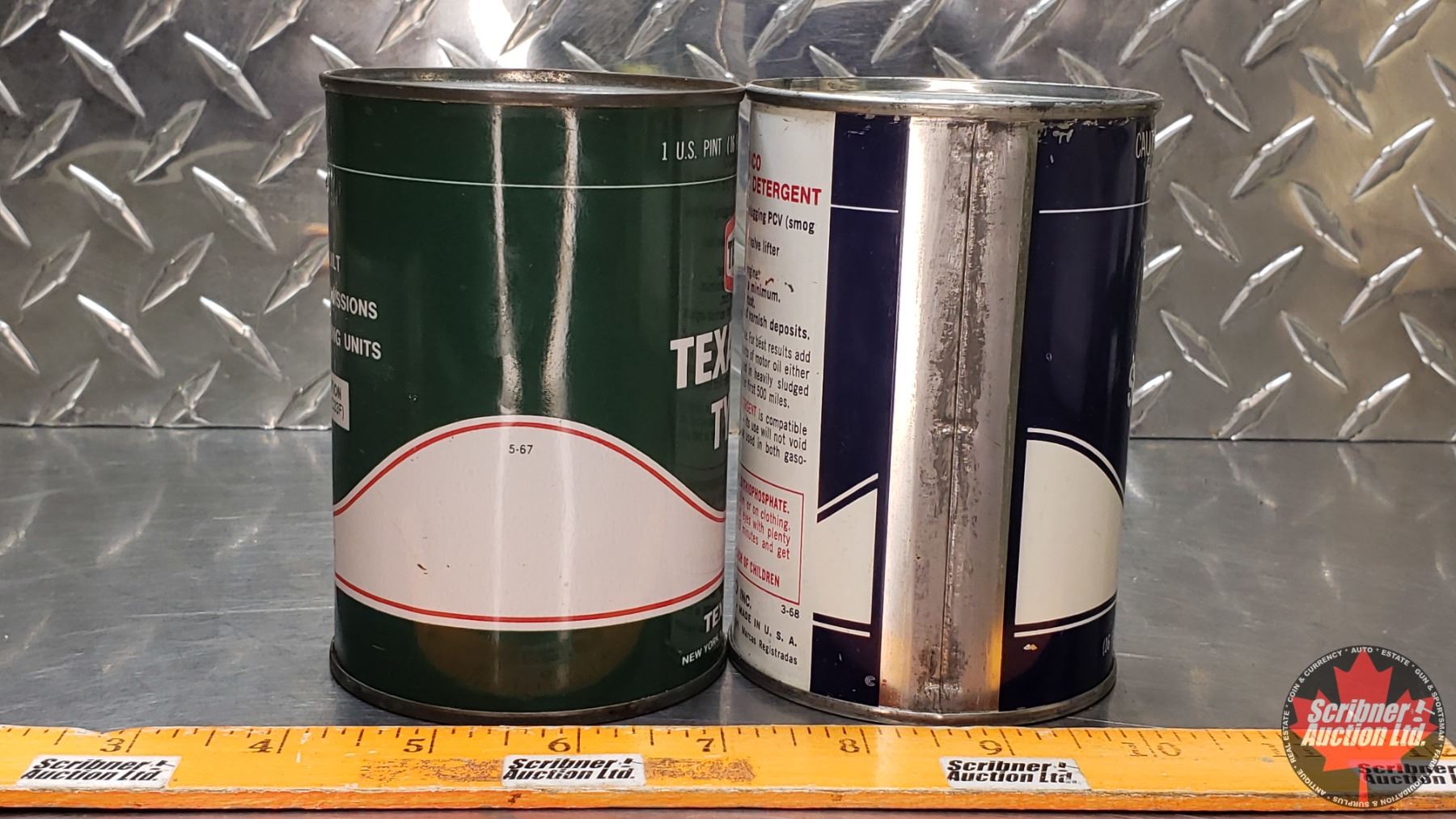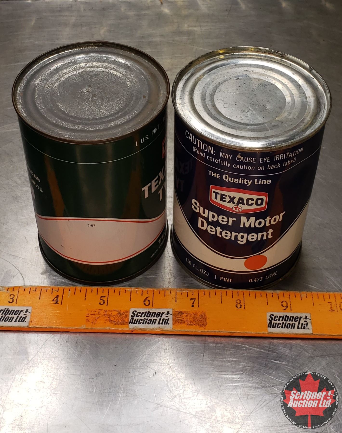 Texaco Tin Pair : Super Motor Detergent (Full) & Texamatic Type F (Largest Measures : 4-1/2"H x 3"Dia) (SEE PICS!)