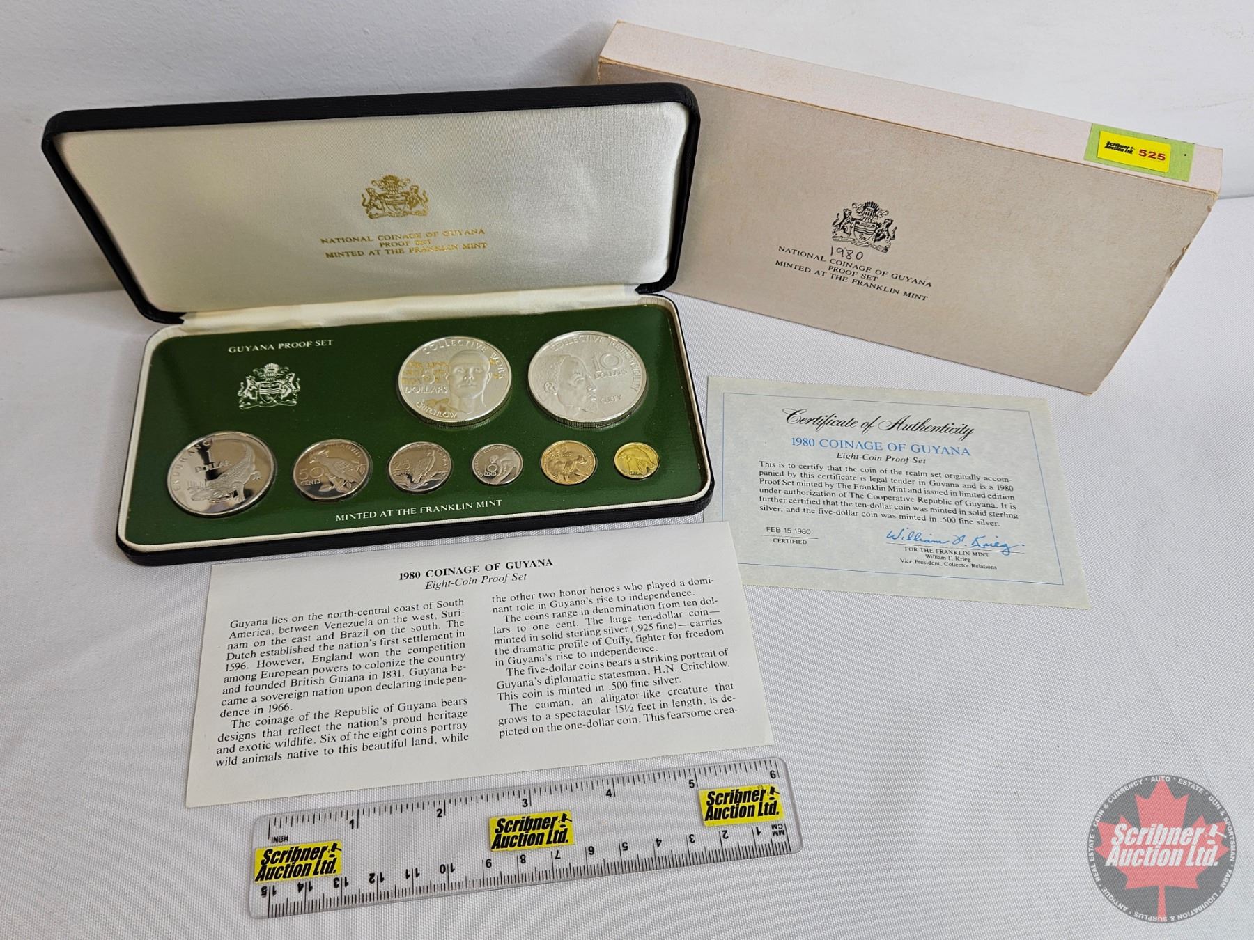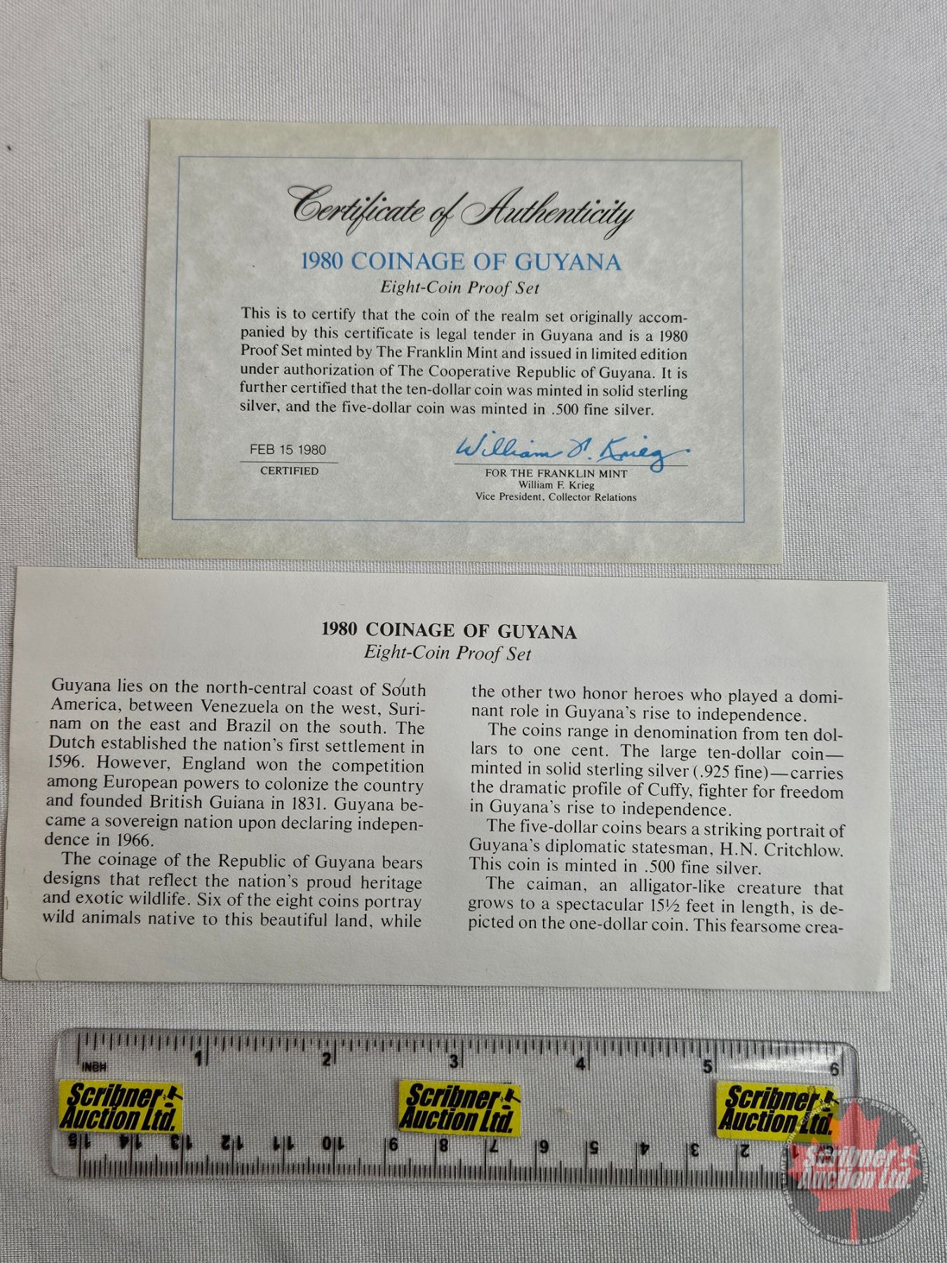 The Franklin Mint ~ Guyana : 1980 Eight-Coin Proof Set (COA) (Estate Lot)