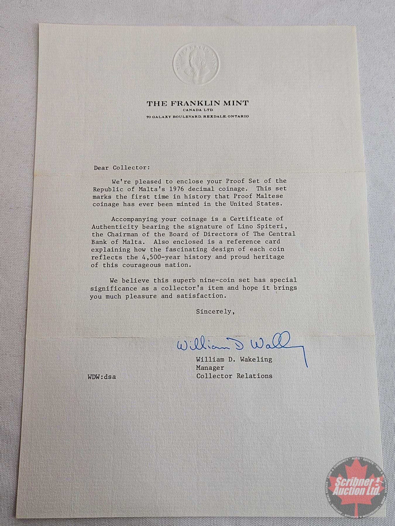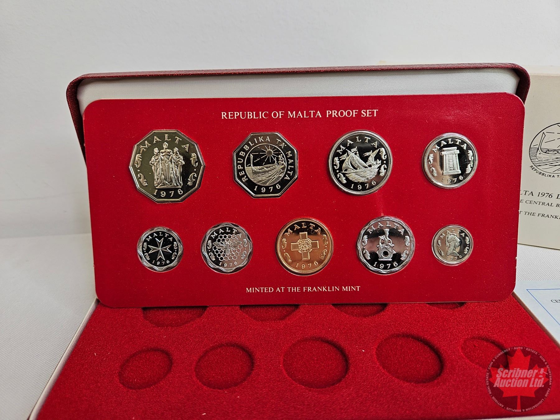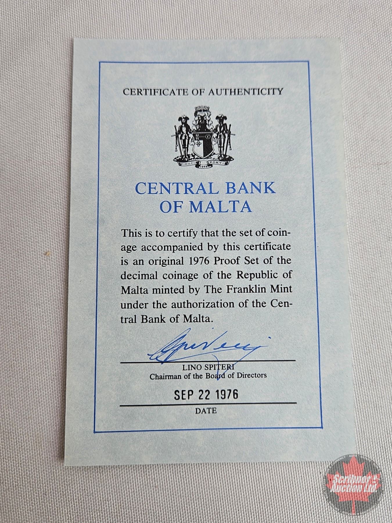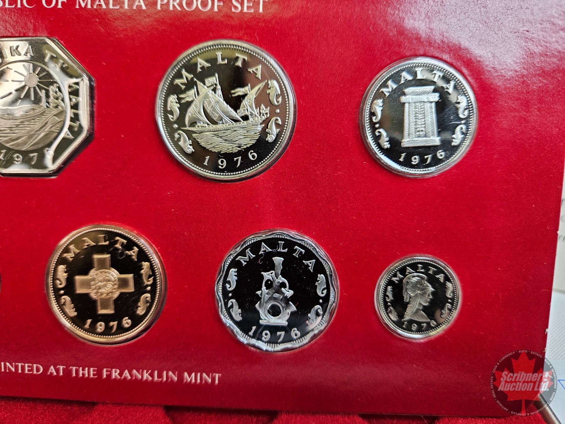 The Franklin Mint ~ Republic of Malta : 1976 Nine-Coin Proof Set (COA) (Estate Lot)
