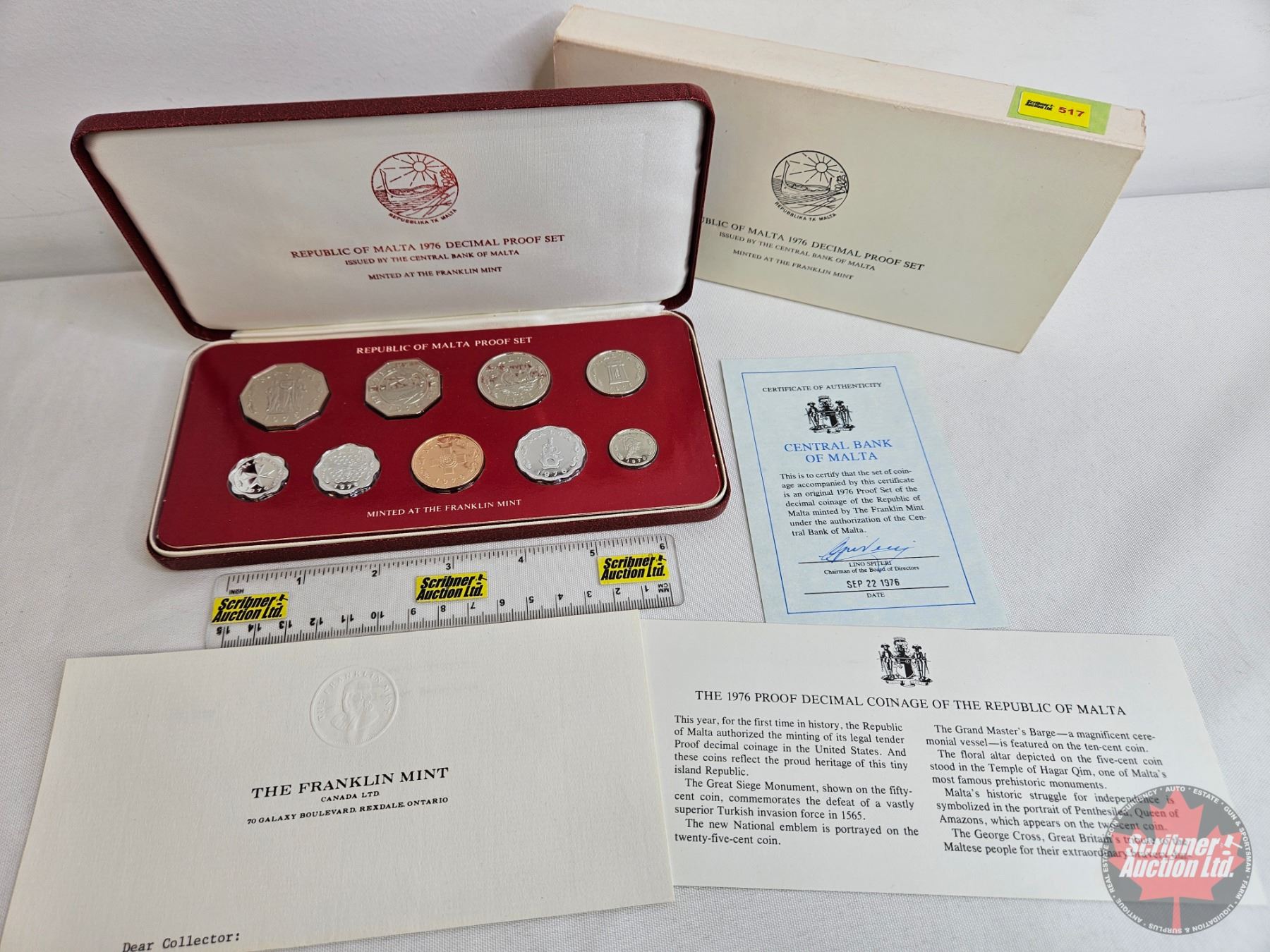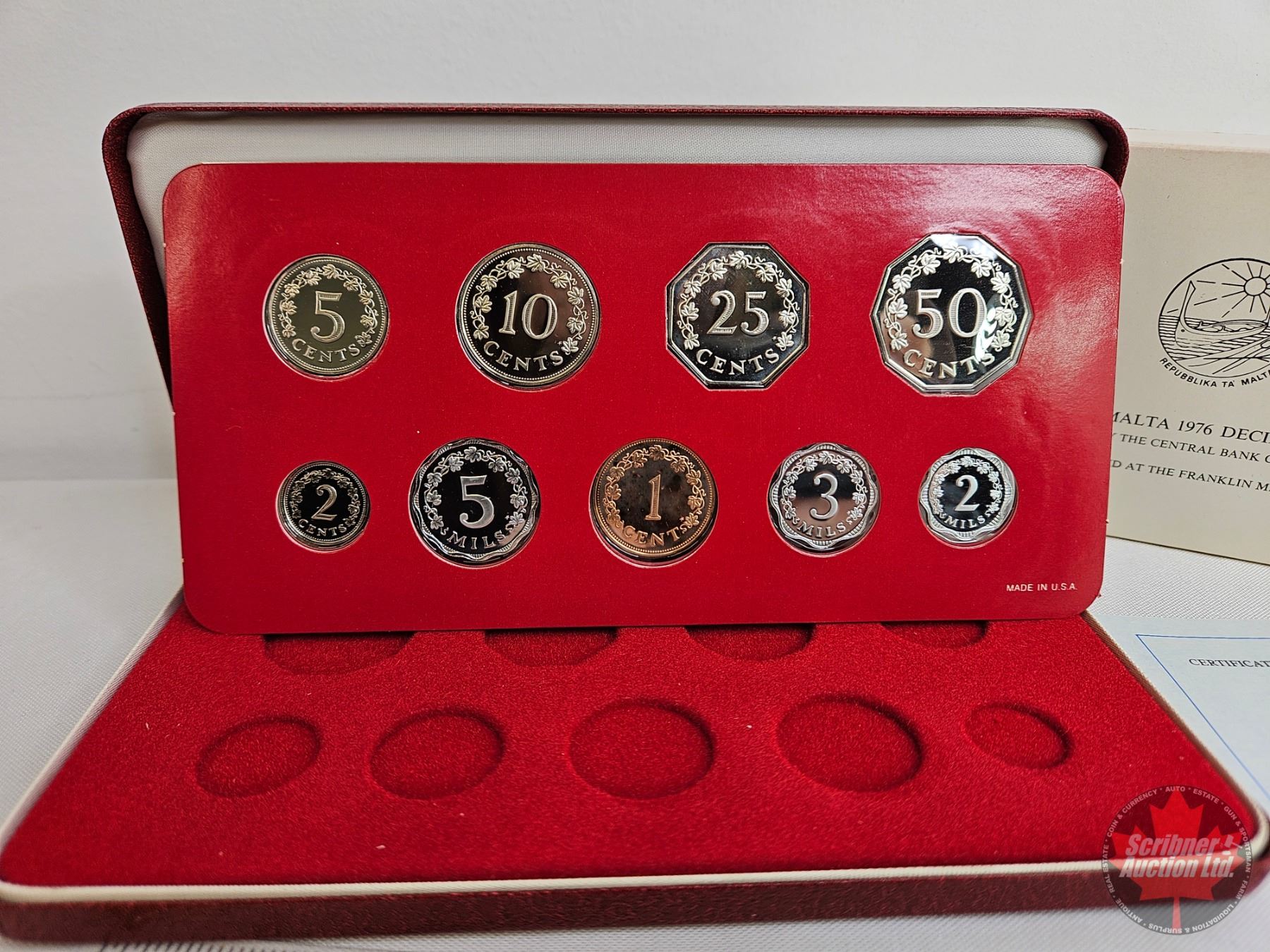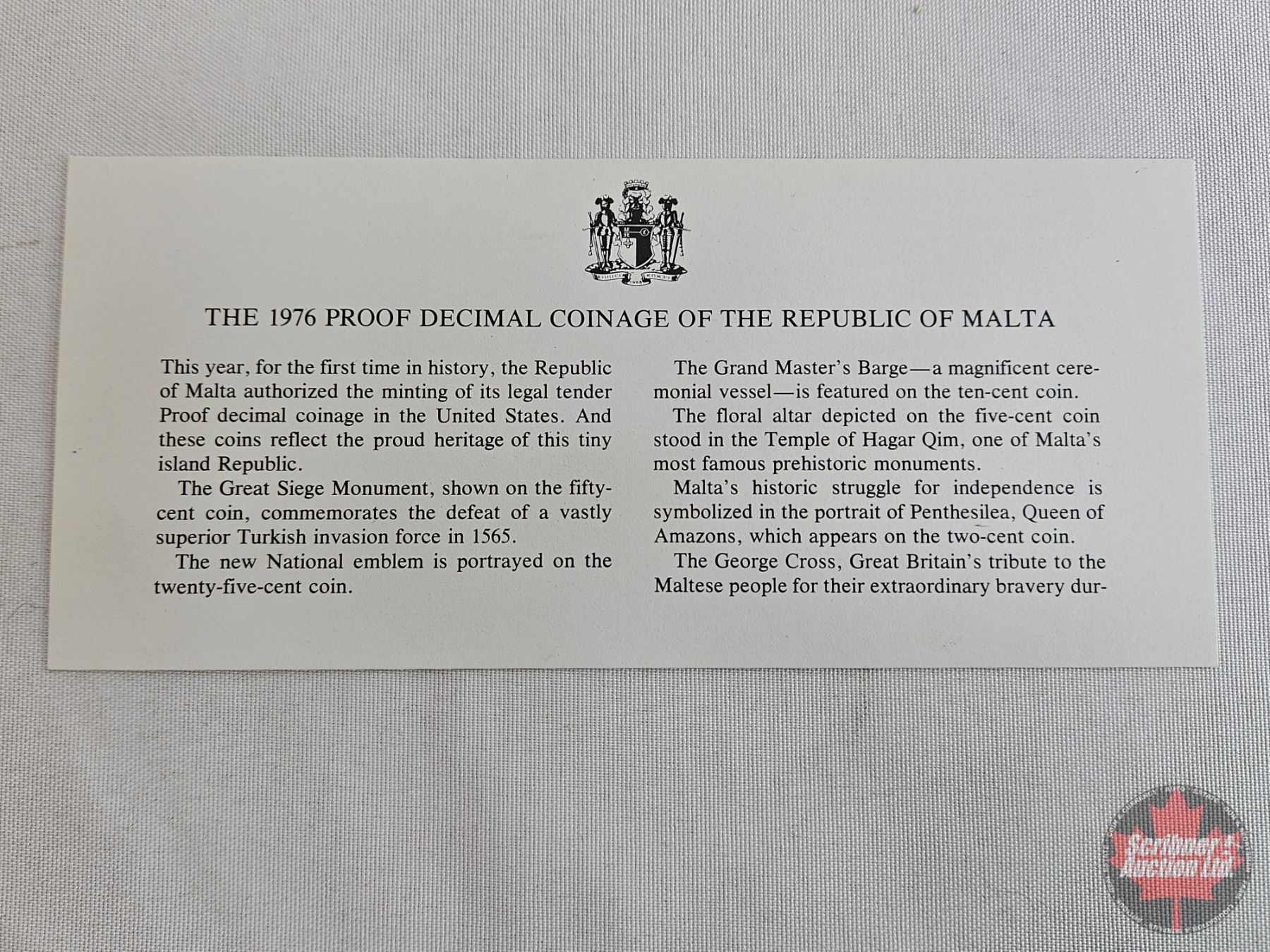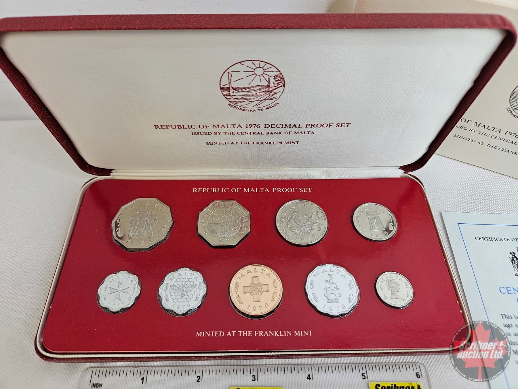 The Franklin Mint ~ Republic of Malta : 1976 Nine-Coin Proof Set (COA) (Estate Lot)