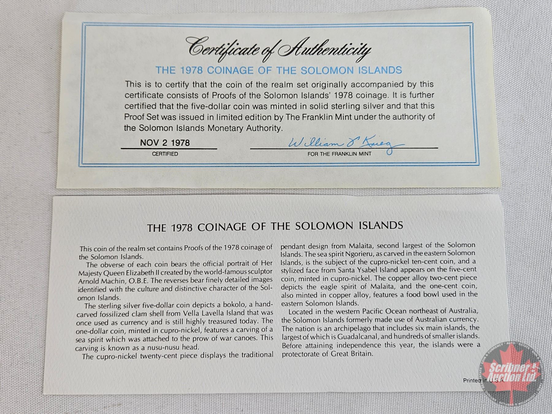 The Franklin Mint ~ Solomon Islands : 1978 Seven-Coin Proof Set (COA) (Estate Lot)