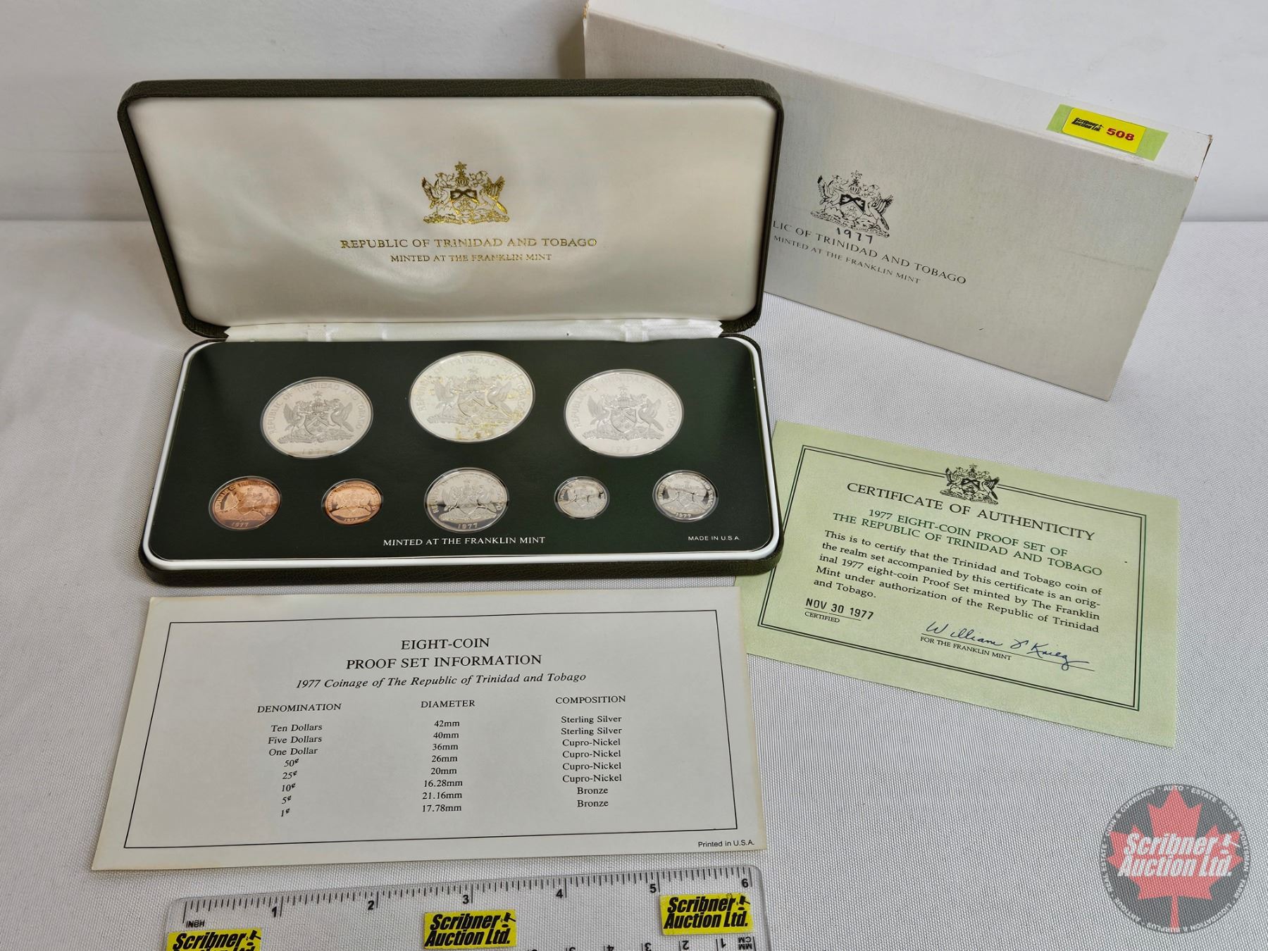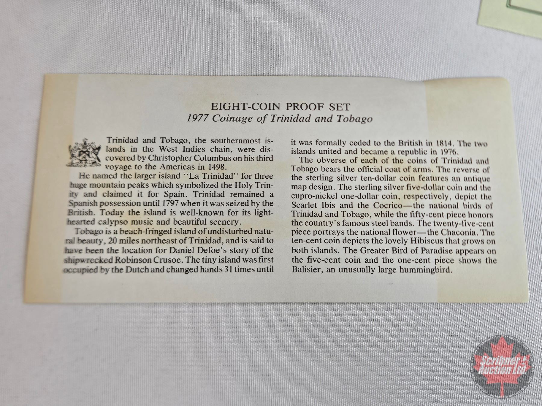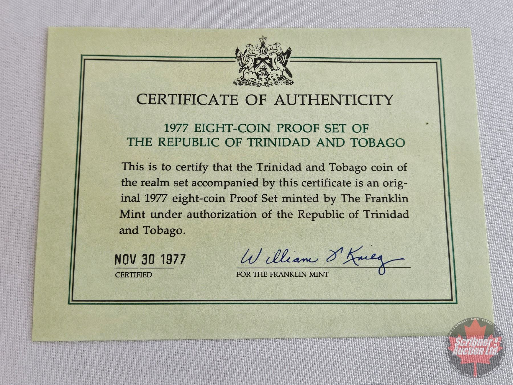 The Franklin Mint ~ Trinidad and Tobago : 1977 Eight-Coin Proof Set (COA) (Estate Lot)