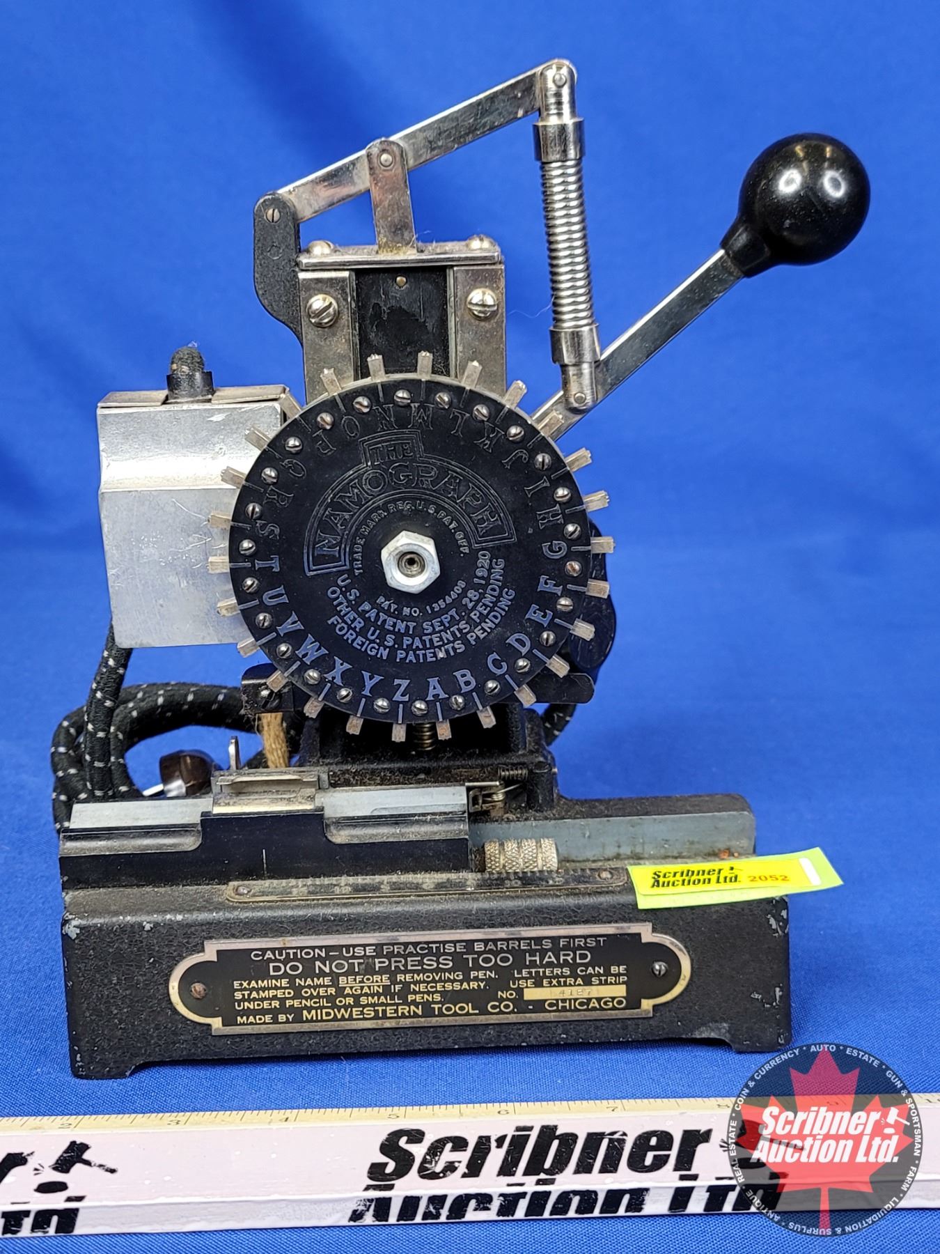 "The Namograph" Electric Fountain Pen Lettering Machine by Midwestern Tool Co (c. 1920's) (10"H x 7"W x 4"D) (SEE PICS!)