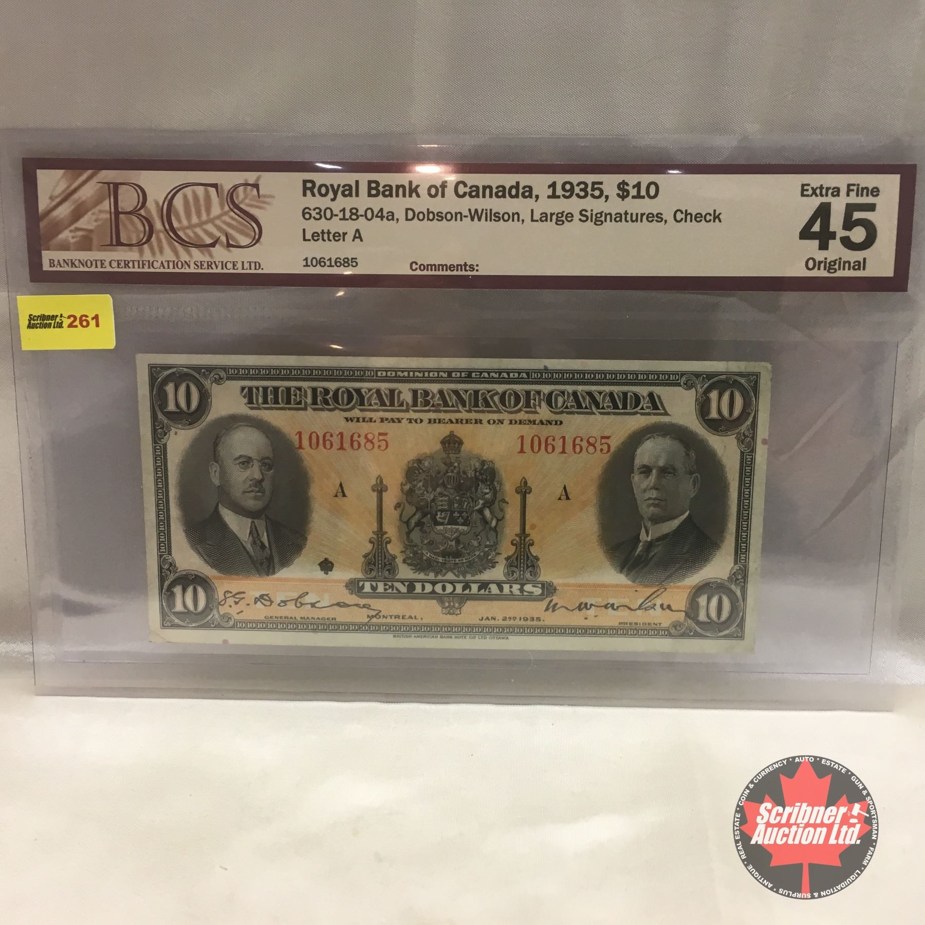 The Royal Bank of Canada $10 Bill 1935 #1061685 (BCS Certified: Extra Fine 45)