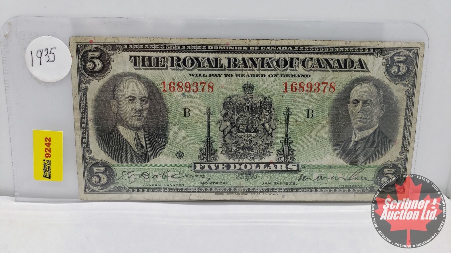 The Royal Bank of Canada $5 Bill 1935 Dobson/Wilson #1689378