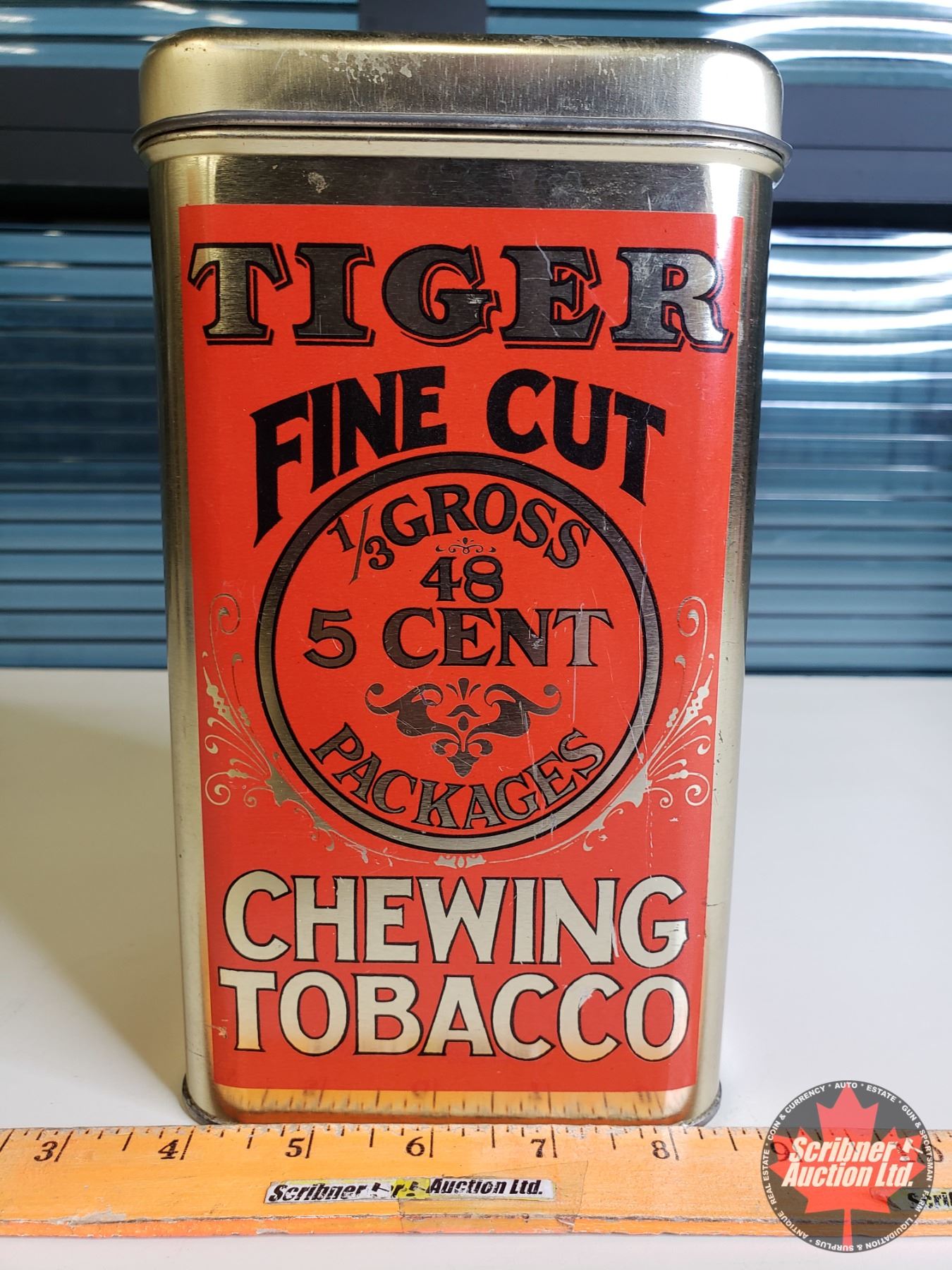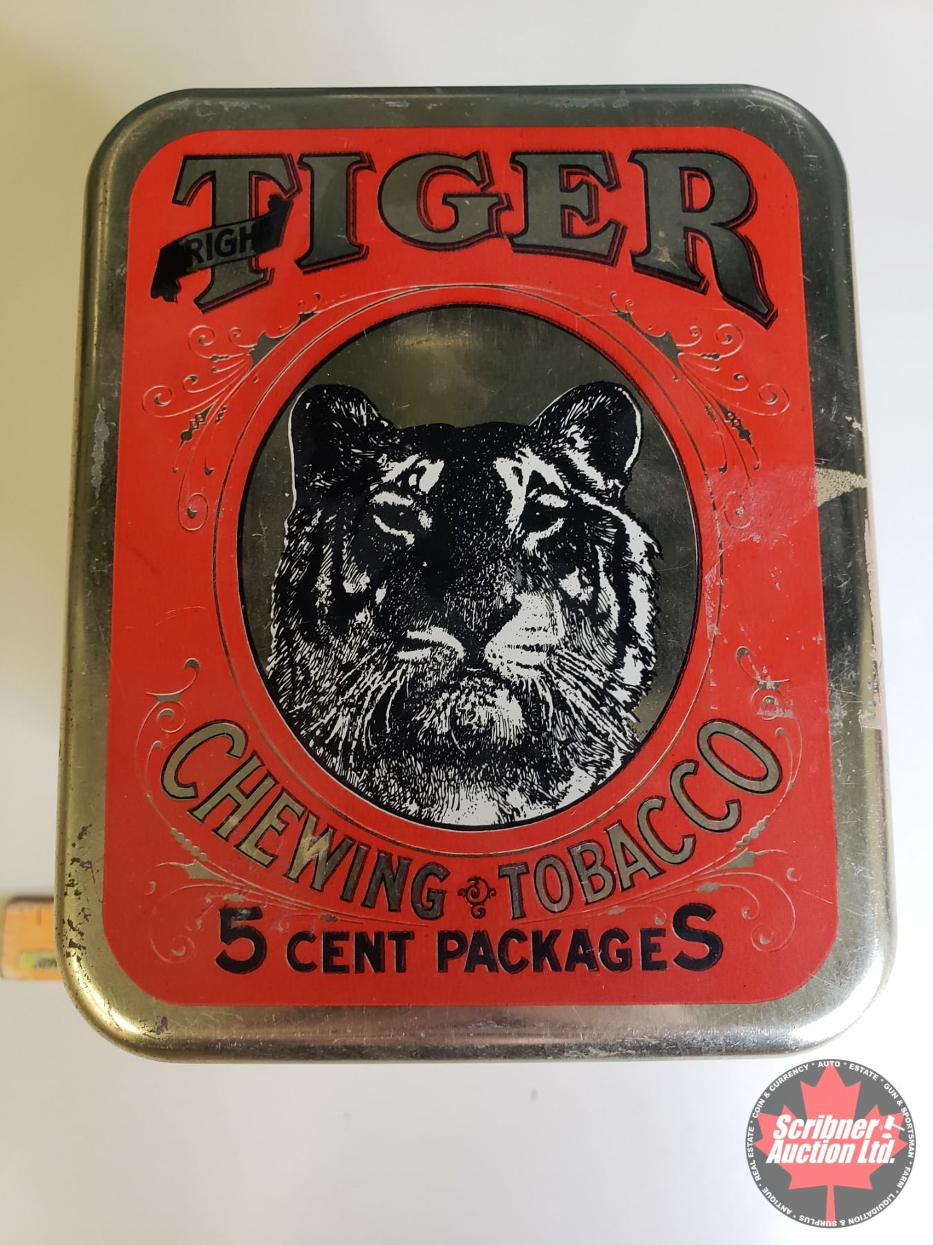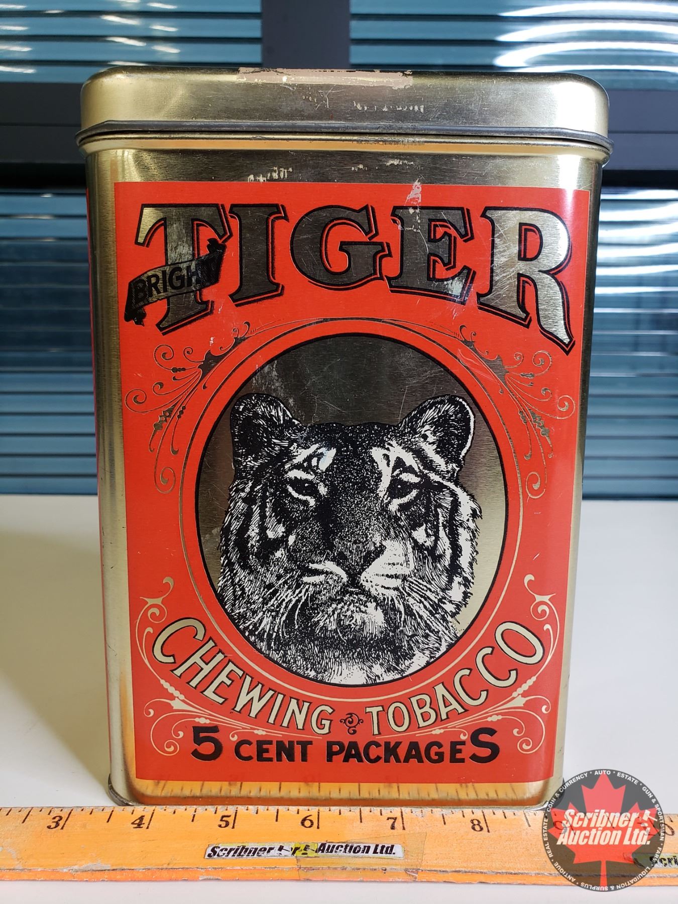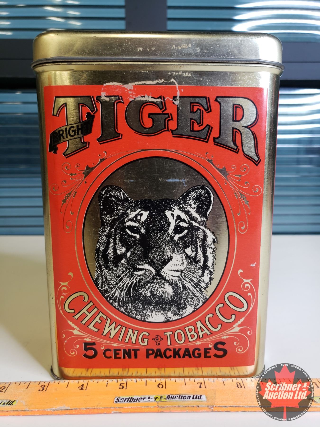 Tiger Chewing Tobacco Tin (9"H x 6"W x 5"D) (SEE PICS!)