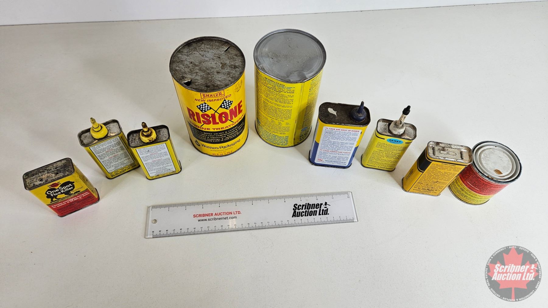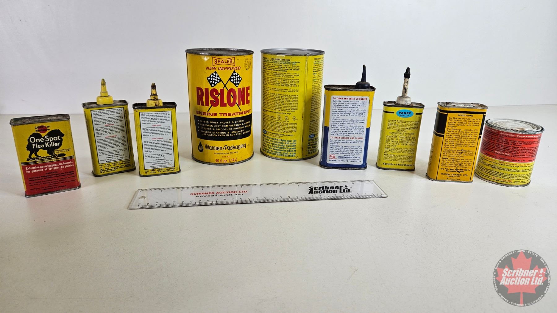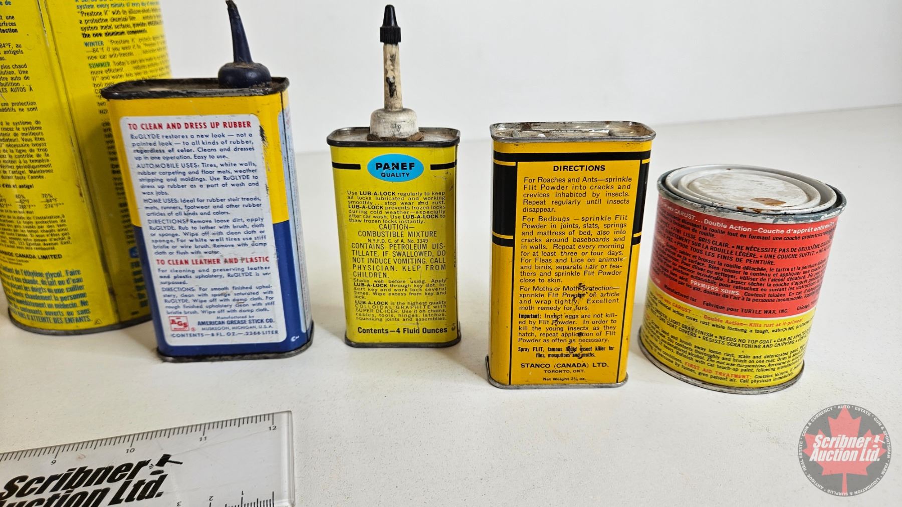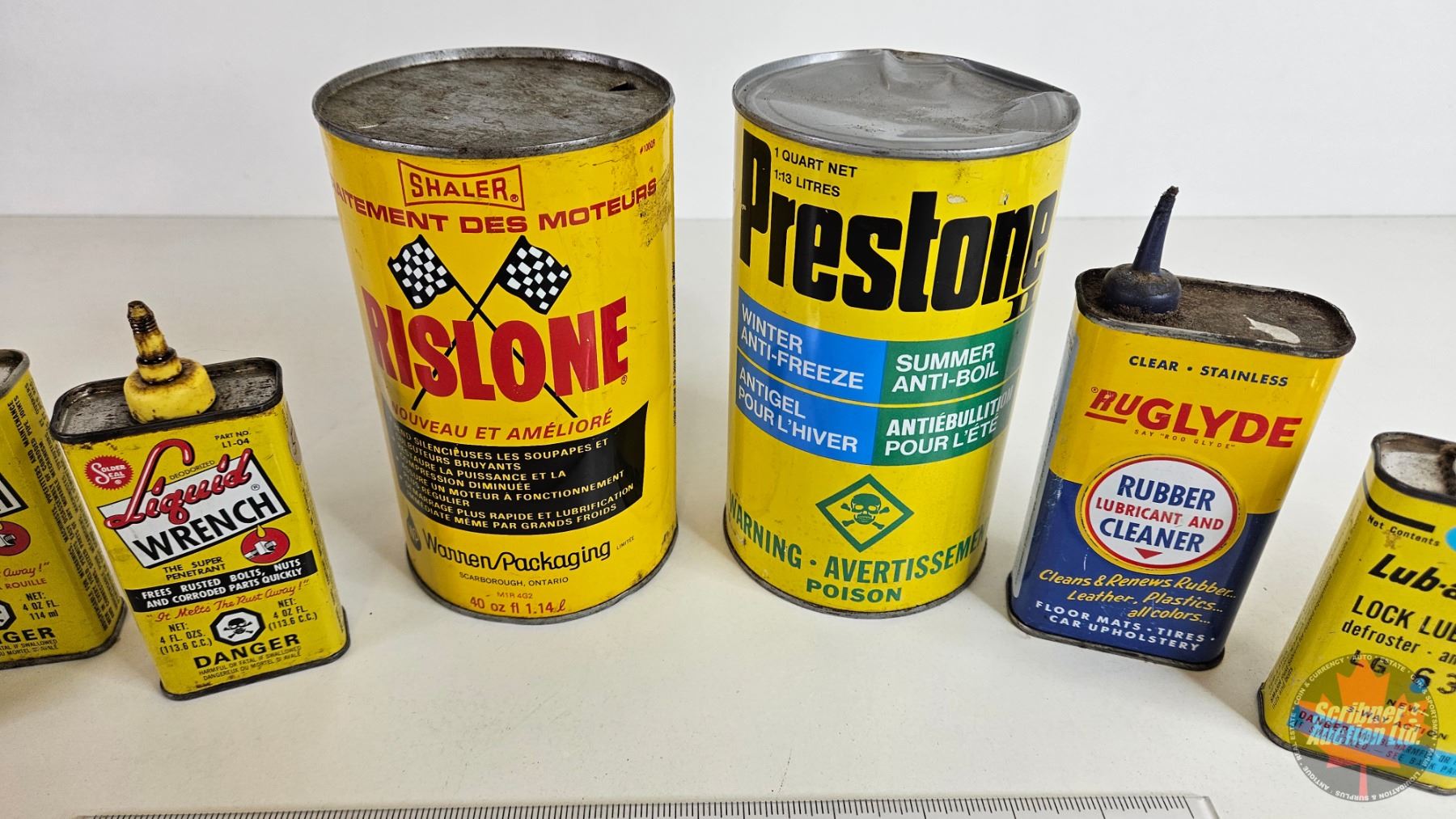 Tin Collection : Prestone Anti-Freeze (Full) ; Rislone; Flit Powder; Liquid Wrench; etc!