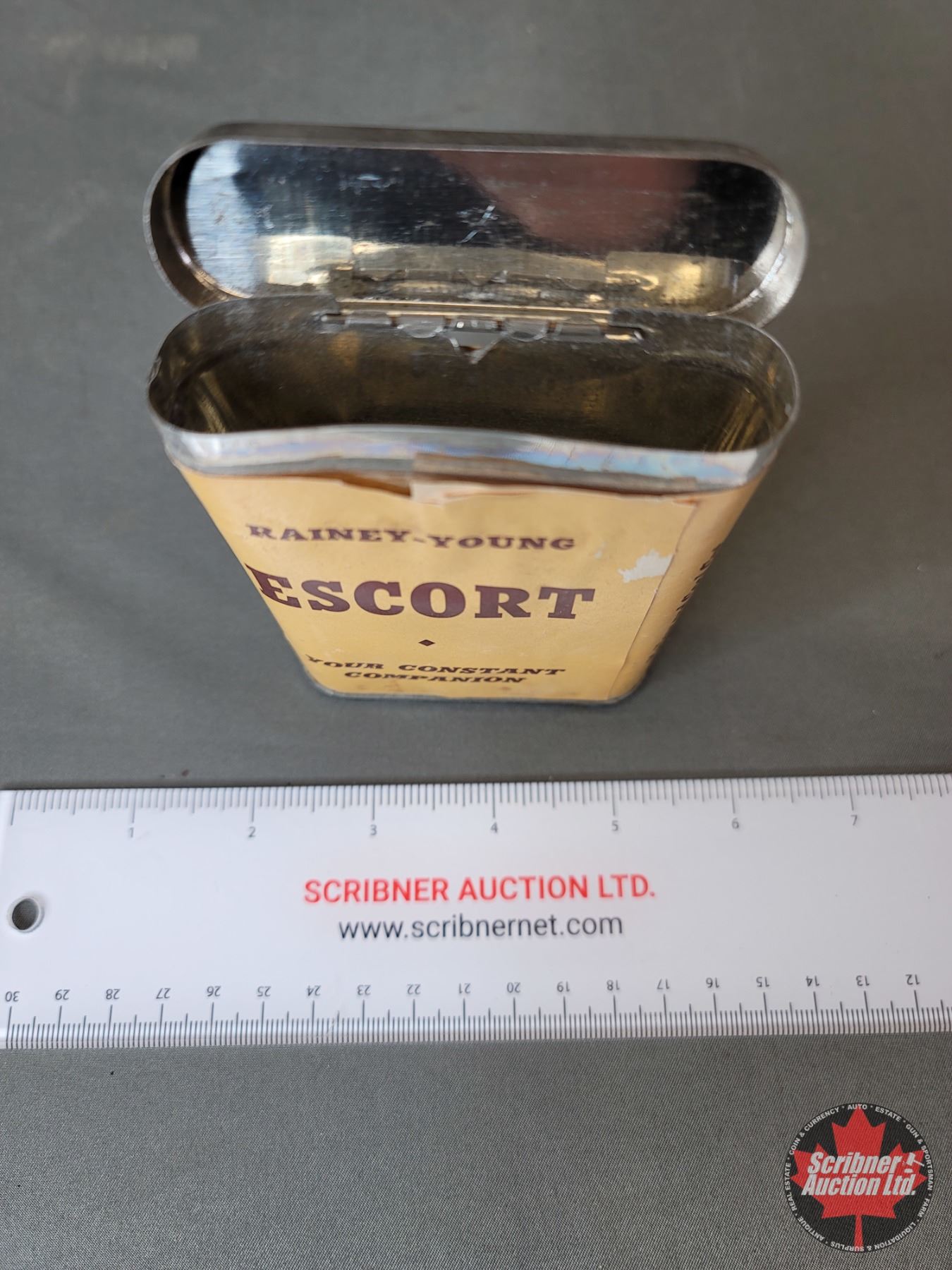Tobacco Pocket Tin "RAINEY-YOUNG ESCORT" (Paper Label) (4-3/4"H x 3"W x 1"D) (SEE PICS!)