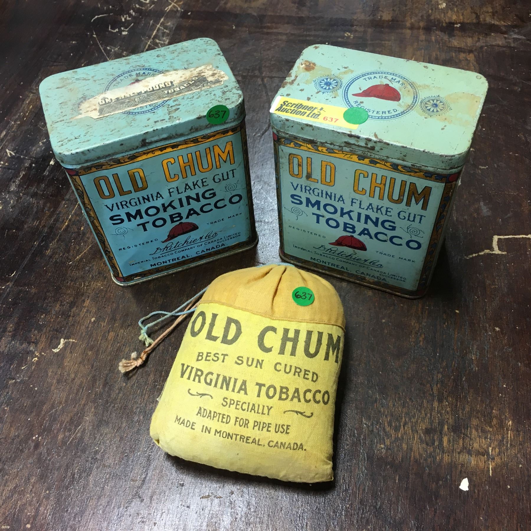Tobacco Trio : Old Chum Tins (2) & Pouch (1)