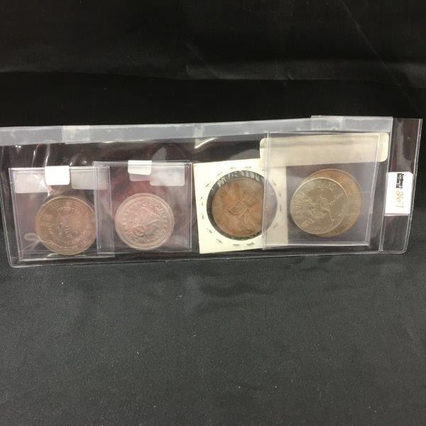 Calgary Stampede 1966; Canada 1953 QEII; Work World Trade Dollar; St. Paul Trade Two Dollars 1996