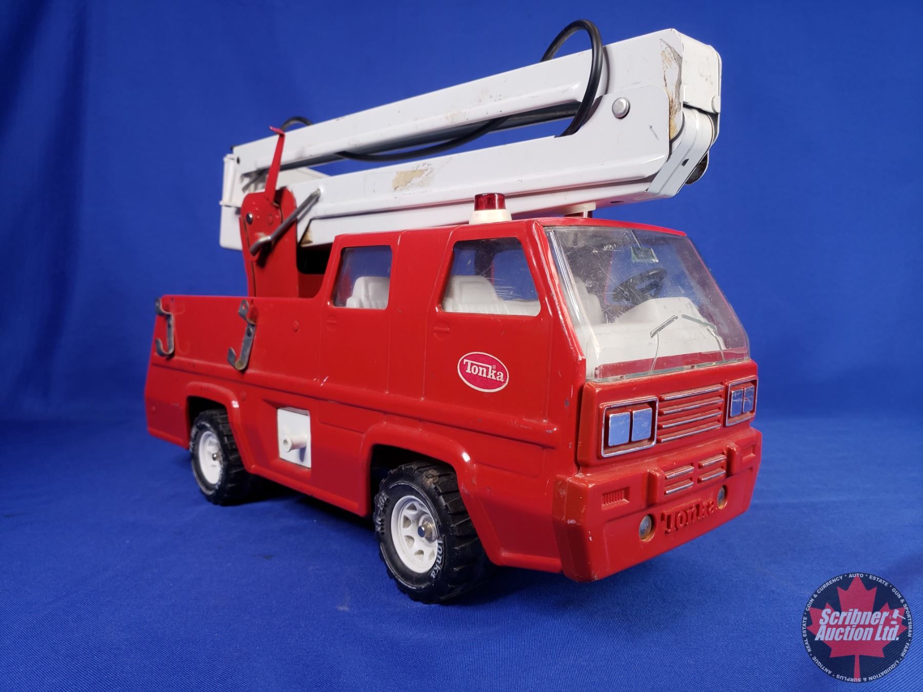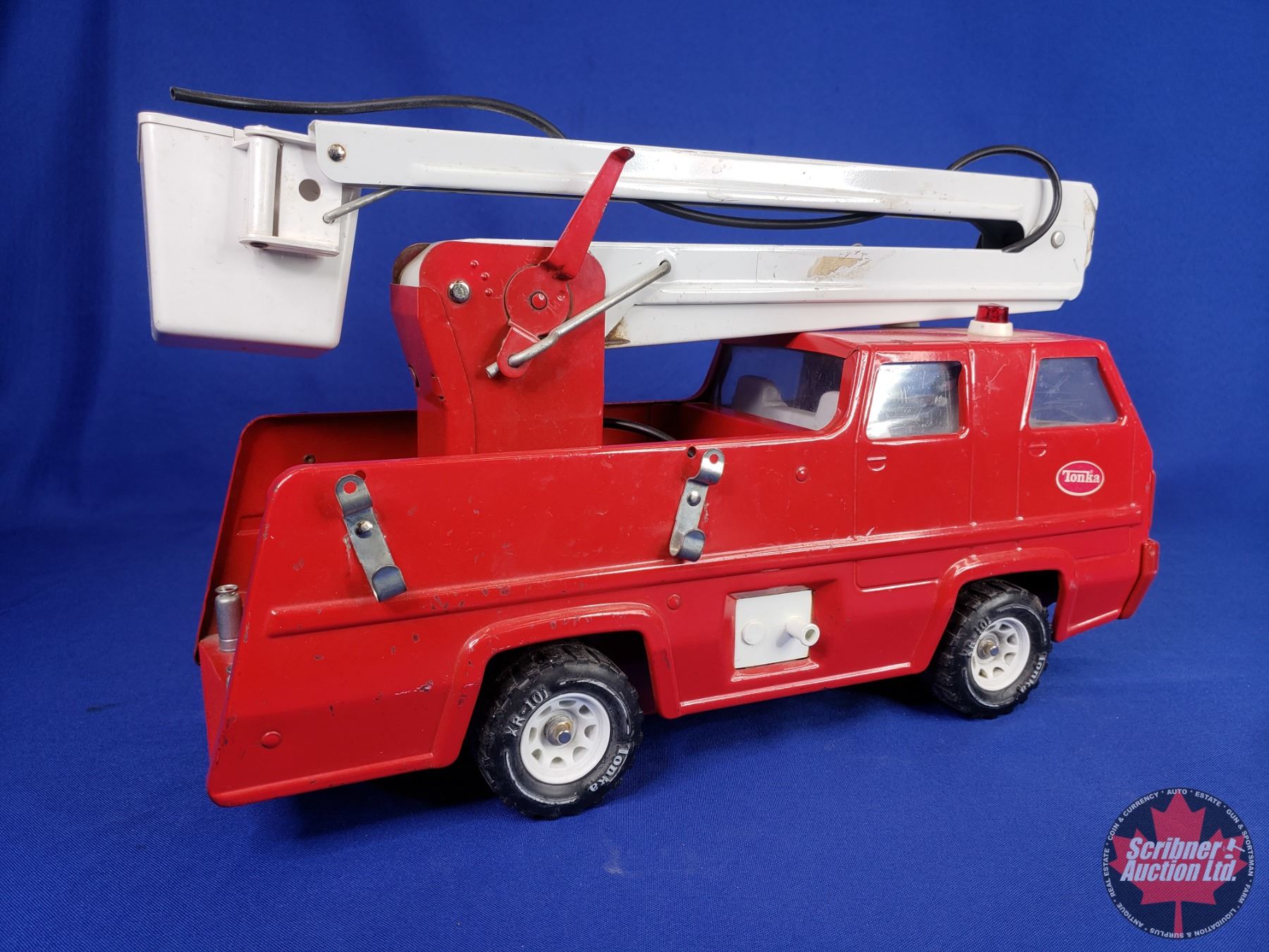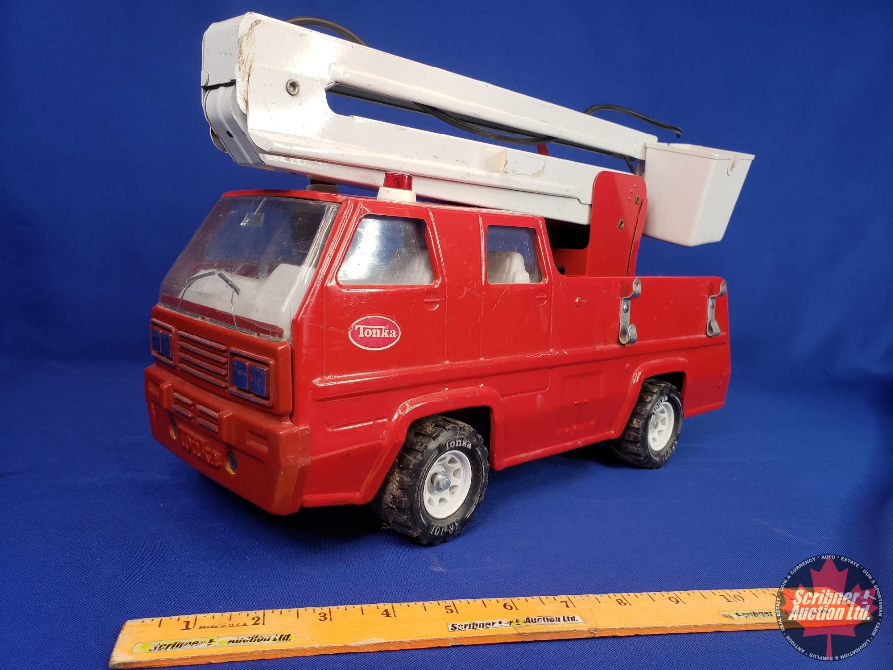 Tonka Firetruck / Manlift Basket Toy (Metal) (10"H x 6"W x 17"D) (SEE PICS!)