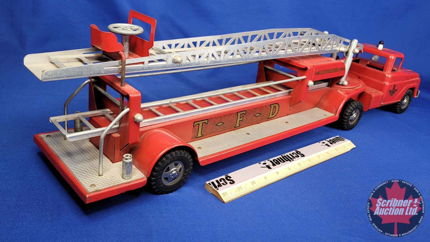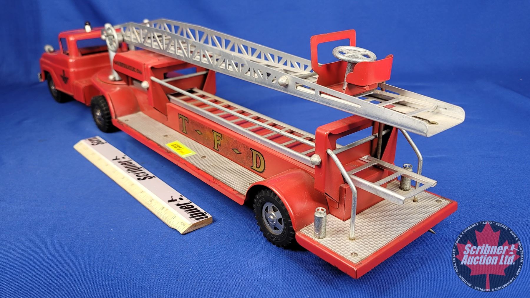 Tonka Metal Toy Fire Department Ladder Truck "TFD" (8"H x 6"W x 32-1/2"D) (SEE PICS!)