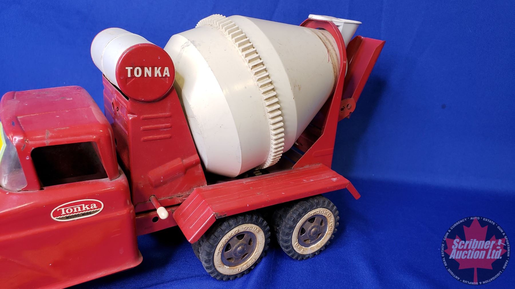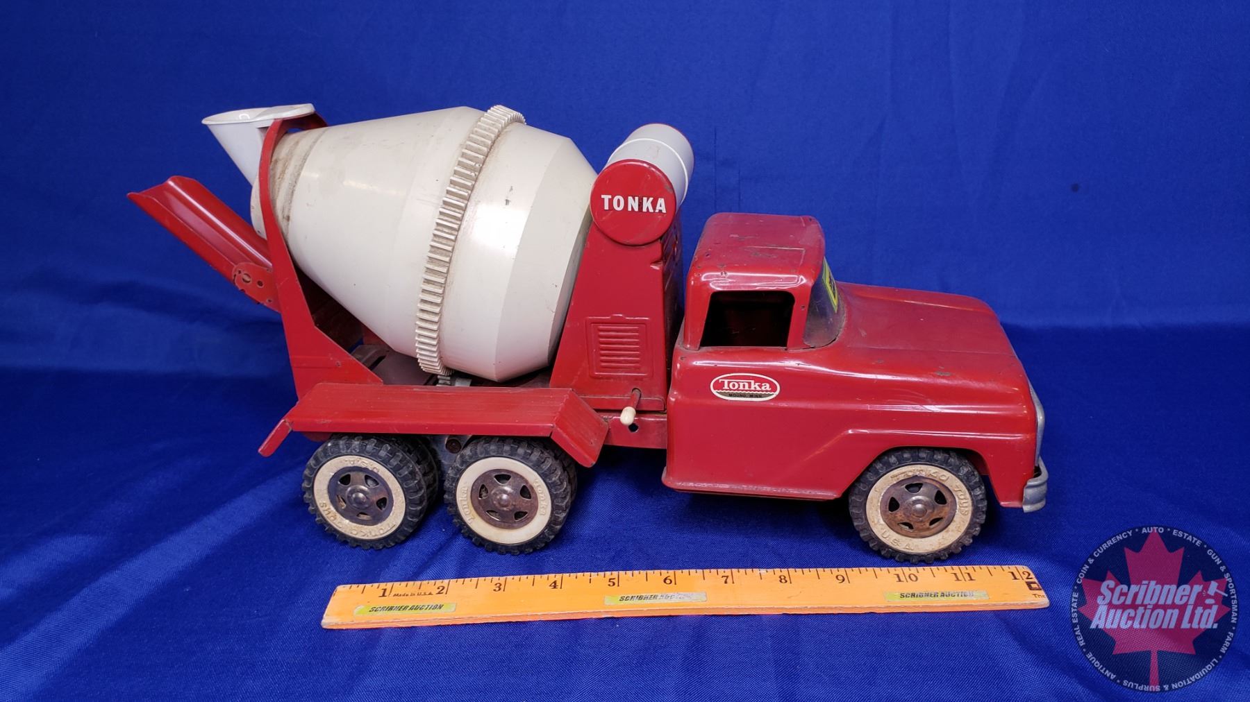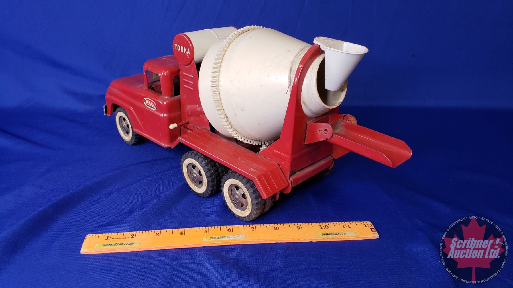 Tonka (Pressed Steel Toy) Tandem Axle Cement Mixer Truck (9"H x 6-1/4"W x 14-1/2"D) (SEE PICS!)