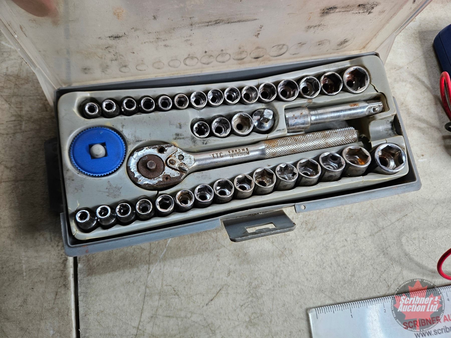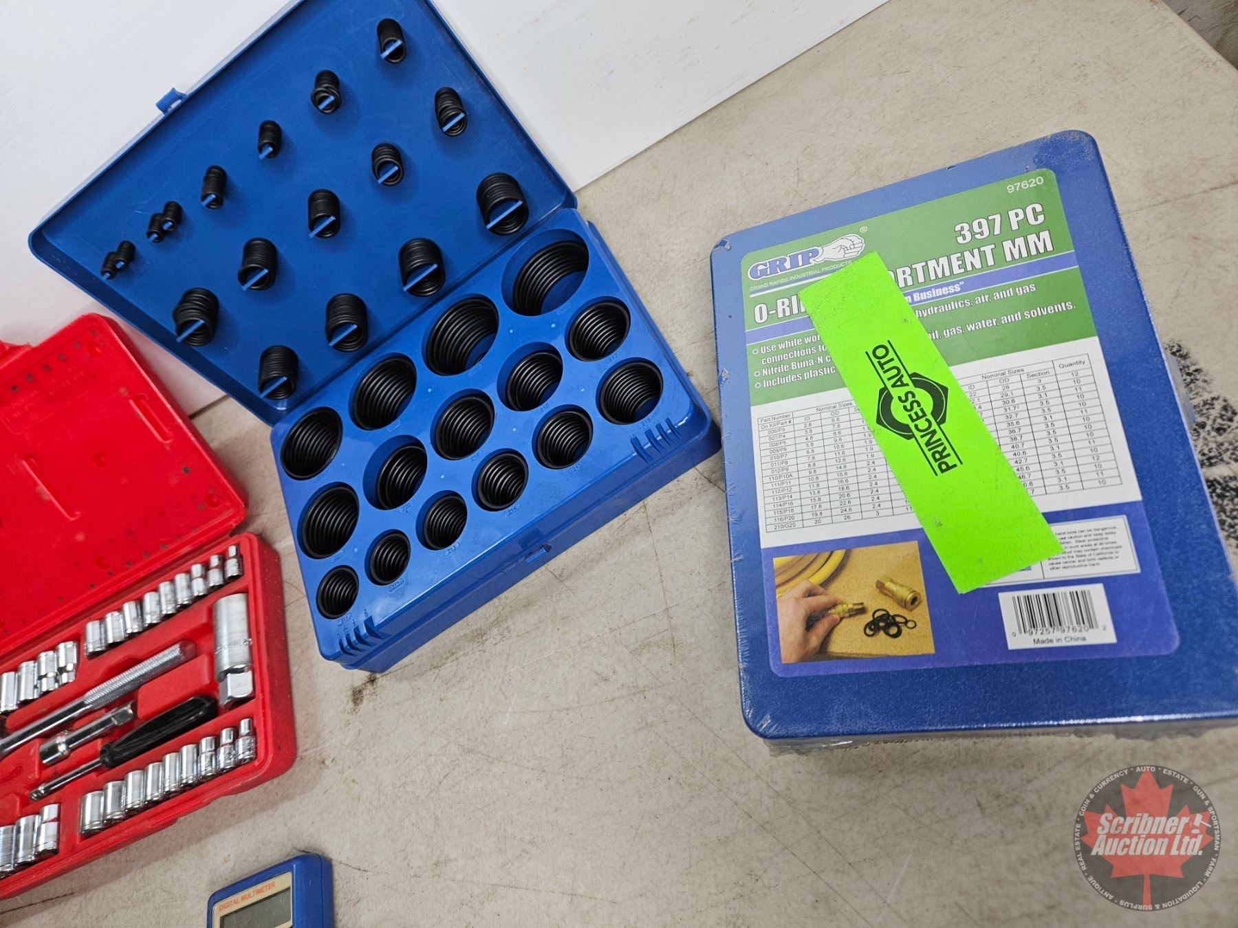 Tool Grouping/Combo : Socket Sets 3/8" & 1/4" Drive (2) ; Digital Multi-Meter; Stove Bolt Kit ; O-Ring Assortments (2)