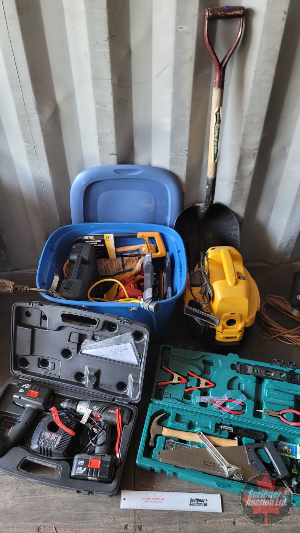 Tool Grouping : Dewalt Wet/Dry Vac; Cordless Drills; T-Handle Allen Keys; Wrenches; Socket Set; etc
