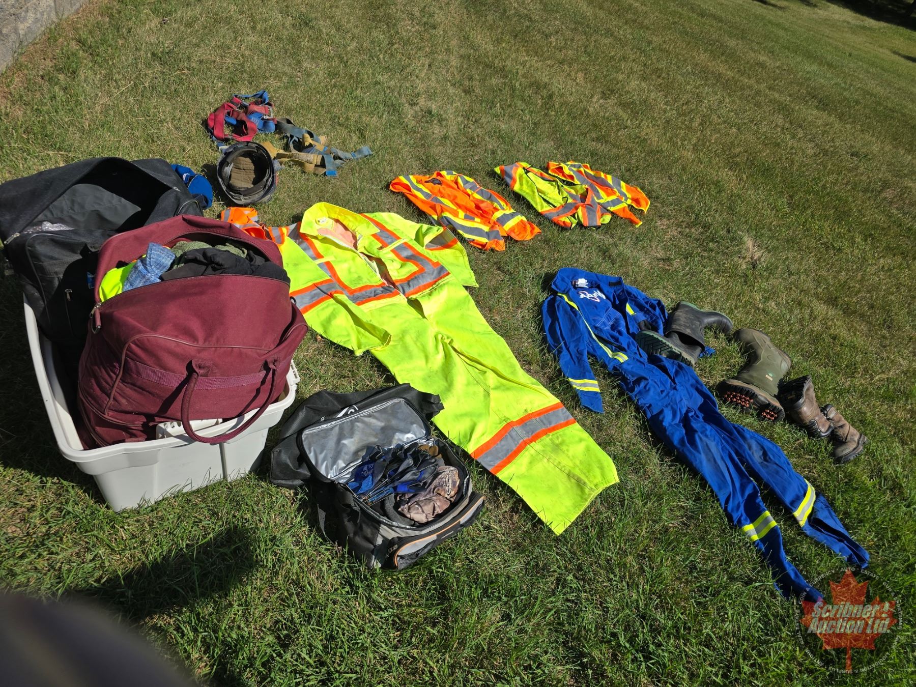 Tote Lot of Safety Gear (Large Variety) : Coveralls, Vests, Boots (Size 6)
