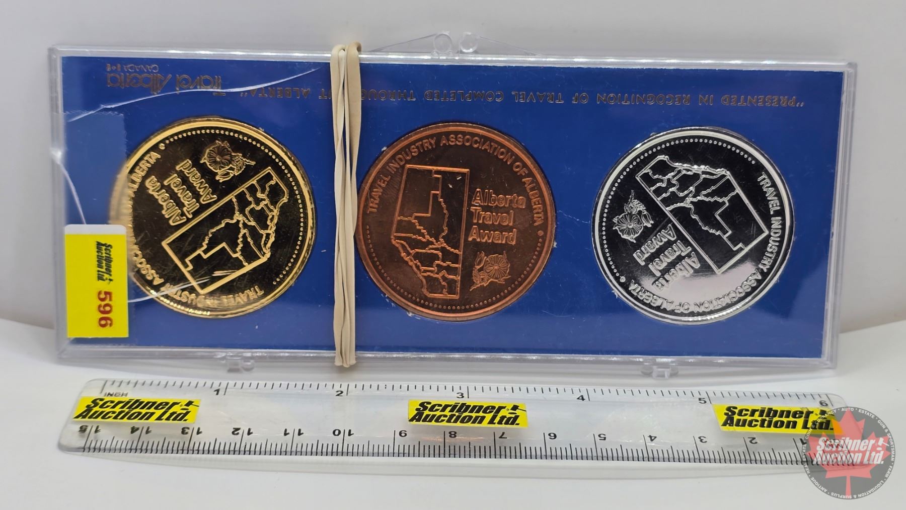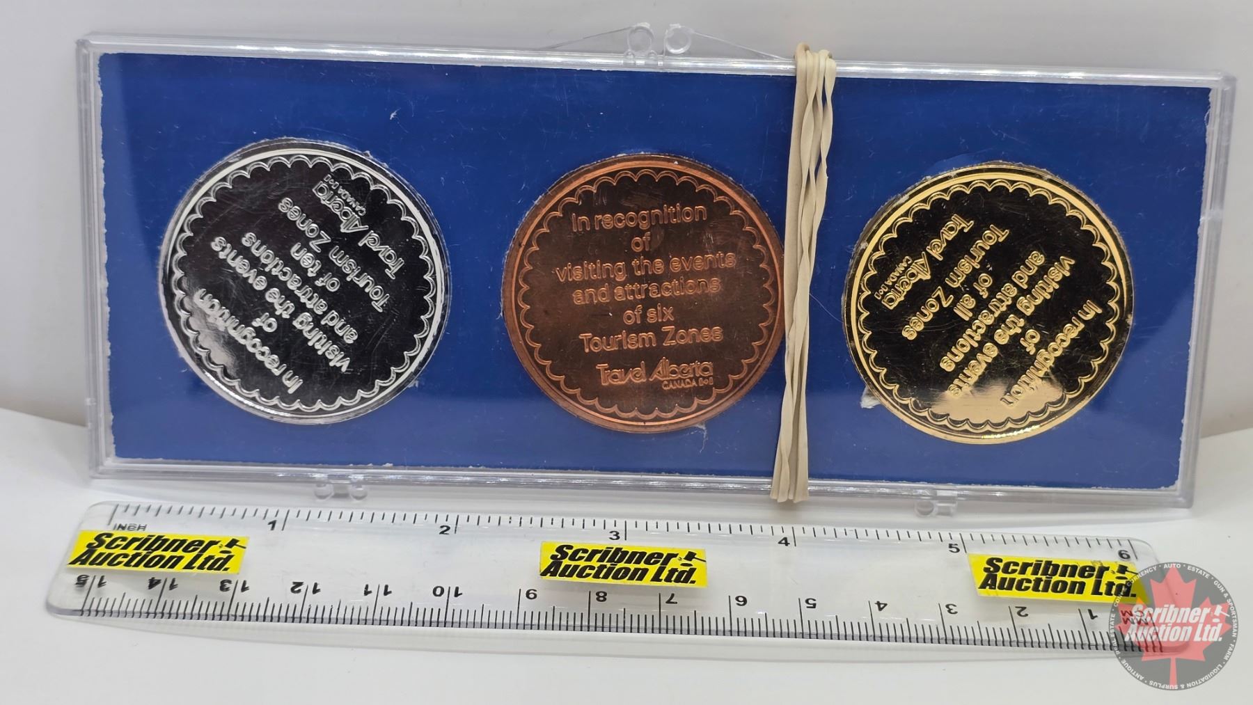 Travel Alberta: Award Medallion Set (Note: Case Damaged) (SEE PICS!) (Listing & Descriptions are a GUIDE ONLY and are subject to changes, errors, additions or deletions. Please use the provided pictures to satisfy yourself to the Condition and/or Grades. Please Read & Understand All Terms & Conditions for this Auction Sale.)