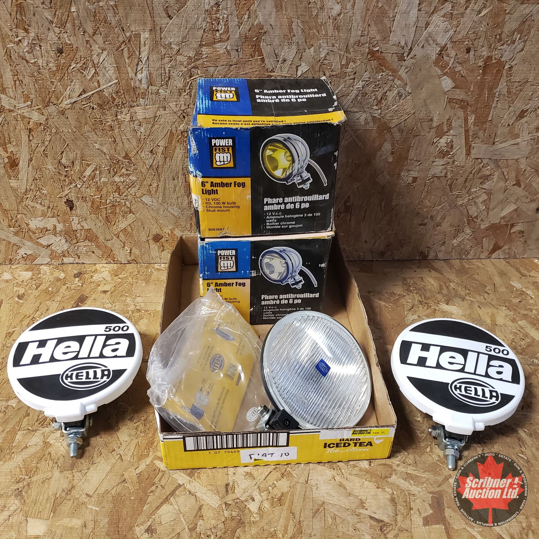 Tray Lot: 3 Hella Lights & 2 Amber Fog Lights 6"