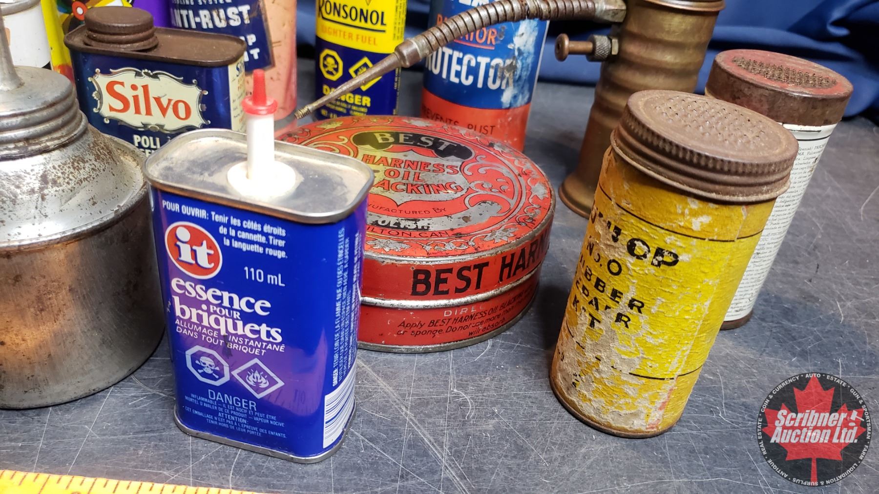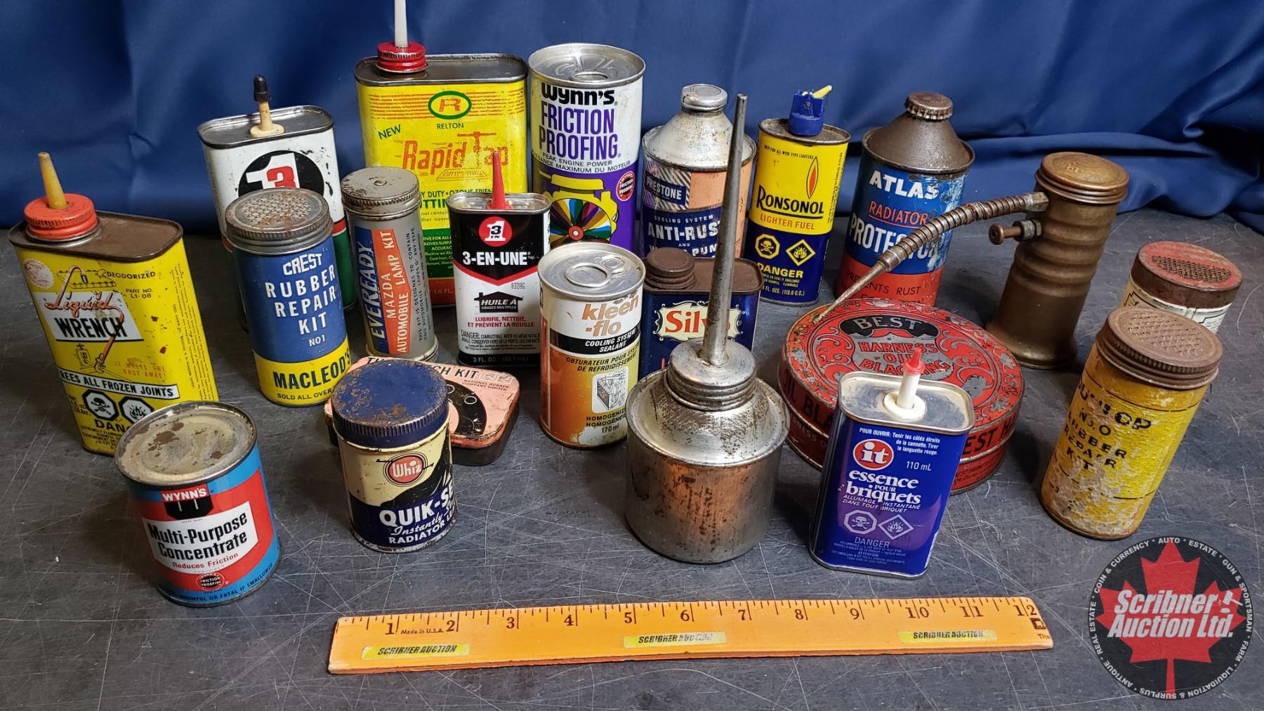 Tray Lot: Assorted Shop & Household Tins (Incl: Tire Repair Kits) (See Pics!)