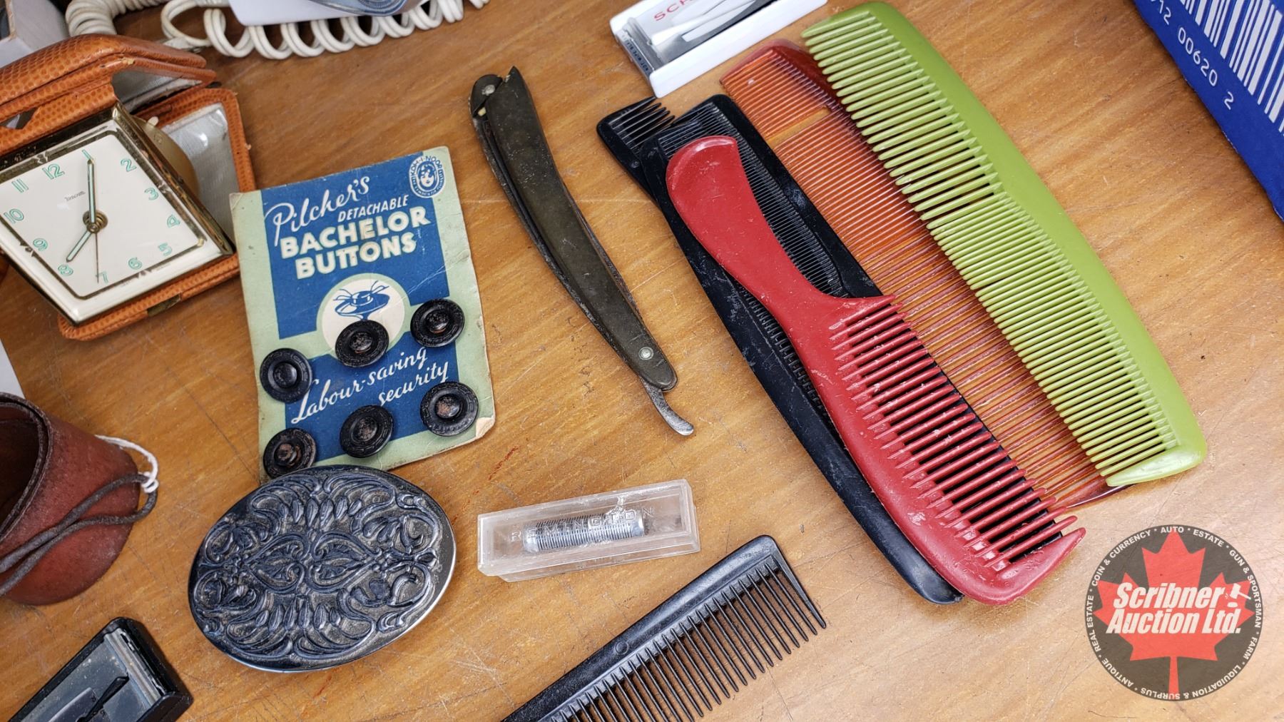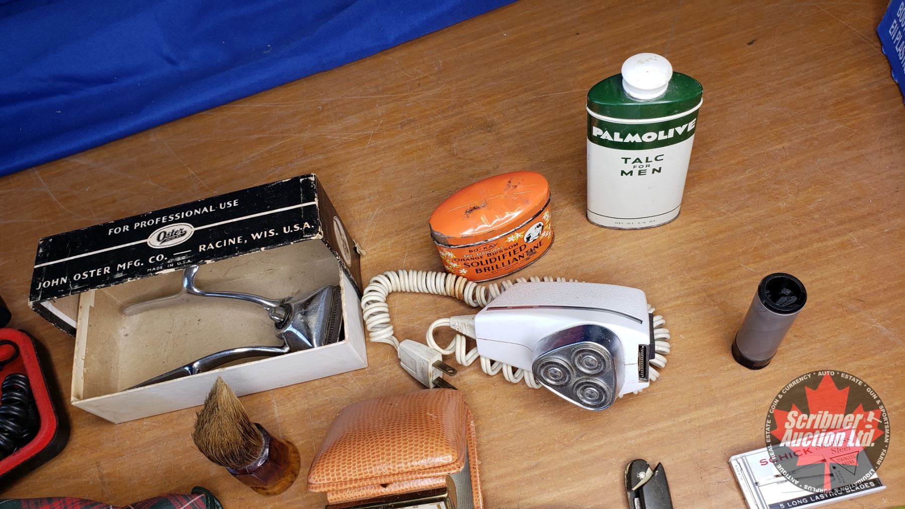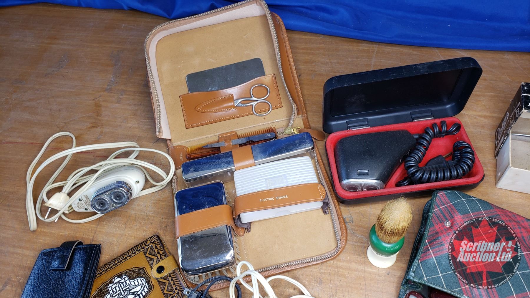 Tray Lot - Barber Items (Electric Shavers, Clippers, Brush, Combs, Razor Strop, Wallets, Belt Buckle, etc) See Pics