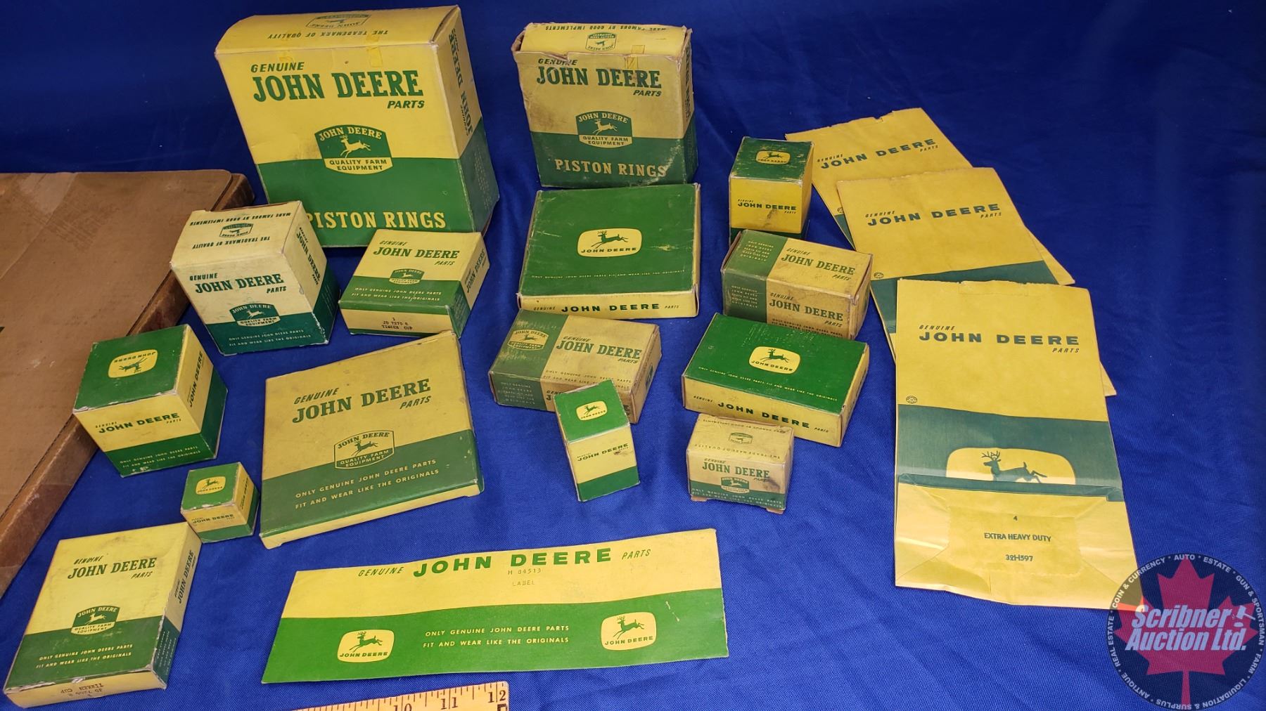 Tray Lot: Collection of John Deere, IH & Cockshutt Parts Boxes & Parts Envelopes (1950's Logo's) (See Pics!)