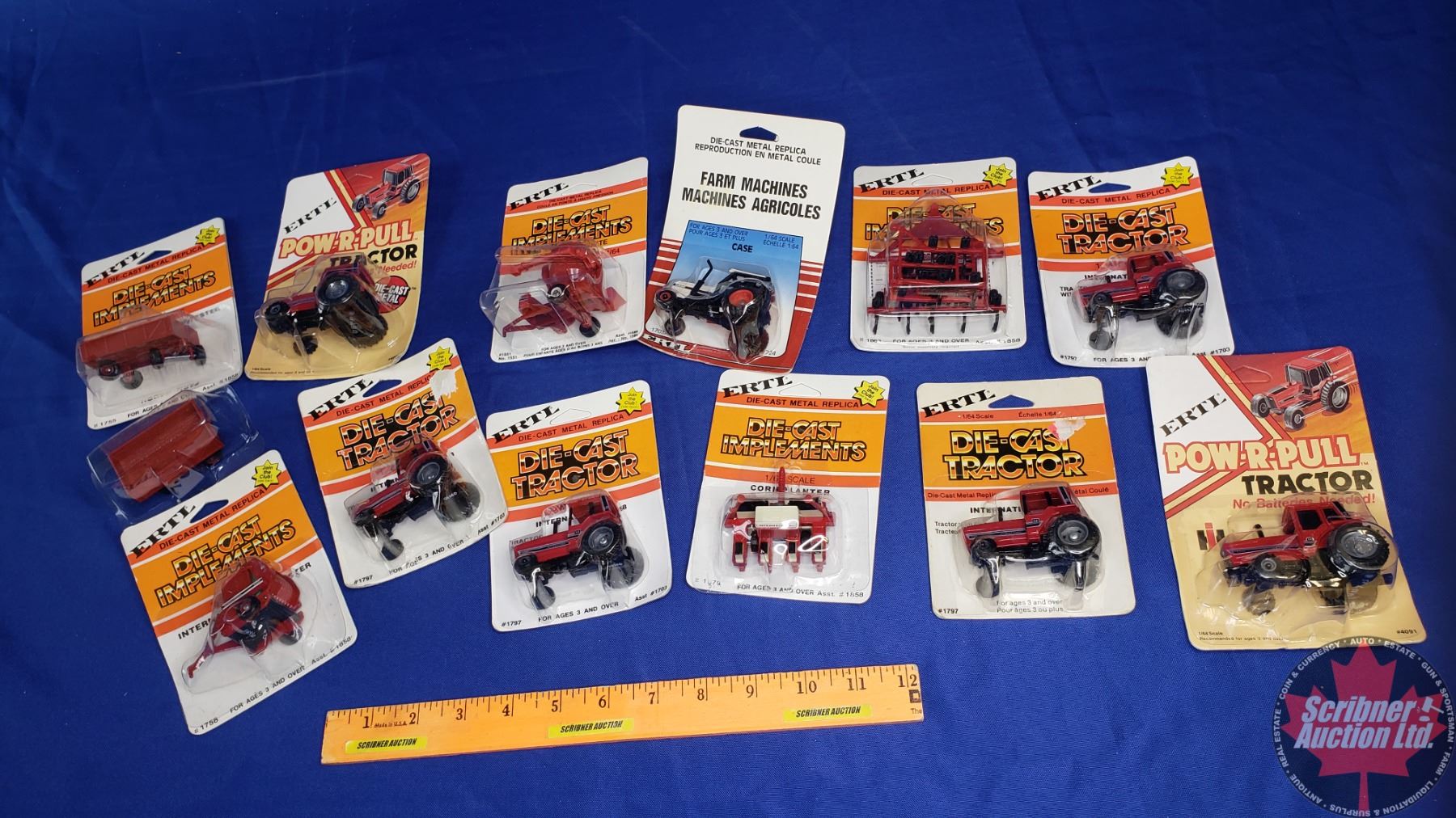 Tray Lot - ERTL Die-Cast Tractors and Implements (12) (Scale: 1/64)