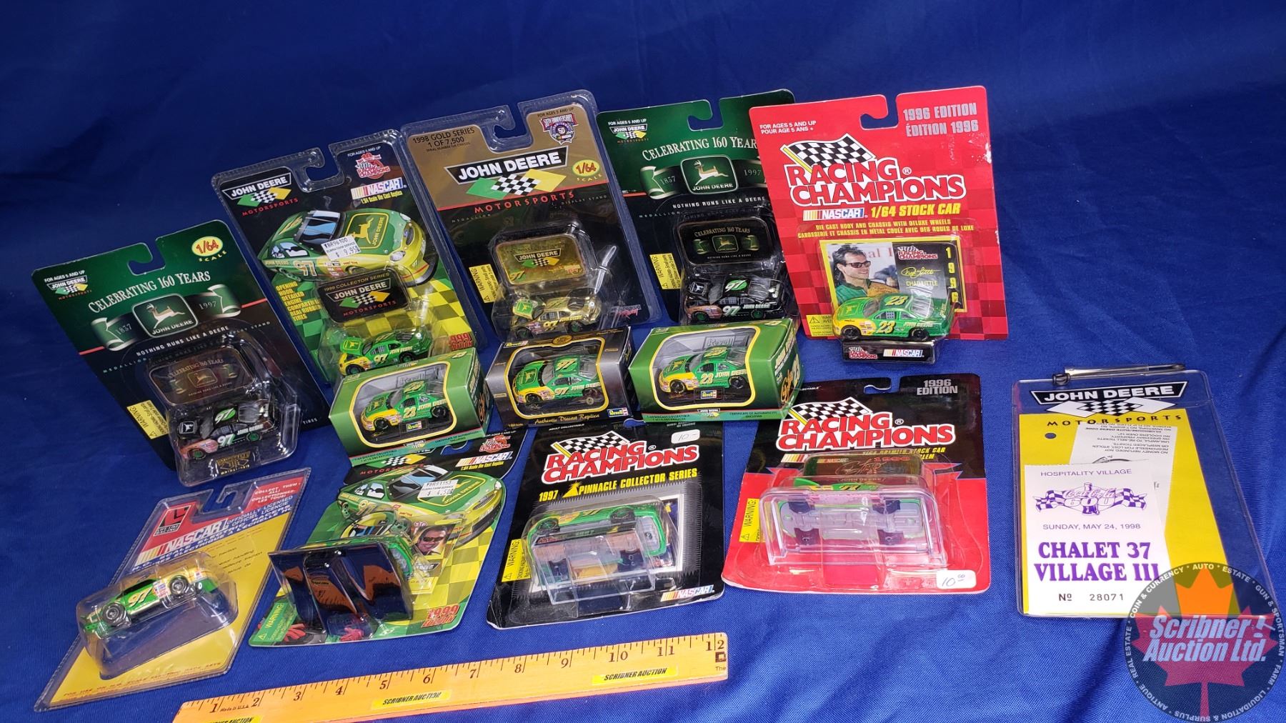 Tray Lot: John Deere Nascar Race Cars & John Deere Motorsports Coca-Cola 600 Charlotte Motor Speedway 1998 Pass (12 Pkgs) (Scale: 1/64)