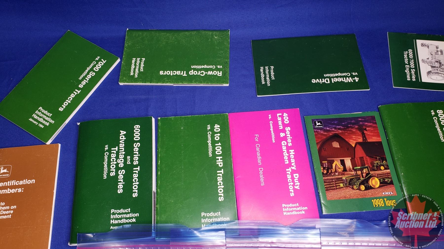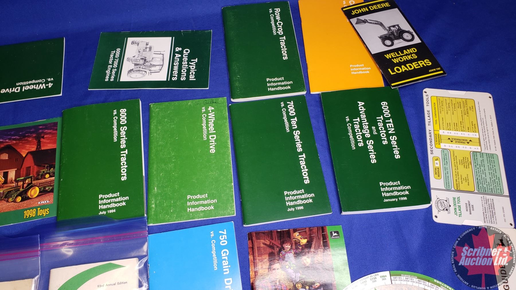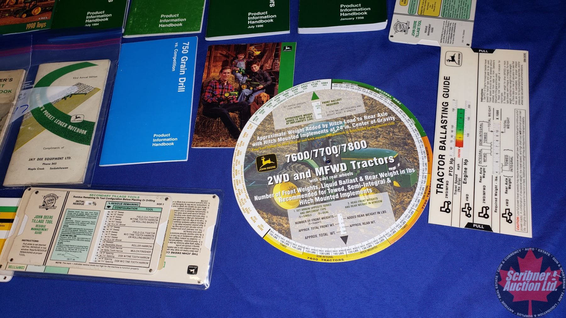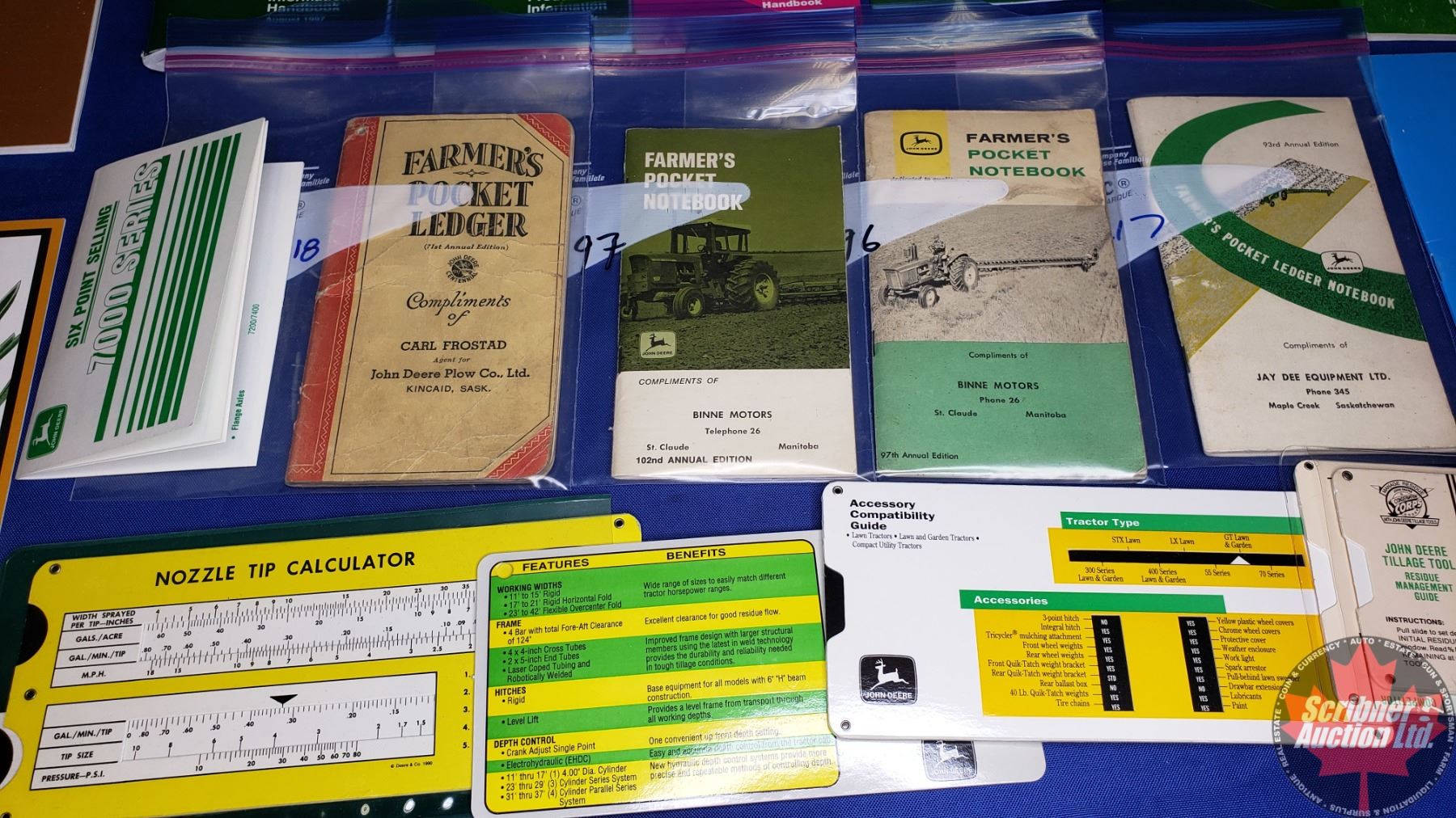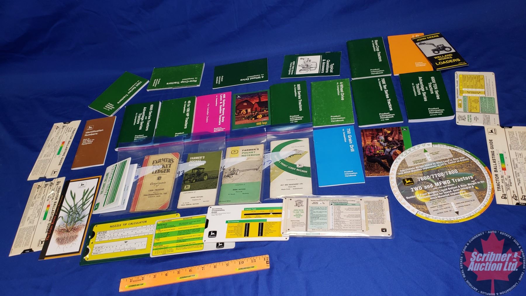 Tray Lot: John Deere Theme (Product Info Handbooks, Q& A Booklets, Vintage Farmer's Pocket Ledger Notebooks - including 1937 71st Edition, 93rd Edition, 97th Edition & 102nd Edition, etc) See Pics!