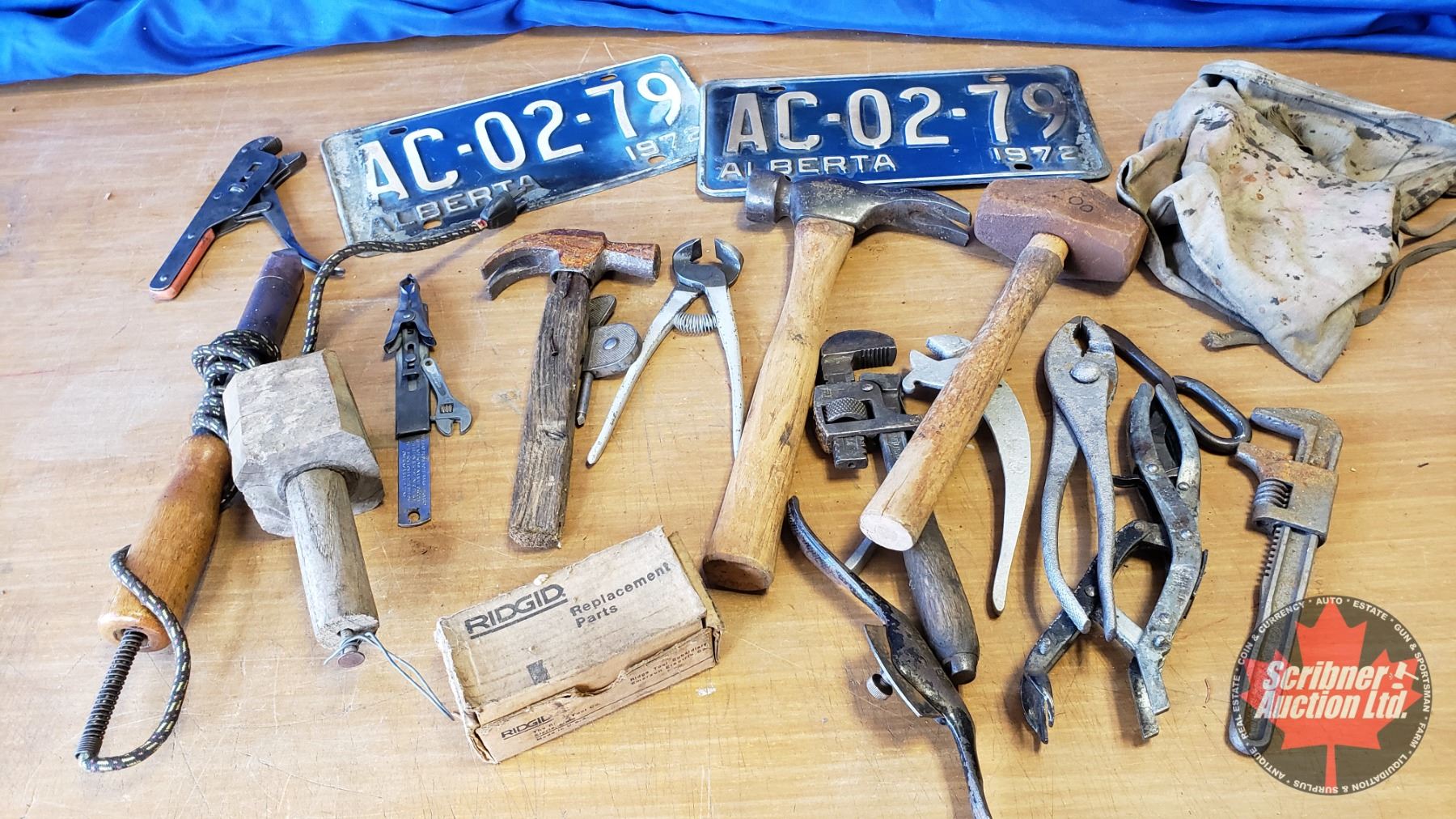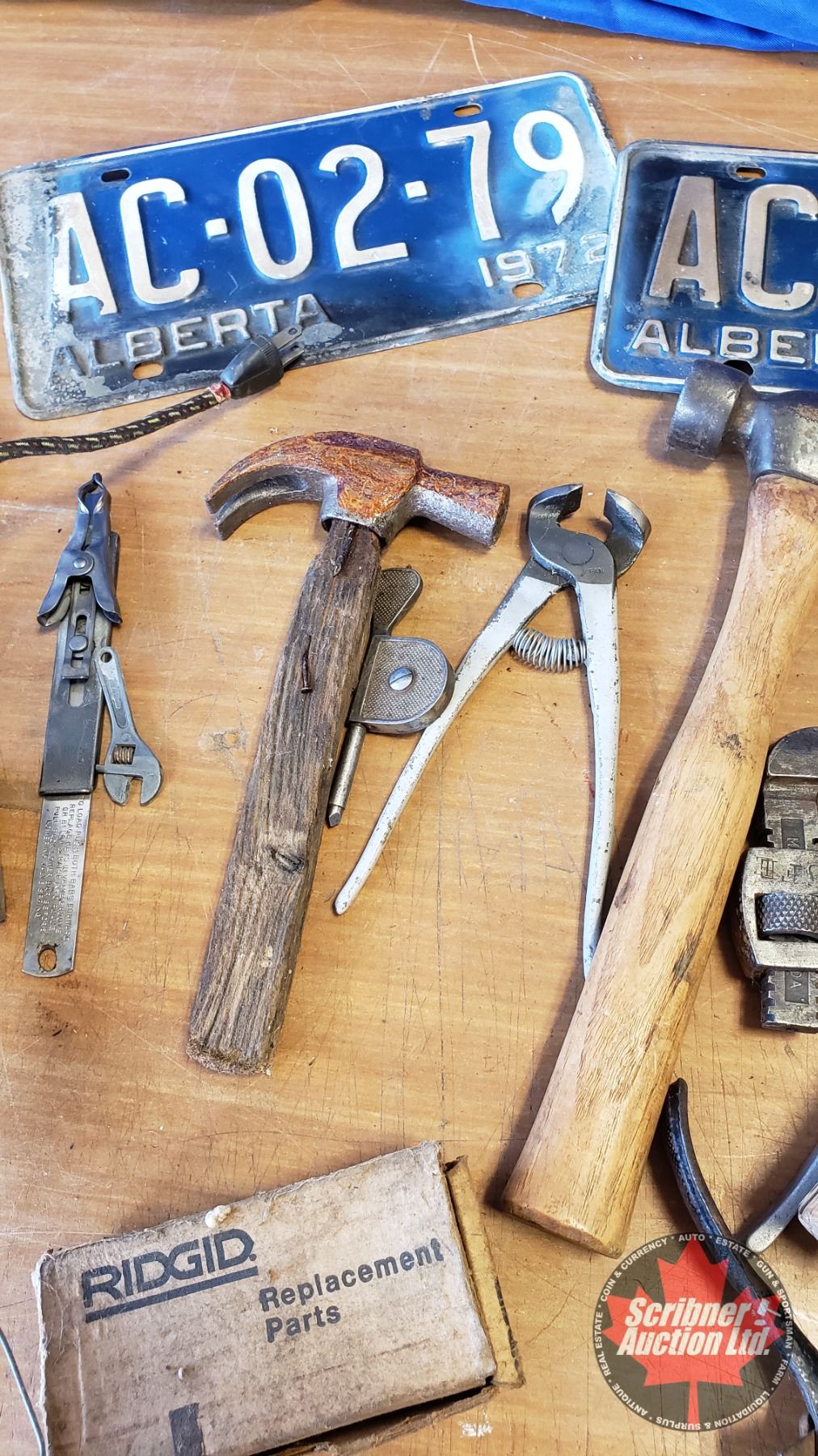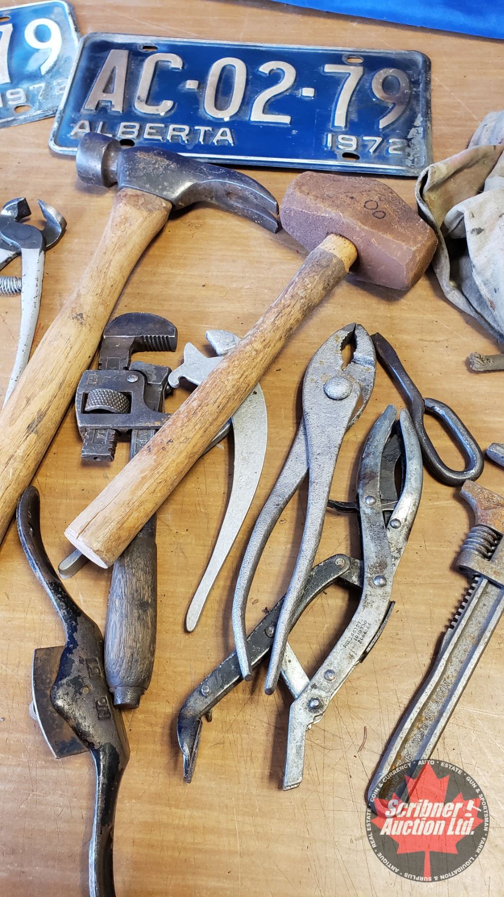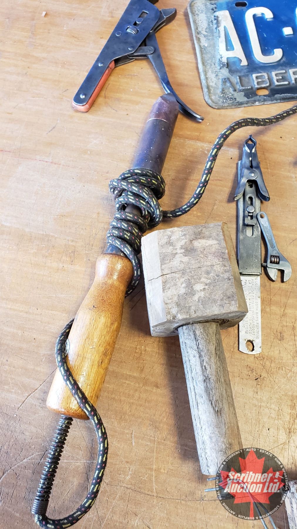 Tray Lot - Tools (Pipe Threader Dies, Hammers, Valve Keeper Spring Tool, Pliers, Lic Plates, etc) (See Pics!)
