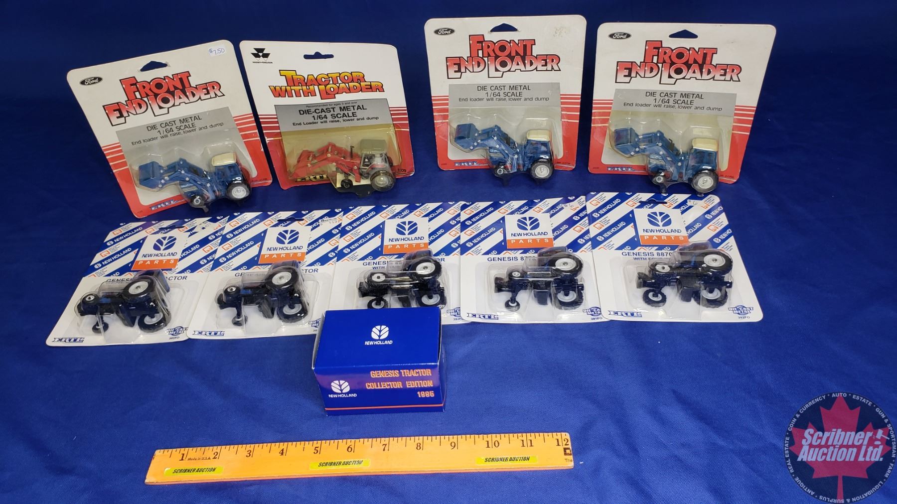 Tray Lot: Tractor Variety (Ford Tractors & 1 Massey) (10 Pkgs) (Scale: 1/64) (See Pics)