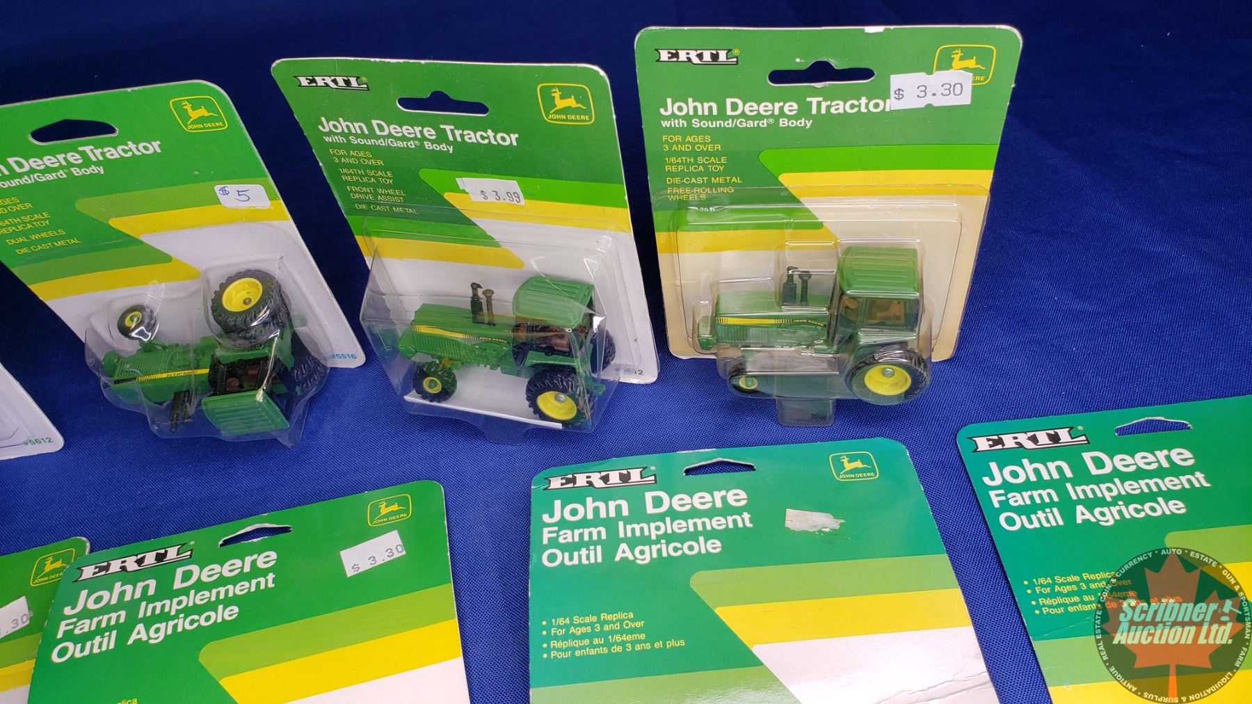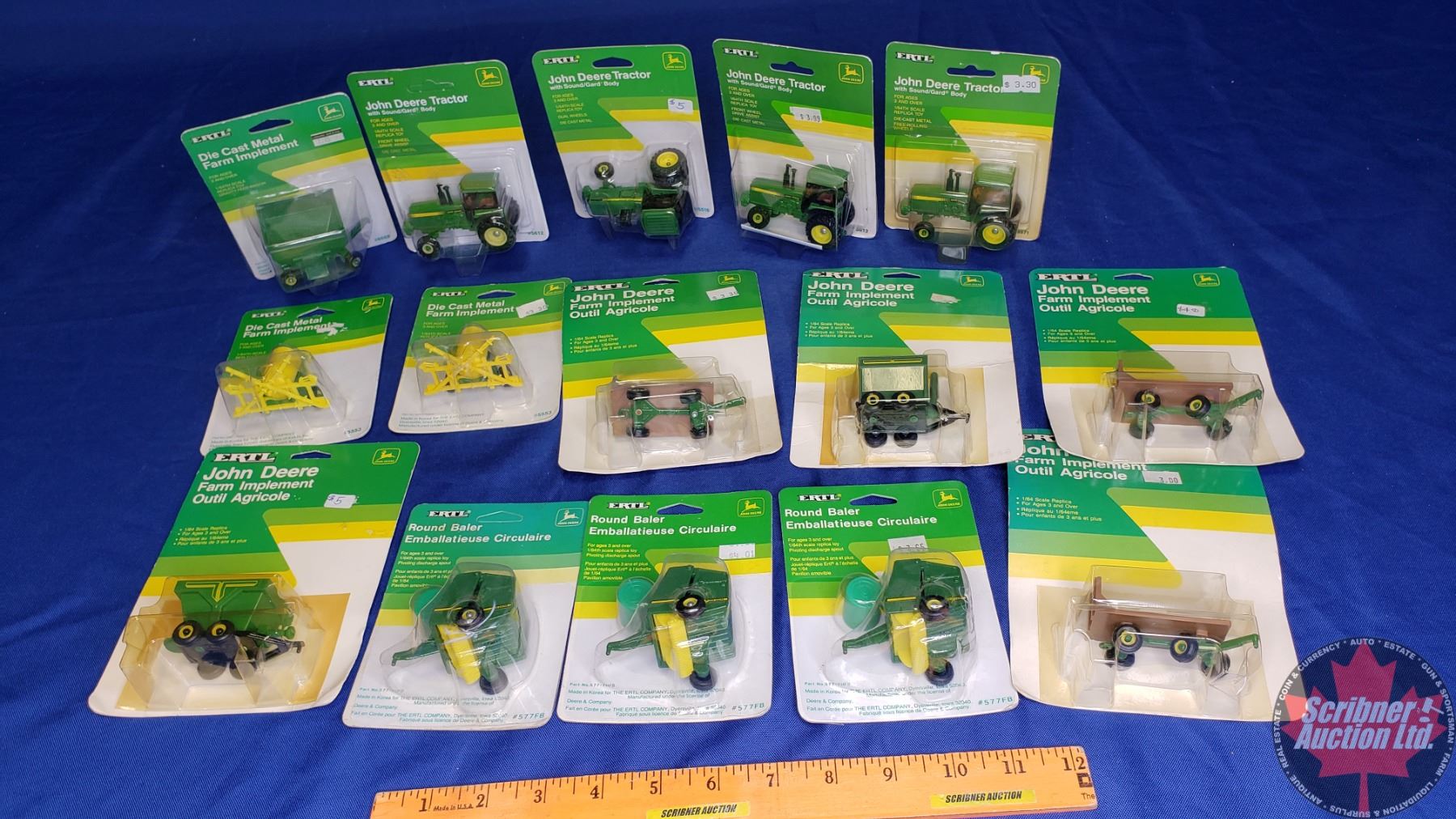 Tray Lot: Variety John Deere Tractors & Implements (15 Pkgs) (Scale: 1/64) (See Pics!)