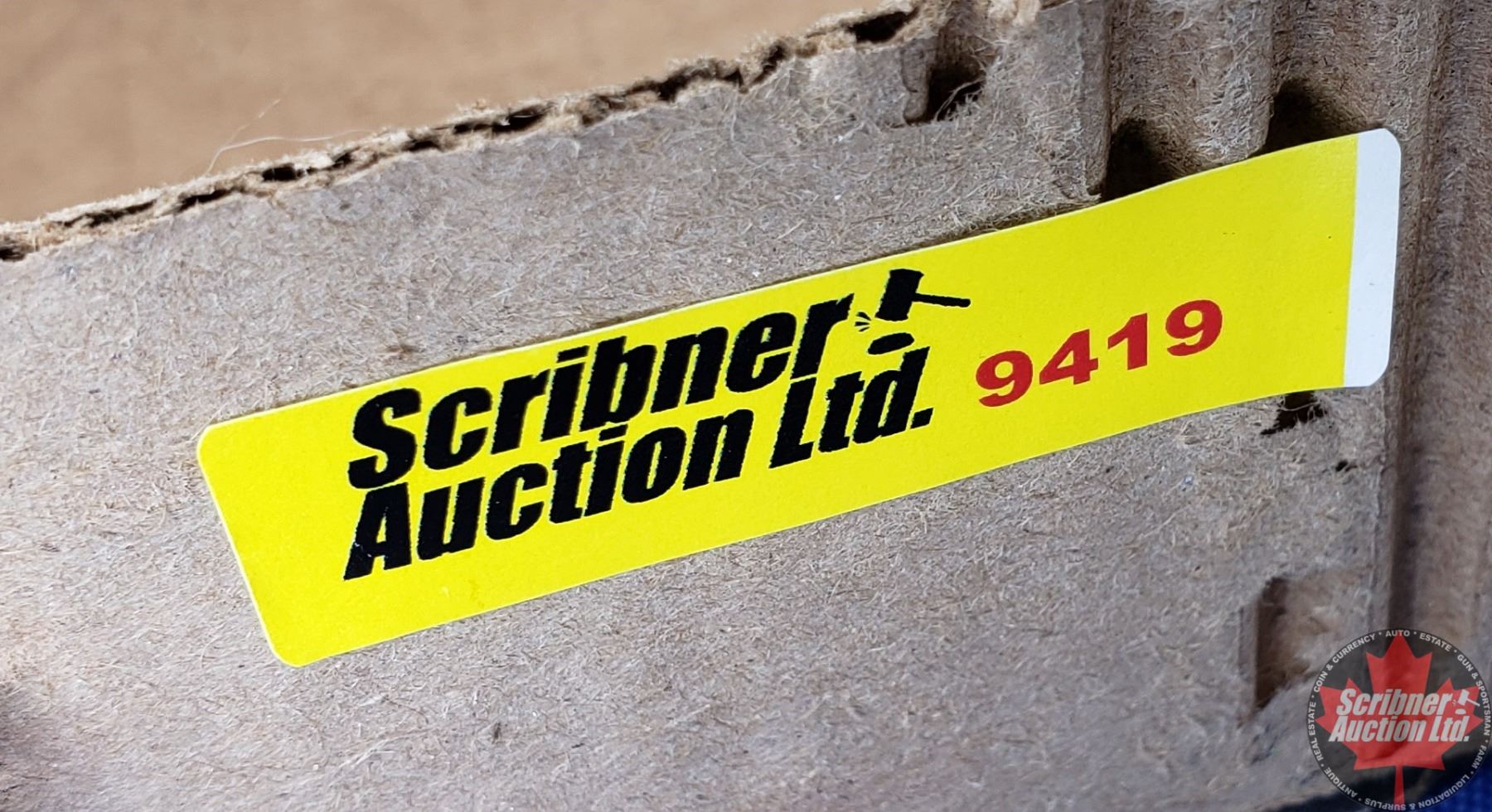 FRIDAY & SATURDAY & SUNDAY: Purchases will be packaged up after the auction and shipped via Canada Post or PUROLATOR (for dangerous goods) within 12-16 days of the 3 day Auction Sale. Please contact us via email (scribner.auction@gmail.com) or call 780-842-5666 prior to the auction if you wish to arrange alternate shipping. Shipping & Handling Charges will be charged to your credit card. All packages shipped via Canada Post come with $100 insurance. Scribner Auction Ltd. will not be responsible for any damage or breakage to any item for any reason (shipping, handling or otherwise). If you wish to arrange for Pick Up at our Wainwright, AB location, please call our office to make an appointment 780-842-5666. You MUST schedule an appointment, dropping in is not permissible at this time.