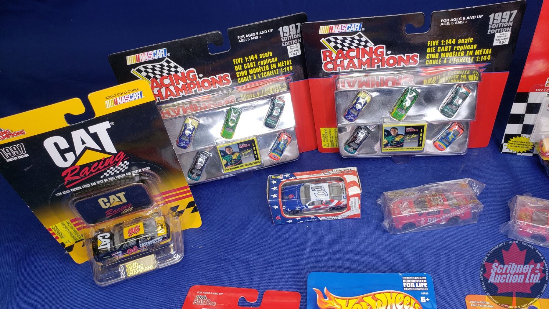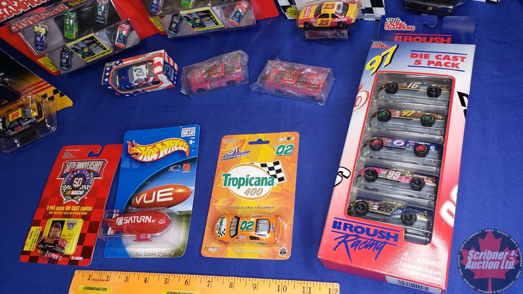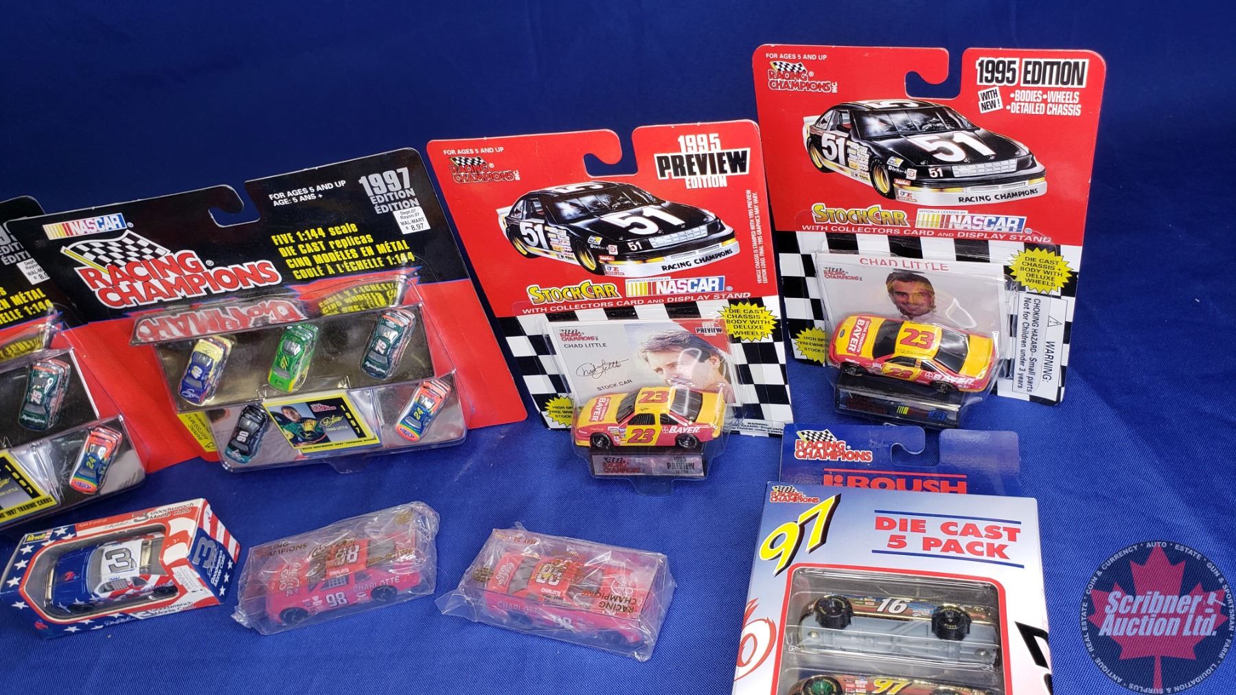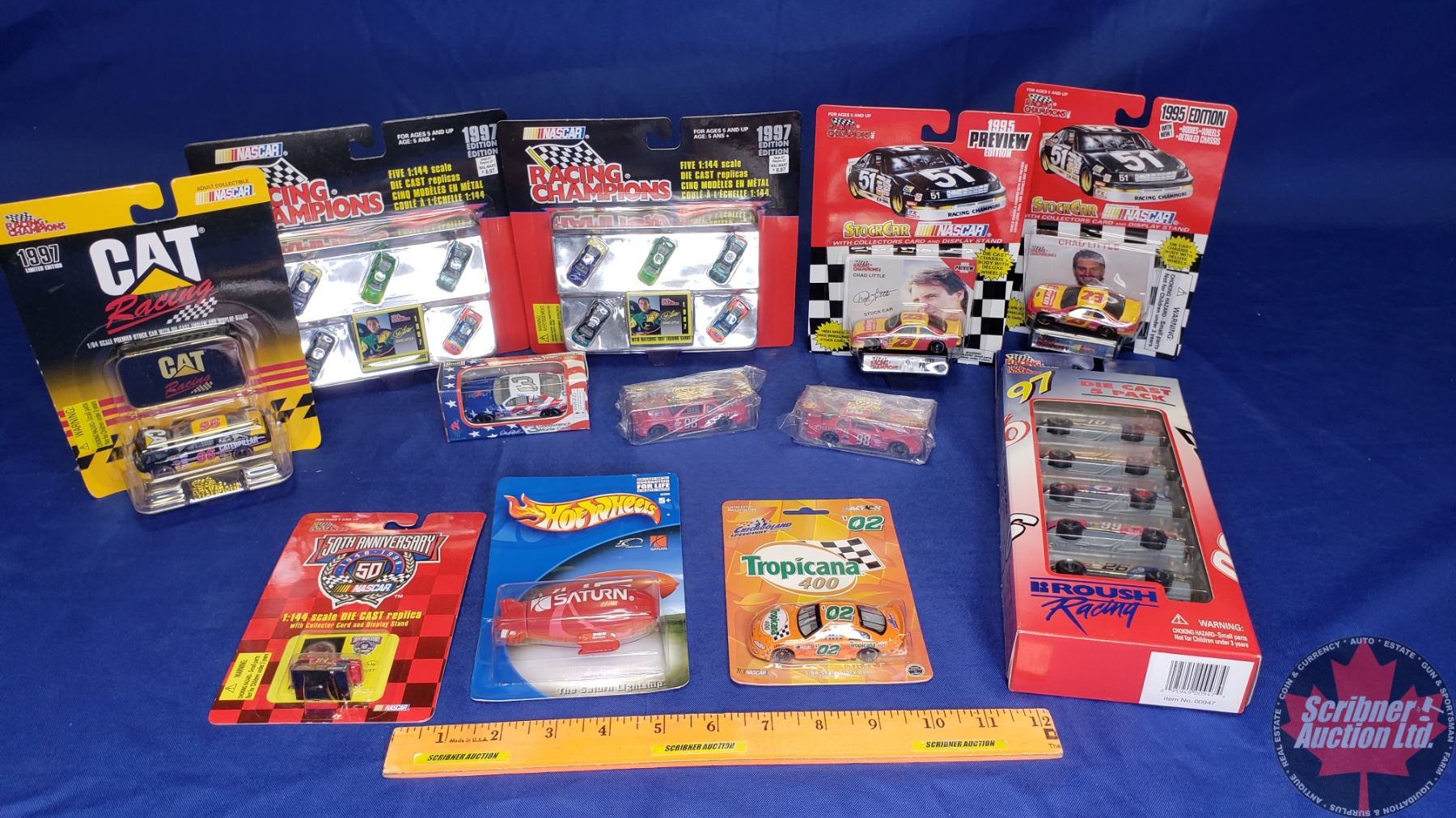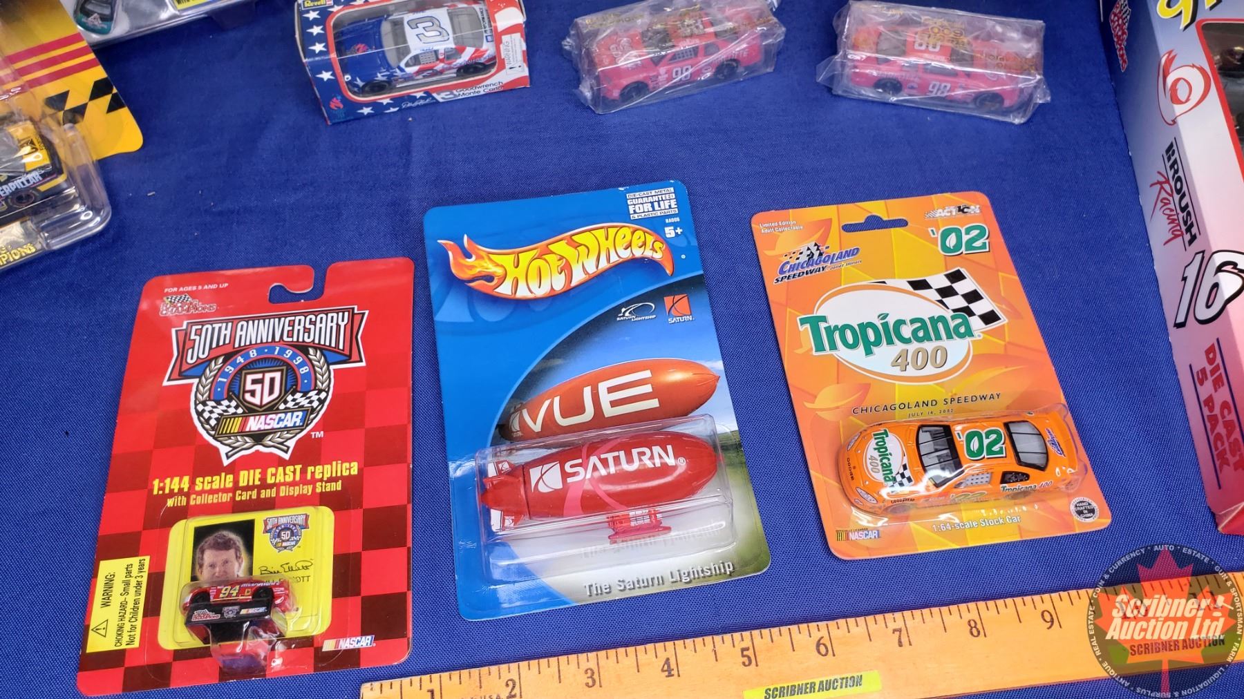 Tray Lot: Variety of Nascar Cars, Hot Wheels Blimp, Coca-Cola Racecars (Incl: Chad Little & Bill Elliot) (12 Pkgs) (Scale 1/64 & 1/144)