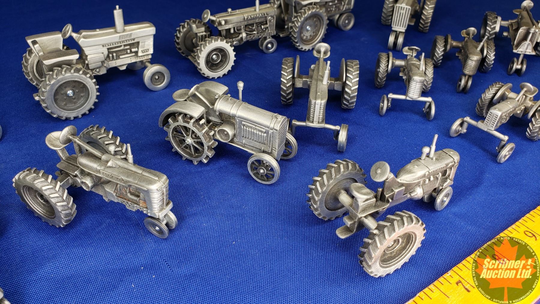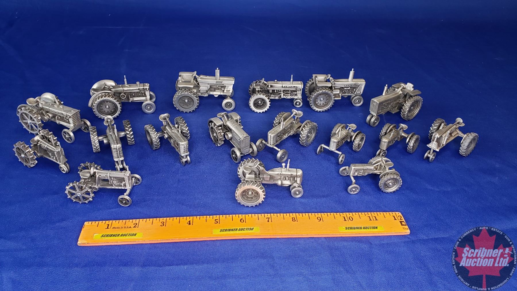 Tray Lot - Variety of Pewter Tractors (17) (See Pics)