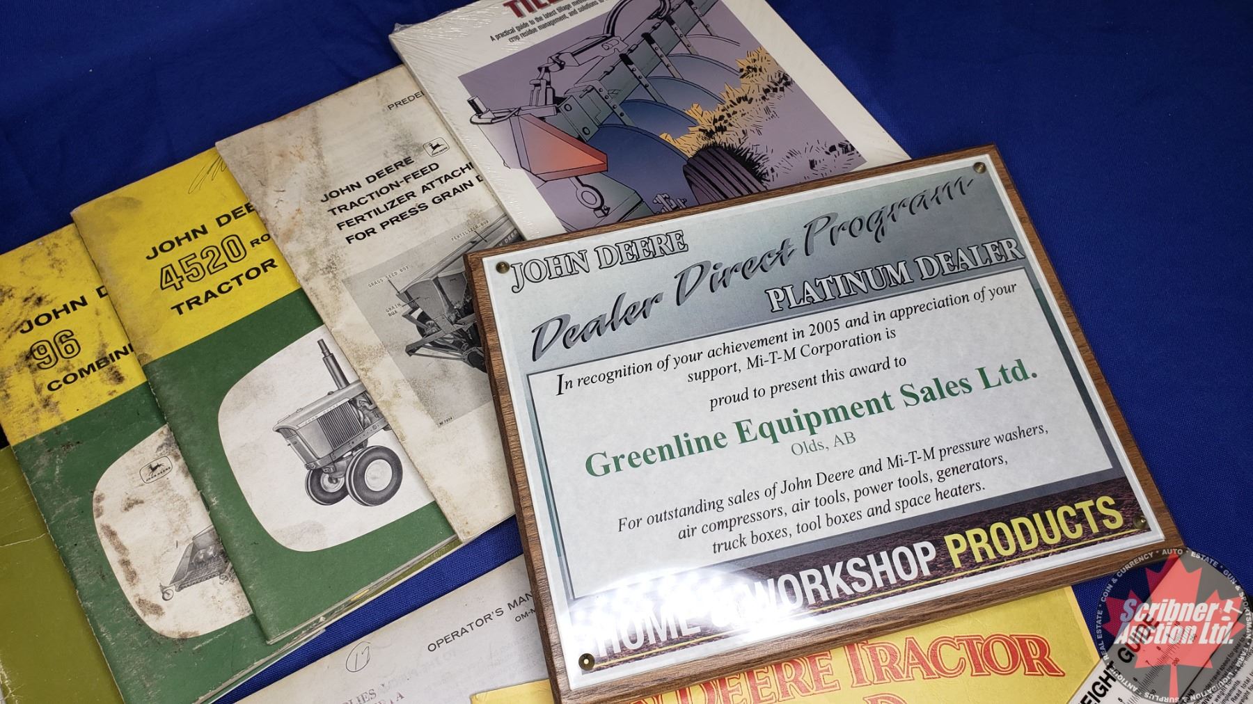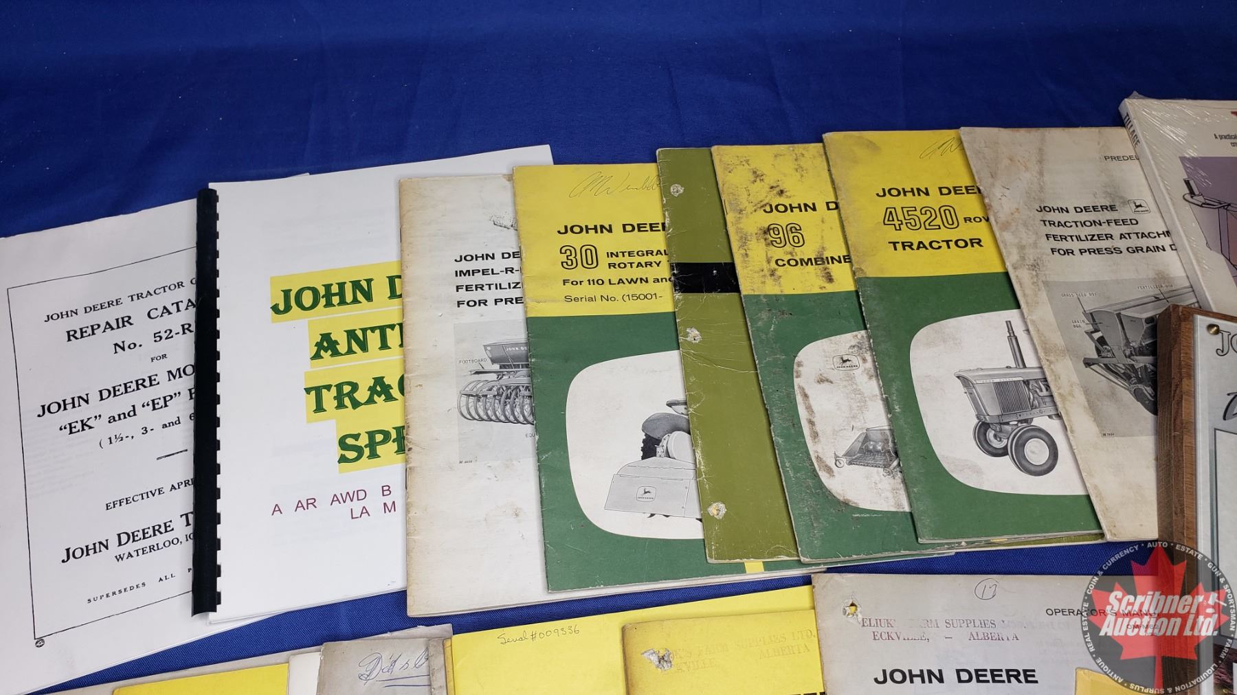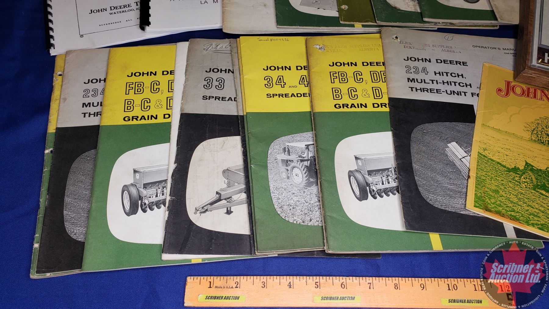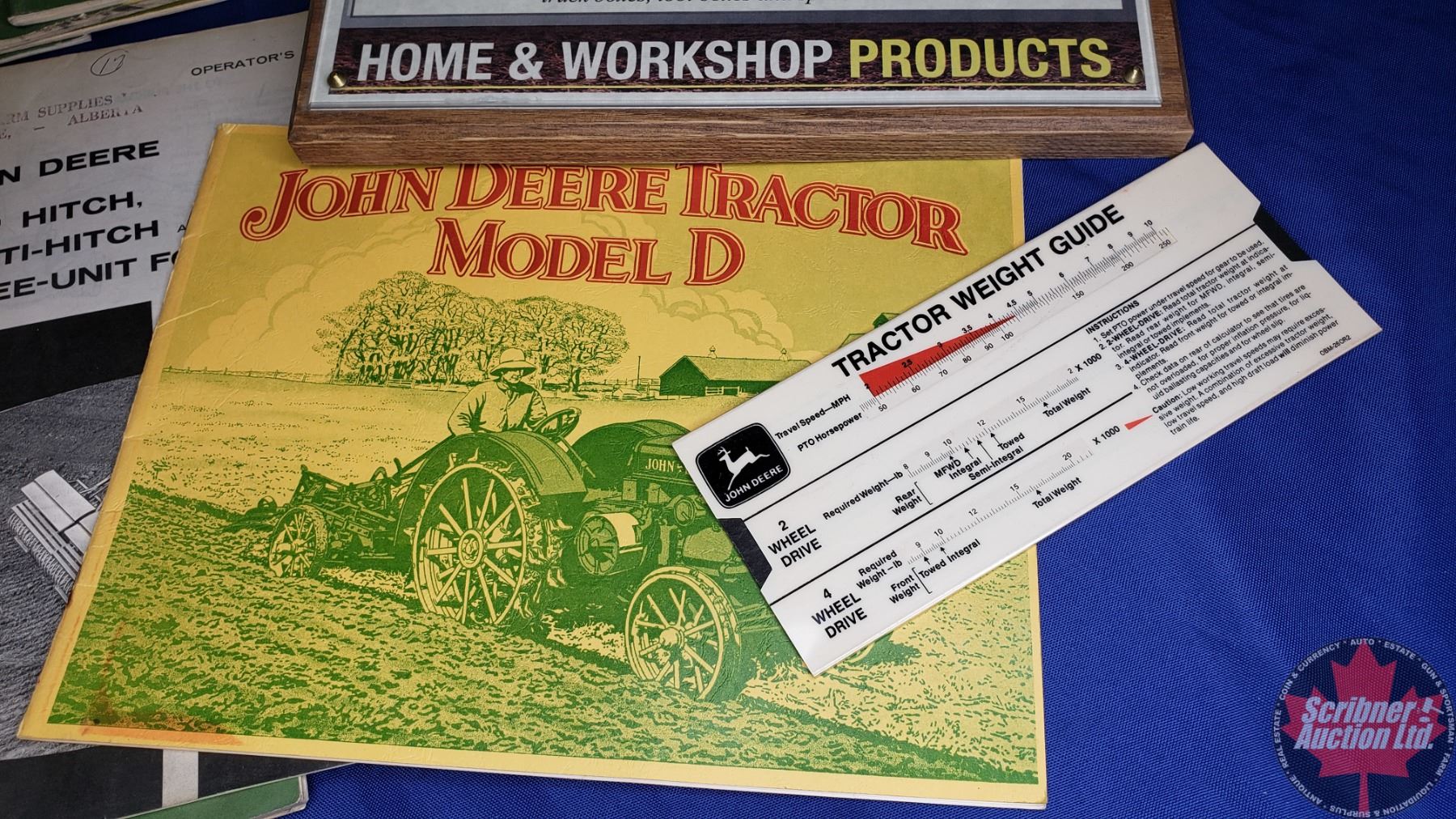 Tray Lot: Variety of Vintage John Deere Owners Manuals (Incl: John Deere D, Antique Tractor Specs, Tractor Weight Guide, Slide Rule, etc) (SEE PICS!)