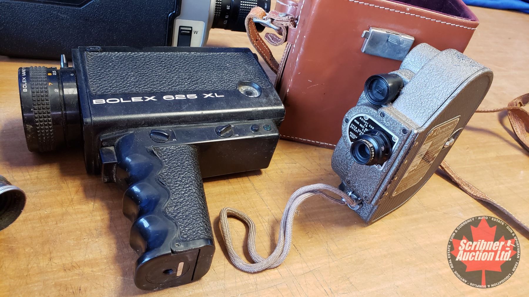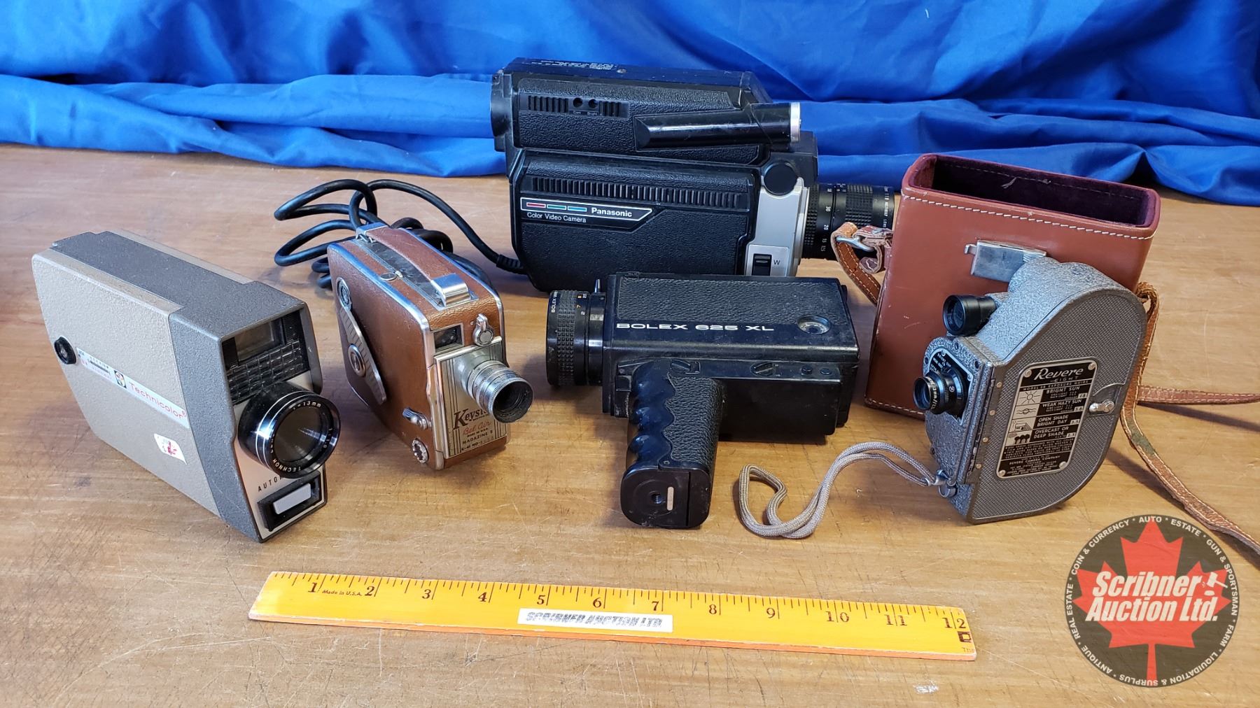 Tray Lot - Video Cameras (Solex 625XL Technicolor Automatic 8, Keystone Bel Air, Revere Eight & Panasonic Color) (See pics)