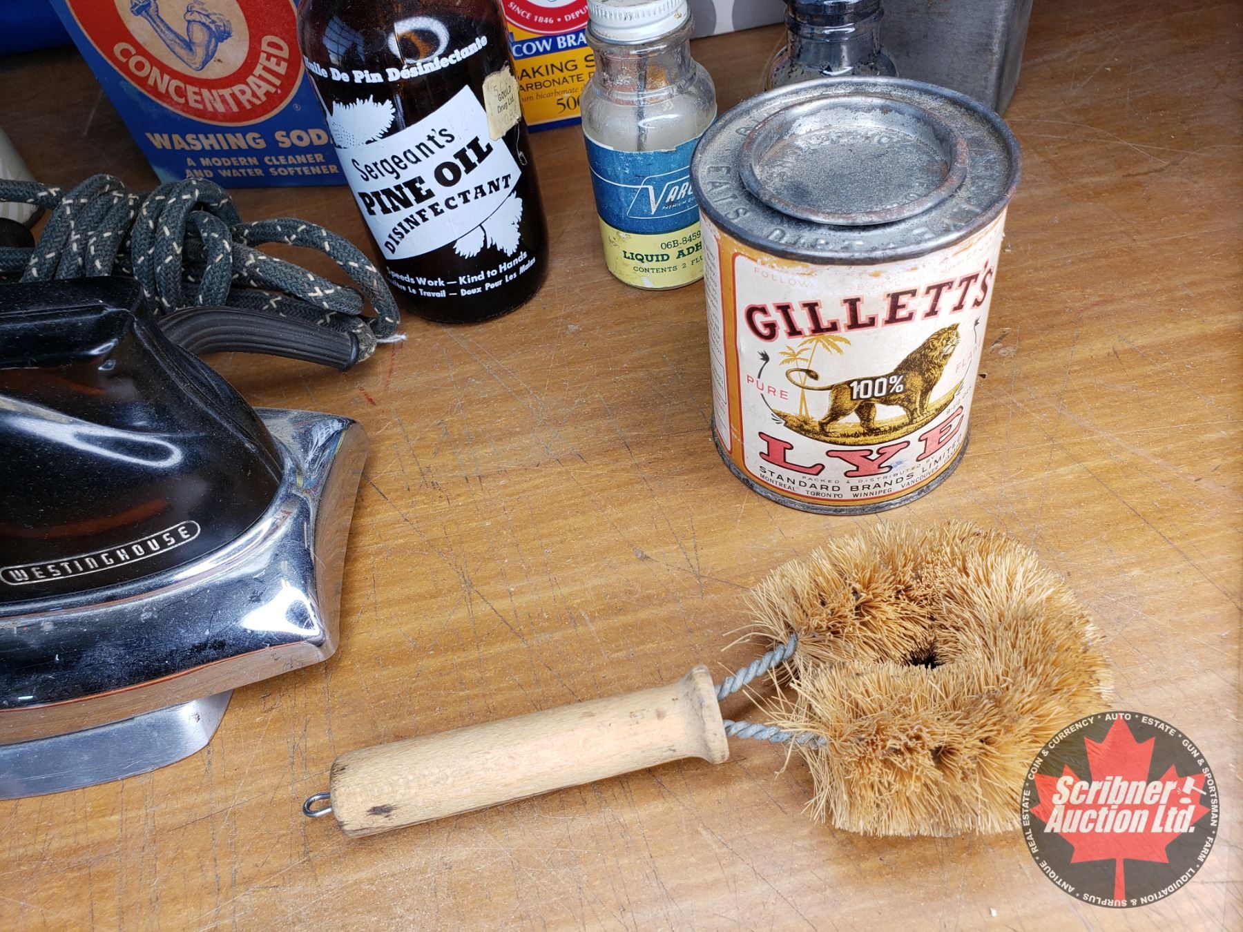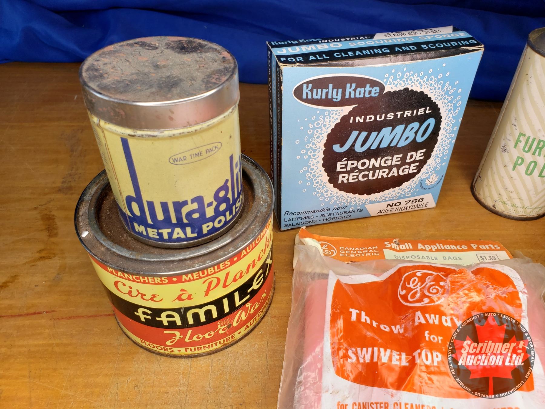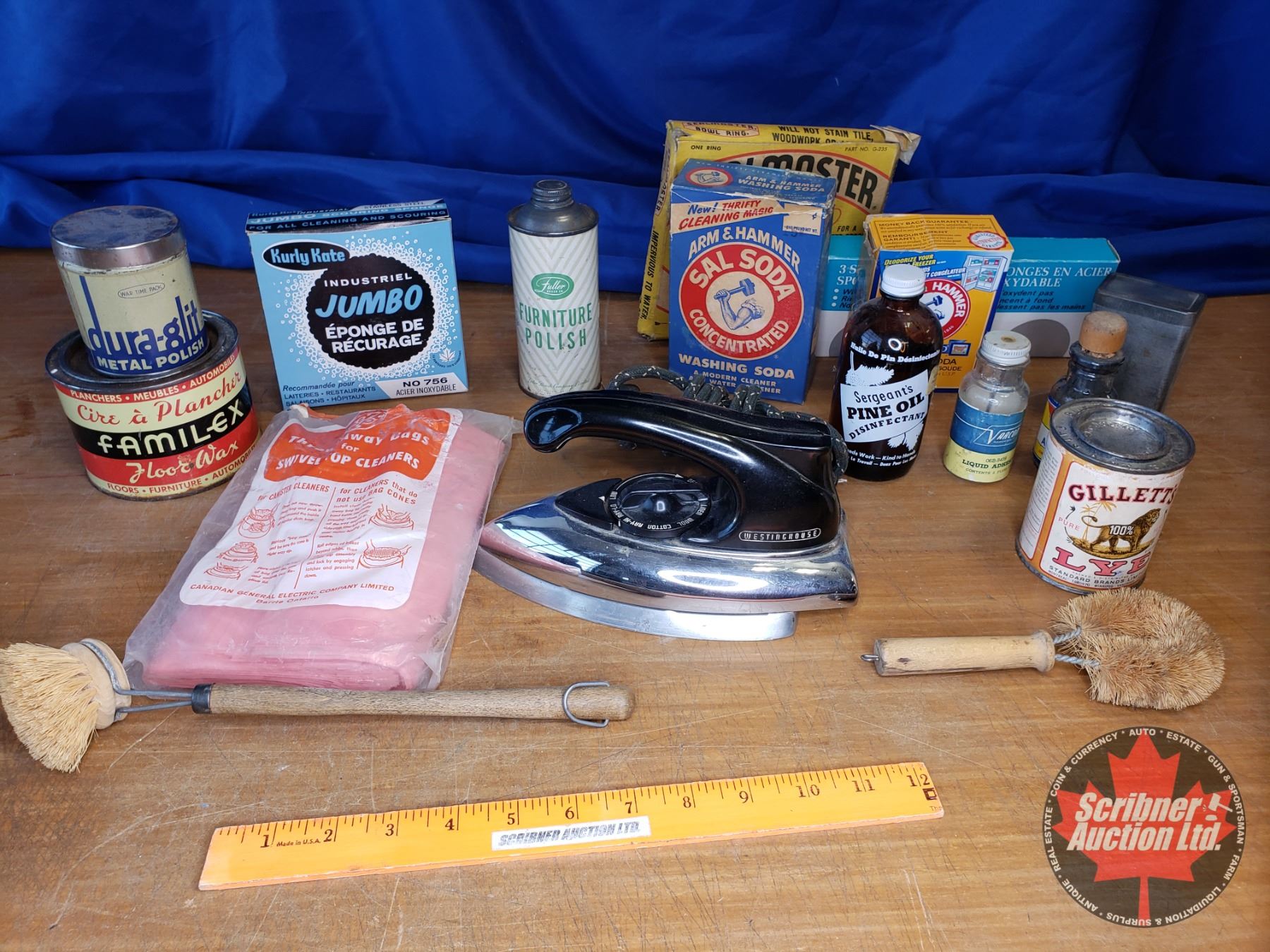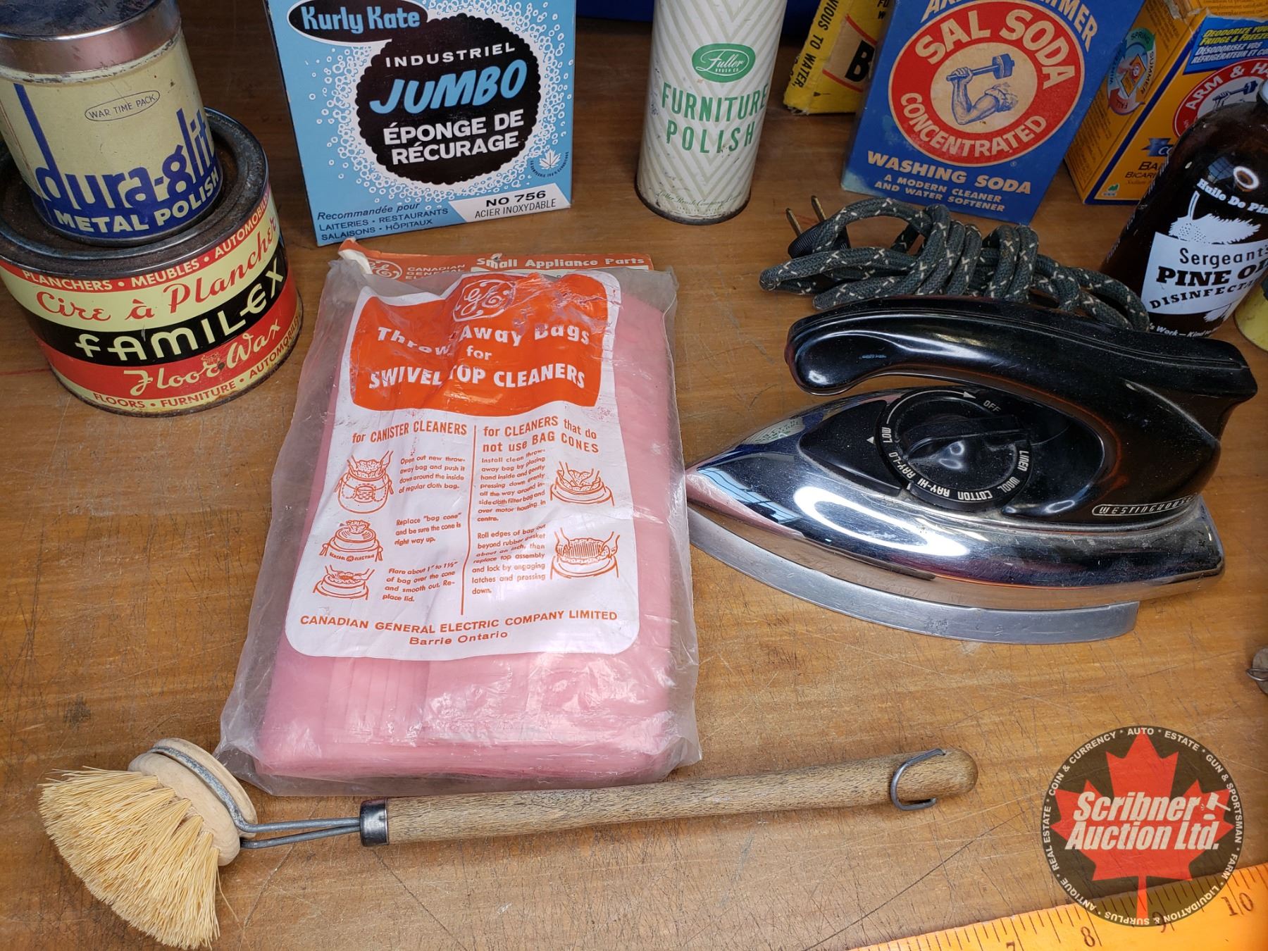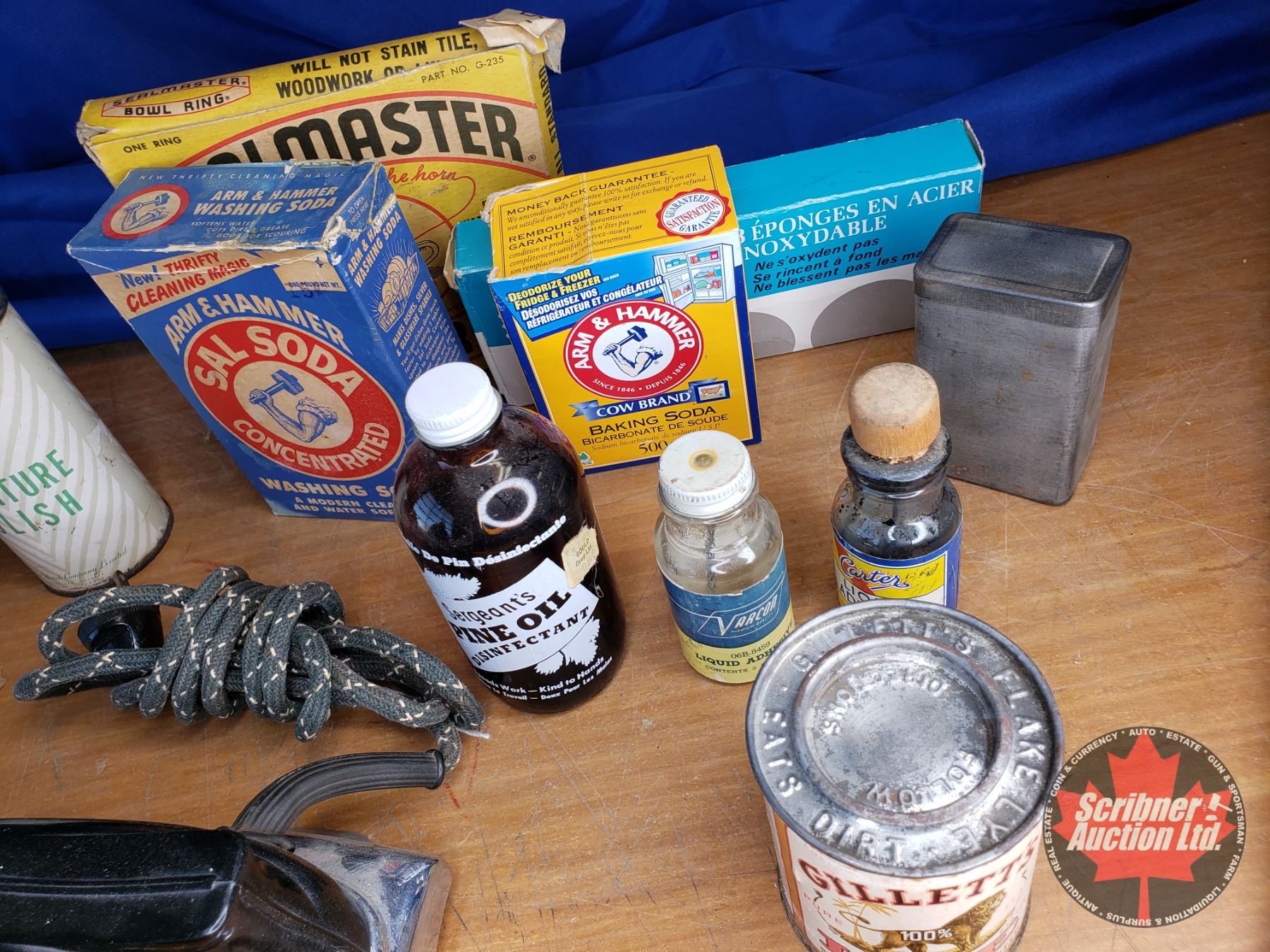Tray Lot: Vintage Household Cleaners (Furniture Polish, Arm & Hammer Washing Soda, Metal Polish, etc) See Pics