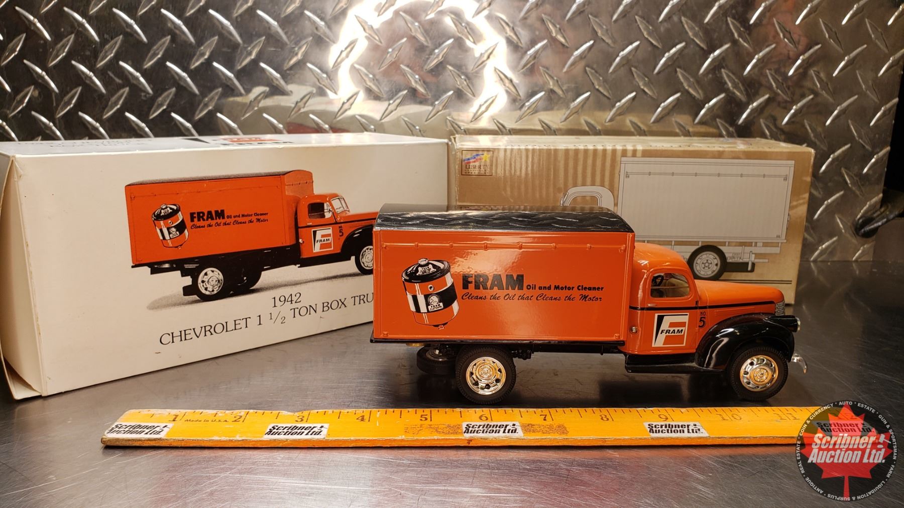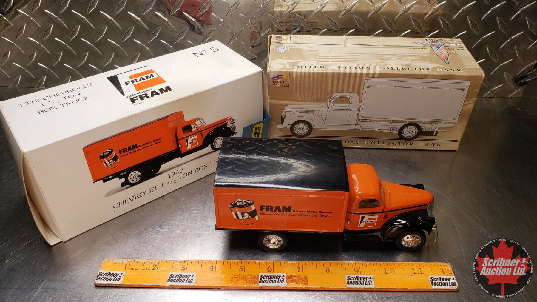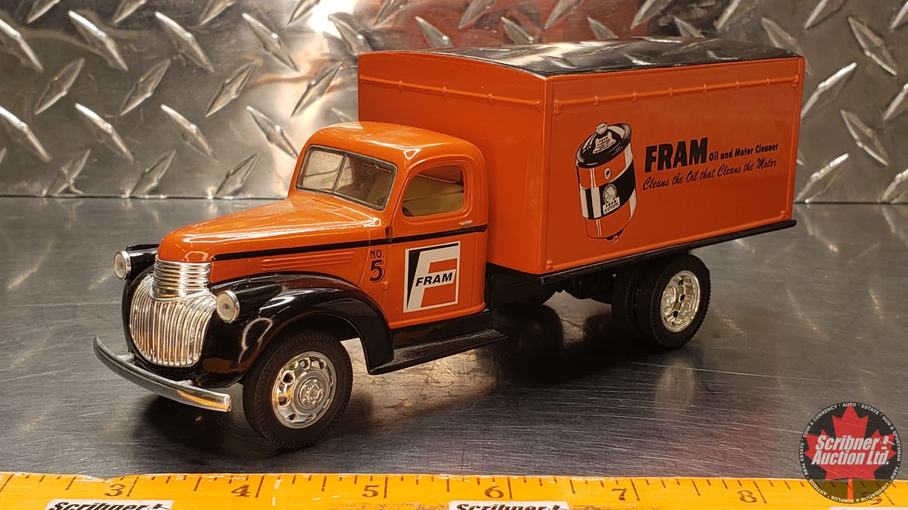 Truck Bank: "FRAM" 1942 Chevrolet 1-1/2 Ton Die Cast Model Limited Edition (Box Measures : 4-1/4"H x 9"W x 3-3/4"D) (SEE PICS!)