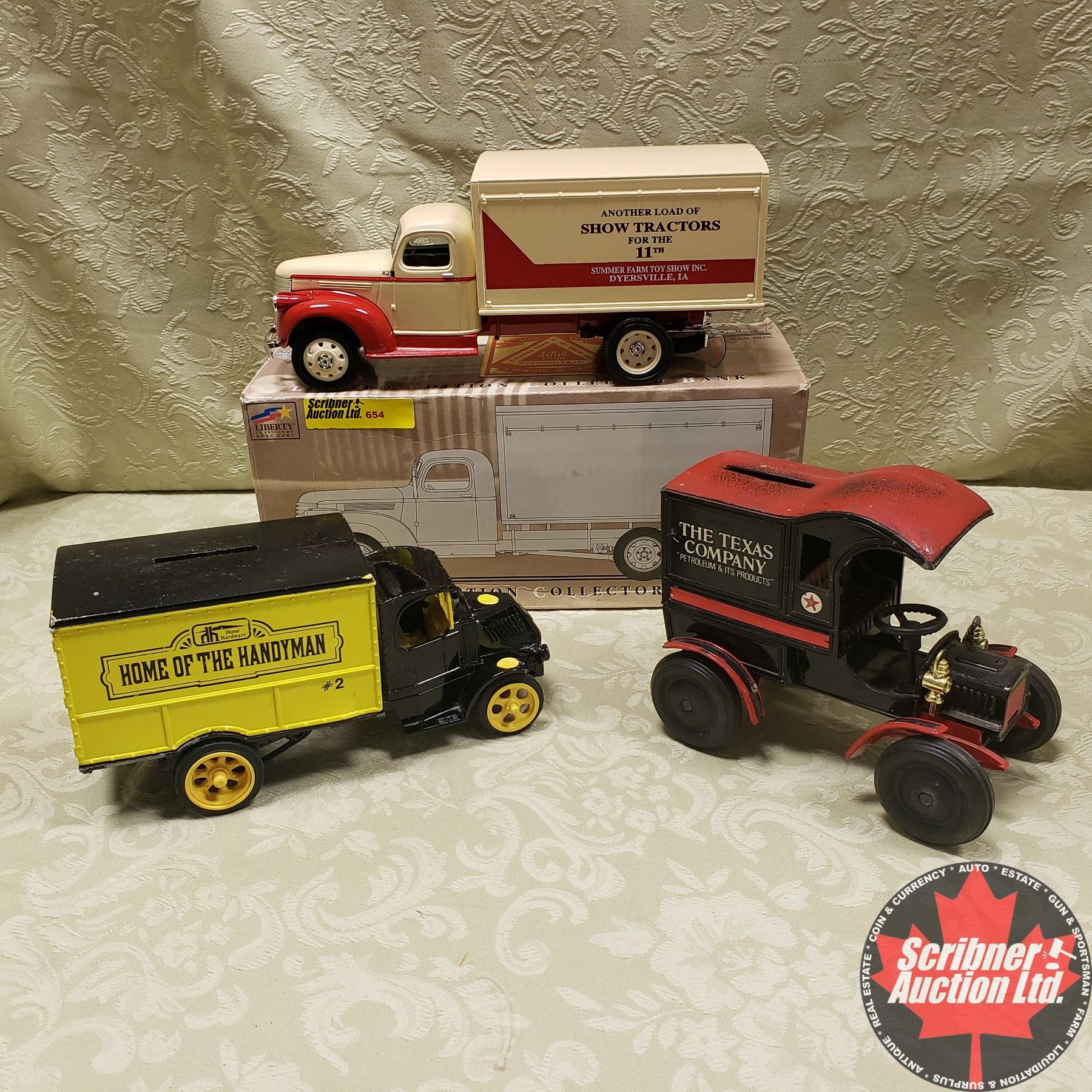 Truck Banks (3) : Limited Edition 1942 Chev; Limited Edition 1926 Mac; 1905 Ford Delivery Car