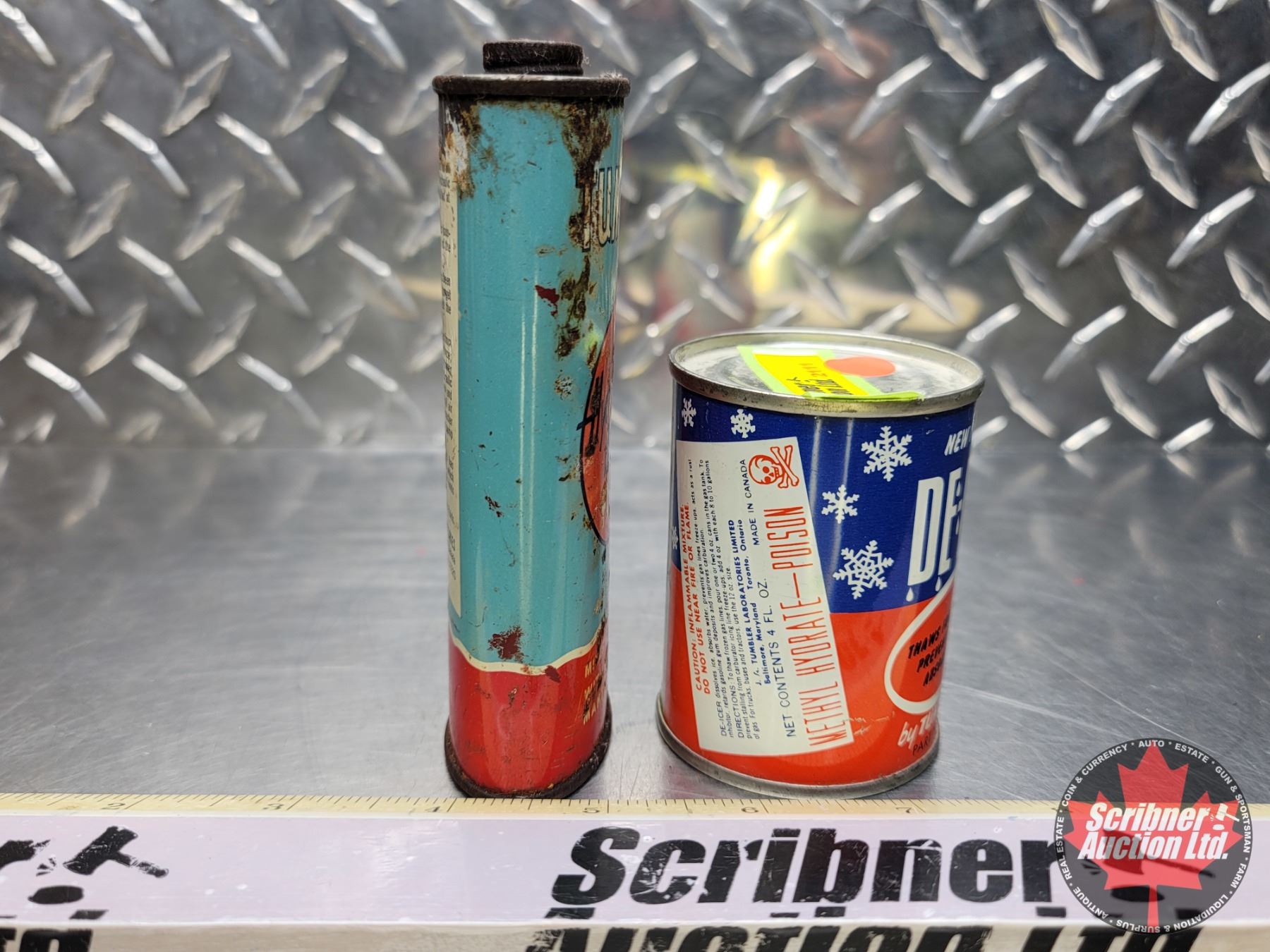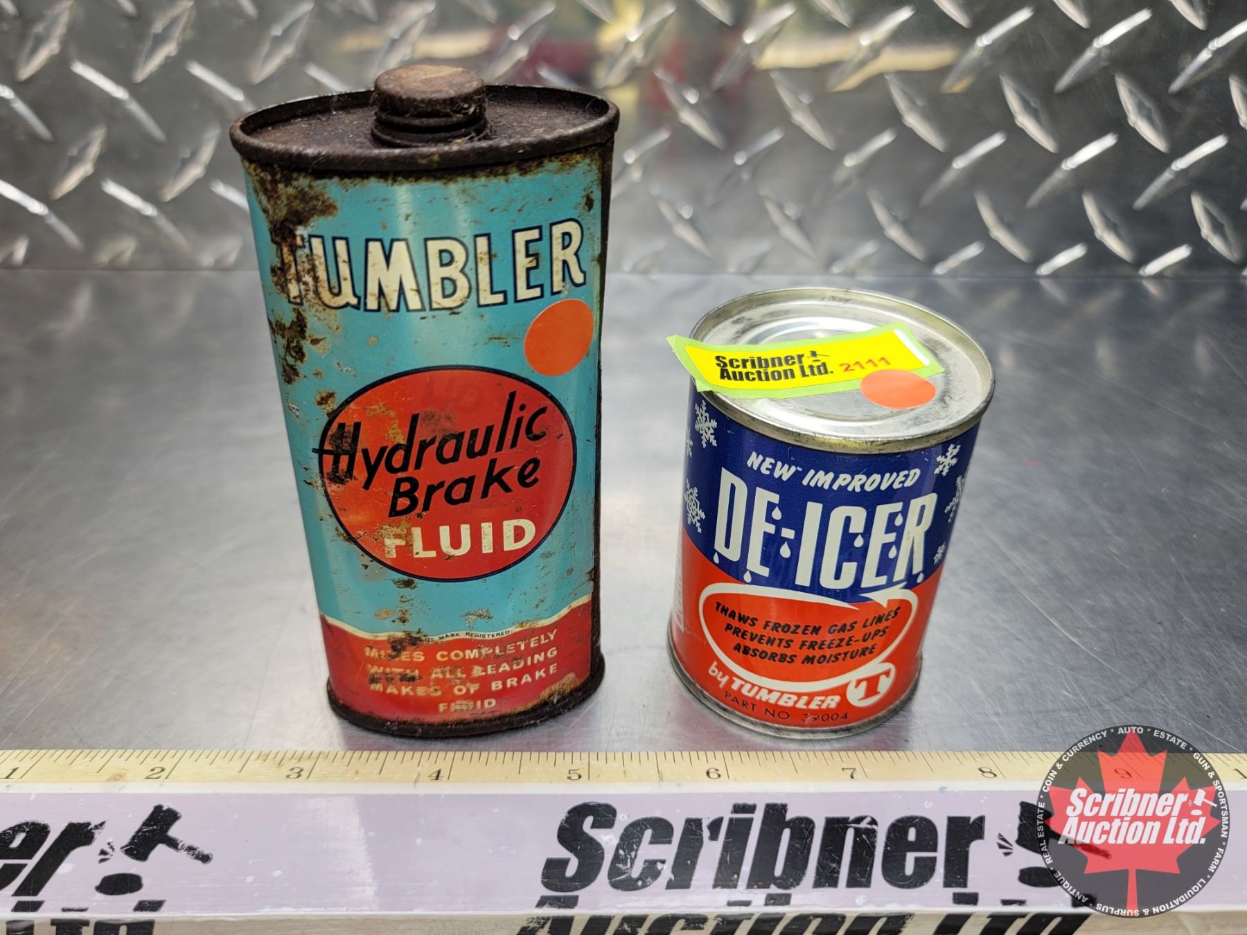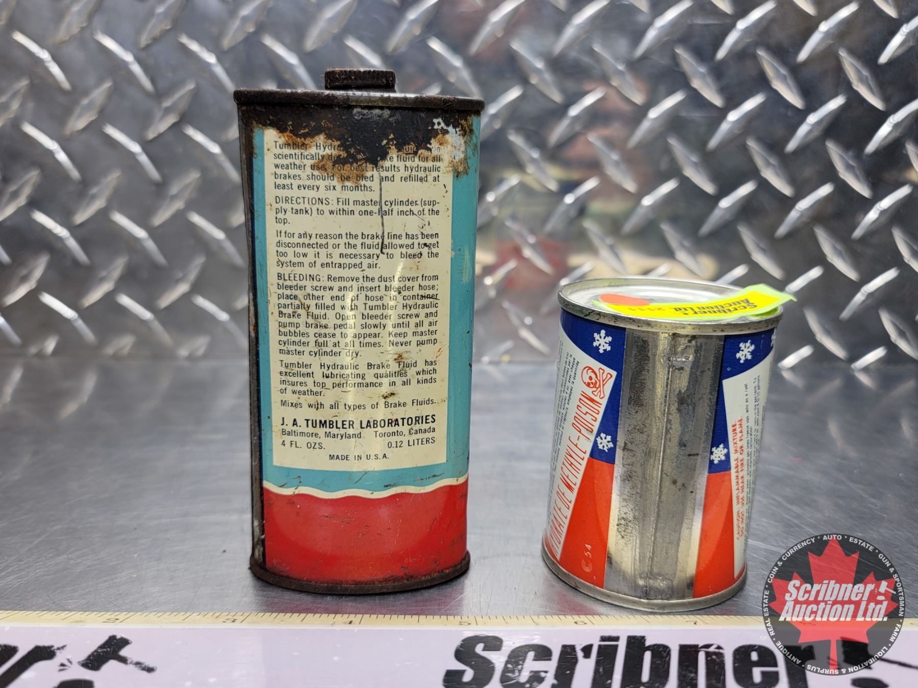 Tumbler Tins (2) : Brake Fluid & De-Icer (Both Full) (Largest Measures : 5"H x 2"W x 1-1/4"D) (SEE PICS!)