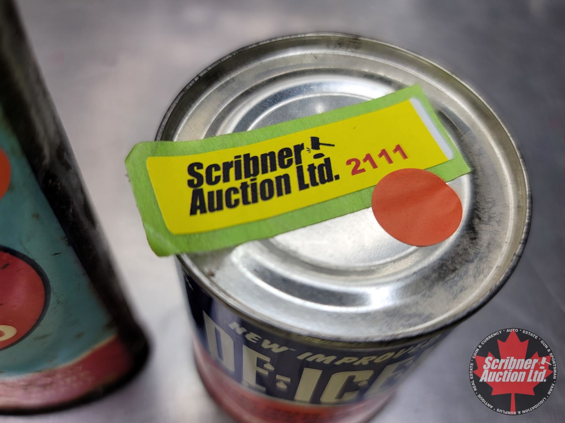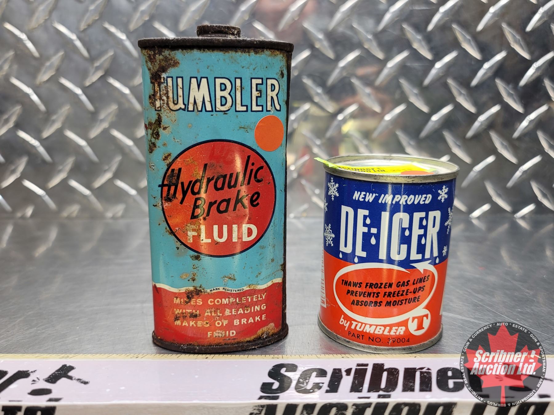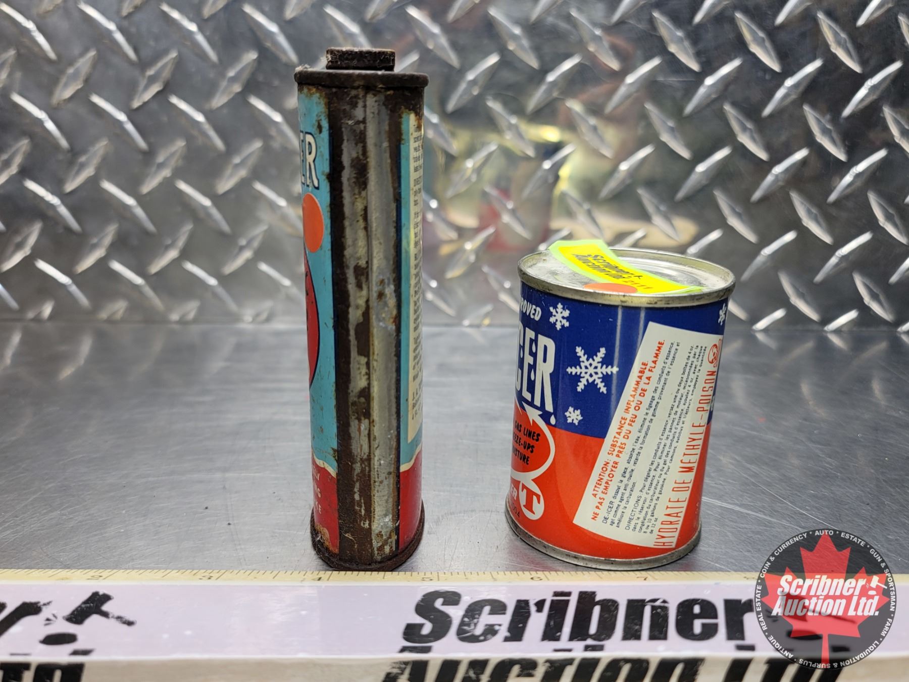 Tumbler Tins (2) : Brake Fluid & De-Icer (Both Full) (Largest Measures : 5"H x 2"W x 1-1/4"D) (SEE PICS!)
