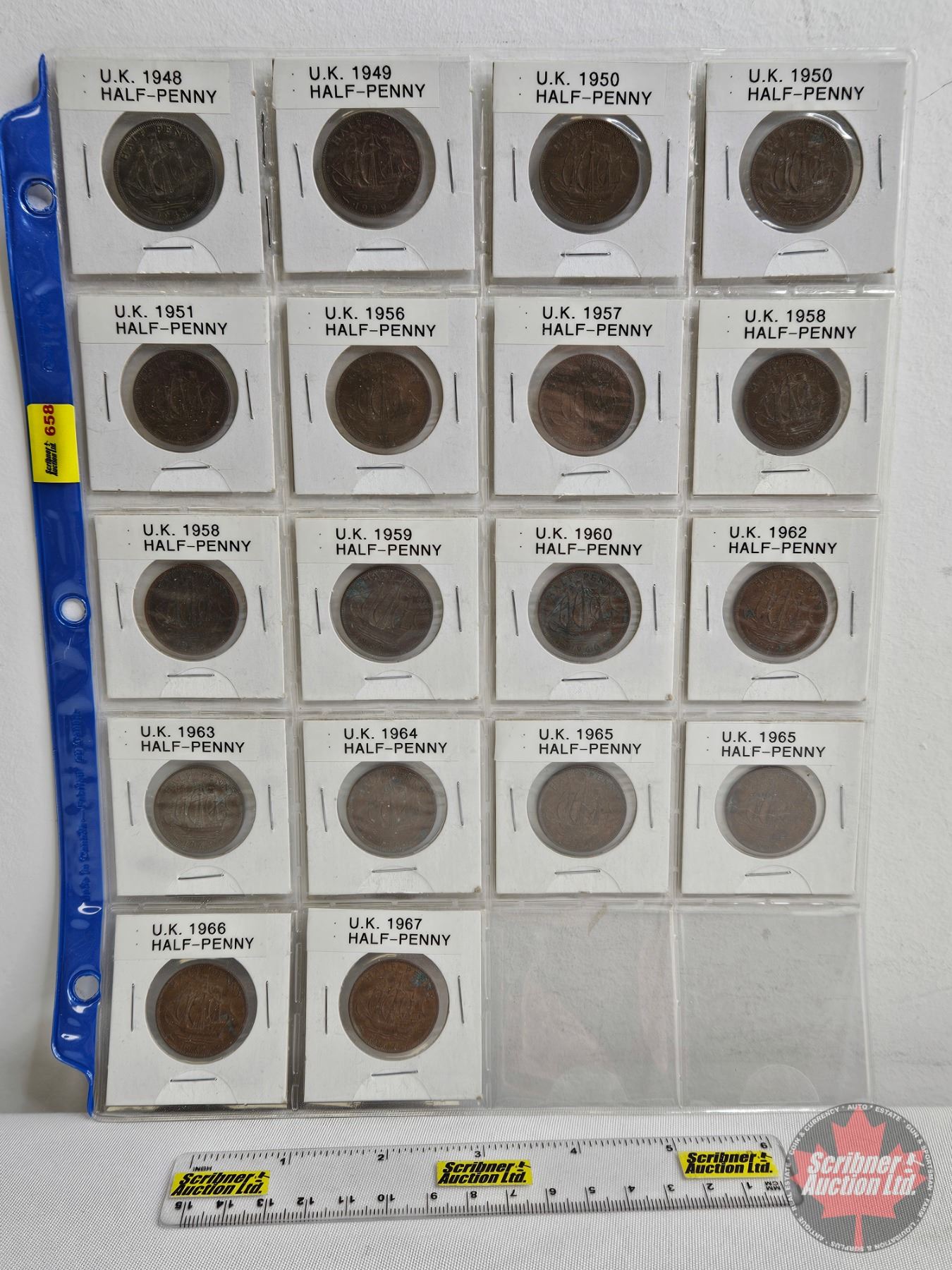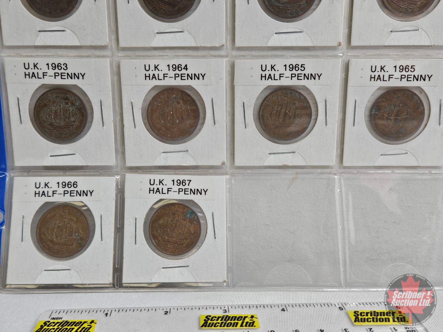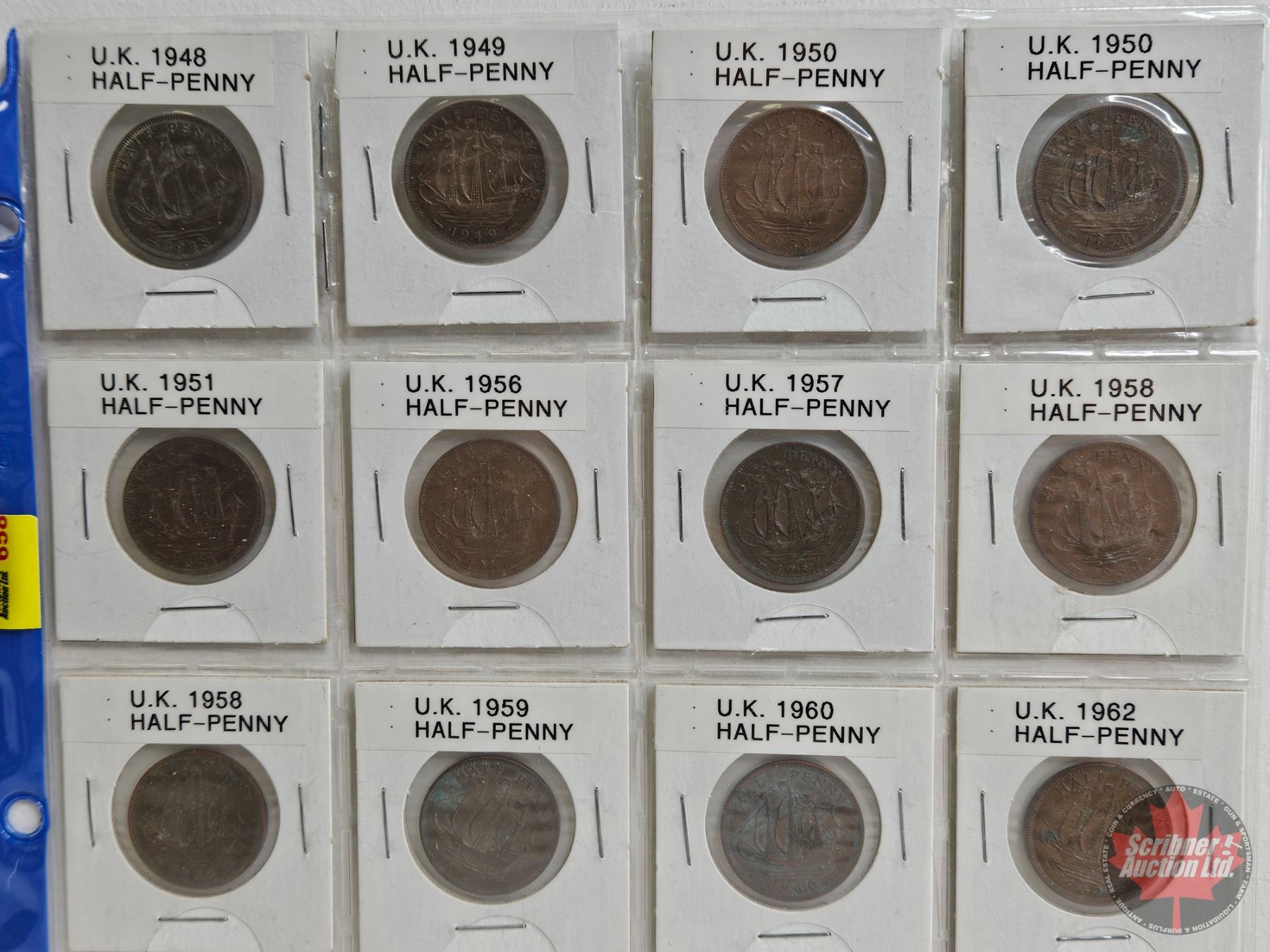 UK Half Penny (18) : 1948; 1949; 1950; 1950; 1951; 1956; 1957; 1958; 1958; 1959; 1960; 1962; 1963; 1964; 1965; 1965; 1966; 1967